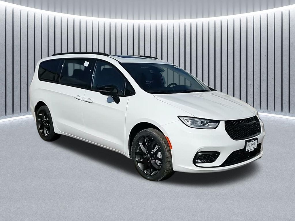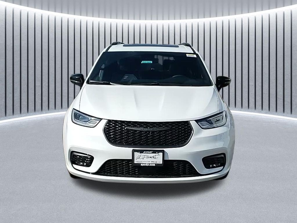 Quick Order Package 27P, S Appearance Package (Anodized Ink Badging, Black Day Light Opening Moldings, Black Stow 'N Place Roof Rack, Gloss Black Exterior Mirrors, Nappa Leather Bucket Seats with S Logo, Premium Fascia Upper/Lower Grille with Black Surround, Premium Rear Fascia Black, S Badge, and Wheels: 20" x 7.5" S-Model Aluminum Design 1), Uconnect Theater Family Group (115V Auxiliary Power Outlet, 19 Harman/Kardon Speakers with Subwoofer, 2nd and 3rd Row Window Shades, 3-Channel Video Remote Control, 760 Watt Amplifier, Amazon Fire TV Built-in, Blu-Ray/DVD Player/USB Port, FamCAM Interior Camera, Hands Free Sliding Doors, High Definition Multimedia Interface, Integrated Active Noise Cancellation, Seatback Video Screens, Stow N Vac Integrated Vacuum, and Video USB Port), 13 Speakers, 18" x 7.5" Painted Aluminum Wheels, 3.73 Axle Ratio, 3rd row seats: split-bench, 4-Wheel Disc Brakes, ABS brakes, Air Conditioning, Alloy wheels, AM/FM radio: SiriusXM 360L, Apple CarPlay/Android Auto, Audio memory, Auto-dimming Rear-View mirror, Automatic temperature control, AWD Suspension, Black Seats, Brake assist, Bumpers: body-color, Compass, Delay-off headlights, Driver door bin, Driver vanity mirror, Driver's Seat Mounted Armrest, Dual front impact airbags, Dual front side impact airbags, Electronic Stability Control, Emergency communication system: Chrysler Connect, Four wheel independent suspension, Front anti-roll bar, Front Bucket Seats, Front dual zone A/C, Front fog lights, Front reading lights, Fully automatic headlights, Garage door transmitter, Heated door mirrors, Heated front seats, Heated rear seats, Heated steering wheel, Illuminated entry, Knee airbag, Low tire pressure warning, Memory seat, MyFlexCare Service Plan, Nappa Leather Bucket Seats, Navigation System, Occupant sensing airbag, Outside temperature display, Overhead airbag, Overhead console, Panic alarm, ParkView Rear Back-Up Camera, Passenger door bin, Passenger seat mounted armrest, Passenger vanity mirror, Power door mirrors, Power driver seat, Power Liftgate, Power moonroof, Power passenger seat, Power steering, Power windows, Radio data system, Radio: Uconnect 5 Nav with 10.1" Display, Rain sensing wipers, Rear air conditioning, Rear reading lights, Rear window defroster, Rear window wiper, Reclining 3rd row seat, Remote keyless entry, Security system, Speed control, Split folding rear seat, Spoiler, Steering wheel mounted audio controls, Tachometer, Telescoping steering wheel, Tilt steering wheel, Traction control, Trip computer, Turn signal indicator mirrors, Variably intermittent wipers, Ventilated front seats, and Voltmeter.