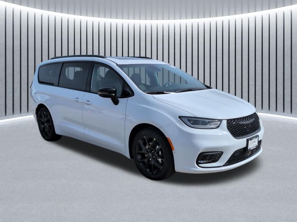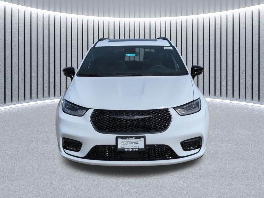 Quick Order Package 27P, S Appearance Package (Anodized Ink Badging, Black Day Light Opening Moldings, Black Stow 'N Place Roof Rack, Gloss Black Exterior Mirrors, Nappa Leather Bucket Seats with S Logo, Premium Fascia Upper/Lower Grille with Black Surround, Premium Rear Fascia Black, S Badge, and Wheels: 20" x 7.5" S-Model Aluminum Design 1), Safety Sphere (360 Surround View Camera System and ParkSense Front/Rear Park Assist with Stop), 13 Speakers, 18" x 7.5" Painted Aluminum Wheels, 3.25 Axle Ratio, 3rd row seats: split-bench, 4-Wheel Disc Brakes, ABS brakes, Air Conditioning, Alloy wheels, AM/FM radio: SiriusXM 360L, Apple CarPlay/Android Auto, Audio memory, Auto-dimming Rear-View mirror, Automatic temperature control, Black Seats, Brake assist, Bumpers: body-color, Compass, Delay-off headlights, Driver door bin, Driver vanity mirror, Driver's Seat Mounted Armrest, Dual front impact airbags, Dual front side impact airbags, Electronic Stability Control, Emergency communication system: Chrysler Connect, Four wheel independent suspension, Front anti-roll bar, Front Bucket Seats, Front dual zone A/C, Front fog lights, Front reading lights, Fully automatic headlights, Garage door transmitter, Heated door mirrors, Heated front seats, Heated rear seats, Heated steering wheel, Illuminated entry, Integrated Active Noise Cancellation, Knee airbag, Low tire pressure warning, Memory seat, MyFlexCare Service Plan, Nappa Leather Bucket Seats, Navigation System, Occupant sensing airbag, Outside temperature display, Overhead airbag, Overhead console, Panic alarm, ParkView Rear Back-Up Camera, Passenger door bin, Passenger seat mounted armrest, Passenger vanity mirror, Power door mirrors, Power driver seat, Power Liftgate, Power moonroof, Power passenger seat, Power steering, Power windows, Radio data system, Radio: Uconnect 5 Nav with 10.1" Display, Rain sensing wipers, Rear air conditioning, Rear reading lights, Rear window defroster, Rear window wiper, Reclining 3rd row seat, Remote keyless entry, Security system, Speed control, Split folding rear seat, Spoiler, Steering wheel mounted audio controls, Tachometer, Telescoping steering wheel, Tilt steering wheel, Touring Suspension, Traction control, Trip computer, Turn signal indicator mirrors, Variably intermittent wipers, Ventilated front seats, and Voltmeter.