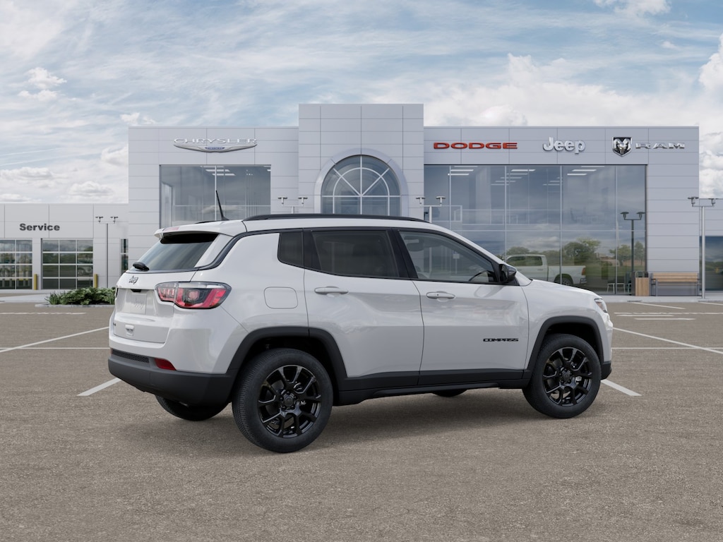 Factory MSRP: $38,110 Bright White Clearcoat 2025 Jeep Compass 4D Sport Utility Latitude 2.0L I4 DOHC 8-Speed Automatic 4WD 24/32 City/Highway MPG