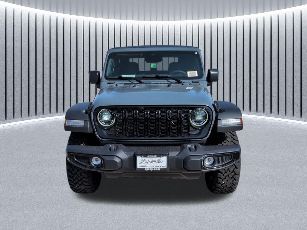 Convenience Group (2-Door Passive Entry, Front Door Locks, Air Conditioning with Auto Temp Control, Air Filtering, Cluster 7.0" TFT Color Display, Emergency/Assistance Call, Heated Front Seats, Heated Steering Wheel, and Universal Garage Door Opener), Quick Order Package 23W Willys (4-Wheel Drive Swing Gate Decal, 7 and 4 Pin Wiring Harness, Advanced Brake Assist, Automatic Headlamps, Auxiliary Switches, Black Grille with Gloss Black Rings, Class II Receiver Hitch, Conventional Differential Front Axle, Corning Gorilla Glass, Dana M210 Wide HD Tube Front Axle, Dana M220 Wide Rear Axle, Daytime Running Lamps LED Accents, Deep Tint Sunscreen Windows, E-Locker Rear Axle, Enhanced Adaptive Cruise Control, Front LED Fog Lamps, Full Speed Forward Collision Warning Plus, Increased Travel Export Tuned Suspension, Injection Molded Black Rear Bumper, LED Premium Reflector Headlamps, Mold in Color Bumper with Gloss Black, Molded in Color Rubicon Highline Flare, MOPAR All-Weather Floor Mats, Off-Road Plus Mode, Power Heated Mirrors, Premium Wrapped Steering Wheel, Security Alarm, Sun Visors with Illuminated Vanity Mirrors, Wheels: 17" x 7.5" Painted Black, and Willys Hood Decal), Safety Group (Auto High Beam Headlamp Control, Blind Spot and Cross Path Detection, LED Taillamps, and ParkSense Rear Park Assist System), Steel Power Dome Hood Package (Power Dome Dual Vented Hood), 12.3" Touchscreen Display, 4-Wheel Disc Brakes, 4G LTE Wi-Fi Hot Spot, 8 Speakers, ABS brakes, Air Conditioning, AM/FM radio: SiriusXM with 360L, Apple CarPlay, Apple CarPlay/Android Auto, Aux Battery, Brake assist, Cloth Low-Back Bucket Seats, Compass, Connectivity - US/Canada, Delay-off headlights, Driver door bin, Driver vanity mirror, Dual front impact airbags, Dual front side impact airbags, Electronic Stability Control, For More Info, Call 800-643-2112, Front anti-roll bar, Front Bucket Seats, Front Center Armrest w/Storage, Front fog lights, Front reading lights, Google Android Auto, Illuminated entry, Integrated Center Stack Radio, Integrated roll-over protection, Jeep Trail Rated Kit, Low tire pressure warning, Non-Lock Fuel Cap Without Discriminator, Normal Duty Suspension, Occupant sensing airbag, Outside temperature display, Overhead airbag, Panic alarm, ParkView Rear Back-Up Camera, Passenger door bin, Passenger vanity mirror, Power steering, Power windows, Radio data system, Radio: Uconnect 5 with 12.3" Display, Rear anti-roll bar, Rear reading lights, Remote keyless entry, SiriusXM Radio Service, SiriusXM with 360L, Speed control, Steering wheel mounted audio controls, Stop-Start Dual Battery System, Tachometer, Telescoping steering wheel, Tilt steering wheel, Traction control, Trip computer, Variably intermittent wipers, and Wheels: 17" x 7.5" Black Steel Styled.
