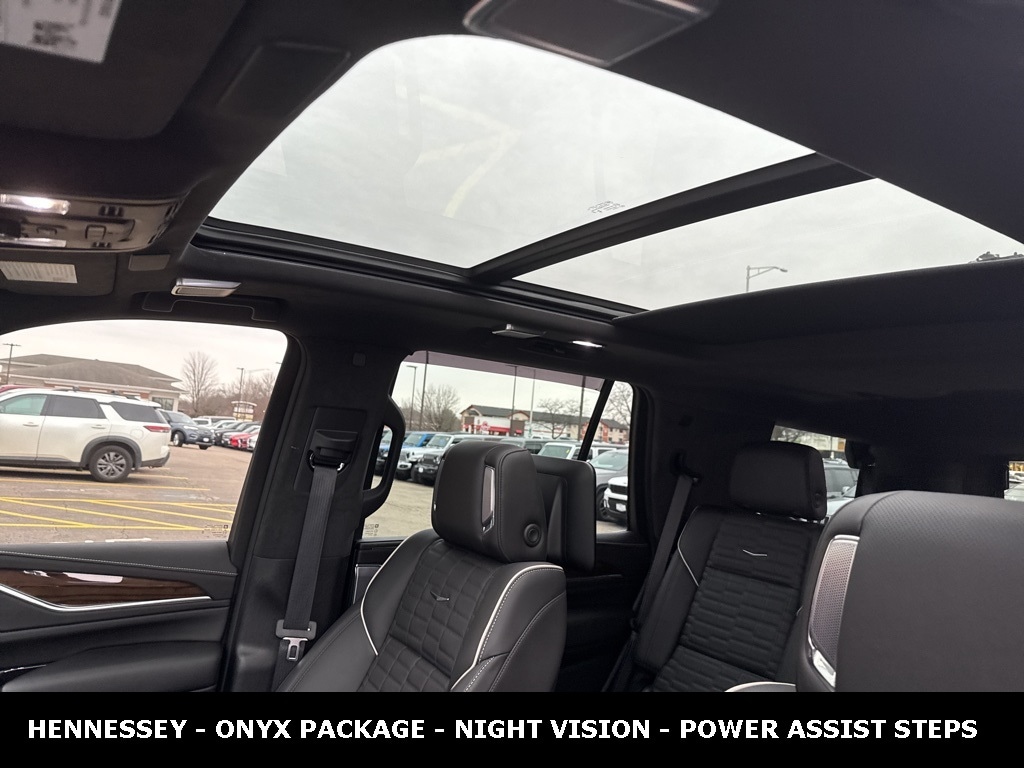 CARFAX One-Owner. Clean CARFAX. Odometer is 10327 miles below market average! ** Apple CarPlay/Android Auto, ** Adaptive Cruise Control, ** Blind Spot Monitor, ** Cross Traffic Alert, ** Alloy Wheels / Premium Wheels, ** Heated Seats, ** Cooled Seats, ** Bluetooth, Hands Free, ** Brake Assist, ** Camera Backup, ** Chrome Wheels / Premium Wheels / Custome Whwels, ** Cruise Control, ** Heated Steering Wheel, ** Keyless Entry, ** Lane Departure Warning, ** Leather Seats, ** LED Headlights, ** Navigation System, ** Premium Sound System / Premium Audio, ** Roof Rack, ** Stability Control, ** Steering Wheel Controls, ** Sunroof/Moonroof, ** Third Row Seating / 3rd Row Seating, ** Tow Hitch / Trailer Hitch, ** USB Port, ** Clean Carfax Accident Free History, ** Power Drivers Seat, ** Power Passenger Seat, 2024 escalade 4wd sport platinum hennessey, GLOSS BLACK ESCALADE, NIGHT VISION, ASSIST STEPS, POWER, ASSIST STEPS, POWER, CONSOLE REFRIGERATOR W/ FREEZER, 2024 Cadillac Escalade Sport Platinum by Hennessey, The 2024 Cadillac Escalade Sport Platinum is one of the top luxury trims in the Escalade lineup, blending performance-oriented styling with high-end comfort and technology. It sits just below the Escalade-V in Cadillacâs lineup. Cadillac Society +1 ð" Key Details & Positioning Trim Level: Sport Platinum â" a sportier + more luxurious version of the Escalade Sport. Cadillac Society Starting Price (MSRP): ~ $112,690 â" $115,790 (depending on options and 2WD/4WD). Cadillac Society Platform & Engine: Standard 6.2 L naturally aspirated V8 with ~420 hp and 460 lb-ft torque., Features & Luxury: Full semi-aniline leather interior across 3 rows. Hendrick Cadillac Southpoint 16-way heated/ventilated power front seats with massage. Hendrick Cadillac Southpoint AKG 36-speaker Studio Reference audio and rear-seat entertainment. Cadillac Newsroom Touring Package including adaptive Air Ride suspension and soft-close doors. Cadillac Newsroom Tech & Safety: Large curved display, Super Cruise hands-free assist standard (on most trims), advanced safety systems, wireless Apple CarPlay/Android Auto., Hennessey, Supercharger: Upgraded twin-screw supercharger system., Escalade Sport Platinum Hennessey, 4D Sport Utility, 6.2L V8, 10-Speed Automatic, AWD, Black Raven, Jet Black Leather, 2-Speed Active Transfer Case, Adaptive Cruise Control, Air Ride Adaptive Suspension, AKG Studio Reference 36-Speaker Audio System, All-Weather Floor Liner Package (LPO), All-Weather Integrated Cargo Liner (LPO), Automatic Seat Belt Tightening, Body-Color Door Handles, Door Lock & Latch Shields, Electronic Limited-Slip Differential, Enhanced Automatic Emergency Braking, Enhanced Automatic Parking Assist, Extra Capacity Cooling System, Floor Console w/Covered Storage, Floor Liner Package (LPO), Glass Breakage Sensor, Gloss Black Escalade Nameplate (LPO), Heated & Ventilated Driver & Front Passenger Seats, Heavy-Duty Trailering Package, Hitch Guidance w/Hitch View, Illuminating Front & Rear Sill Plates, Integrated Trailer Brake Controller, Monochrome Cadillac Emblems (LPO), Navigation System, Onyx Package (LPO), Platinum Interior Trim, Power Lumbar Massage Driver Seat, Power Lumbar Massage Front Passenger Seat, Power Panoramic Tilt-Sliding Sunroof, Preferred Equipment Group 1SH, Rear Camera Mirror, Rear Camera Mirror Washer, Rear Cross Traffic Alert, Rear Seat Entertainment System, Reconfigurable Full-Color Head-Up Display, Reverse Automatic Braking, Running Board Assist Steps, Smart Trailer Integration Indicator, Soft Closing Front & Rear Doors, Theft-Deterrent Alarm System, Touring Package, Trailer Side Blind Zone Alert, Trailer Tire Pressure Monitoring System, Trailering Assist Guidelines, Vehicle Inclination Sensor, Vehicle Interior Movement Sensor, Wheels: 22" 12-Spoke Gloss Black Alloy (LPO), Wired Auxiliary Trailer Camera (LPO).