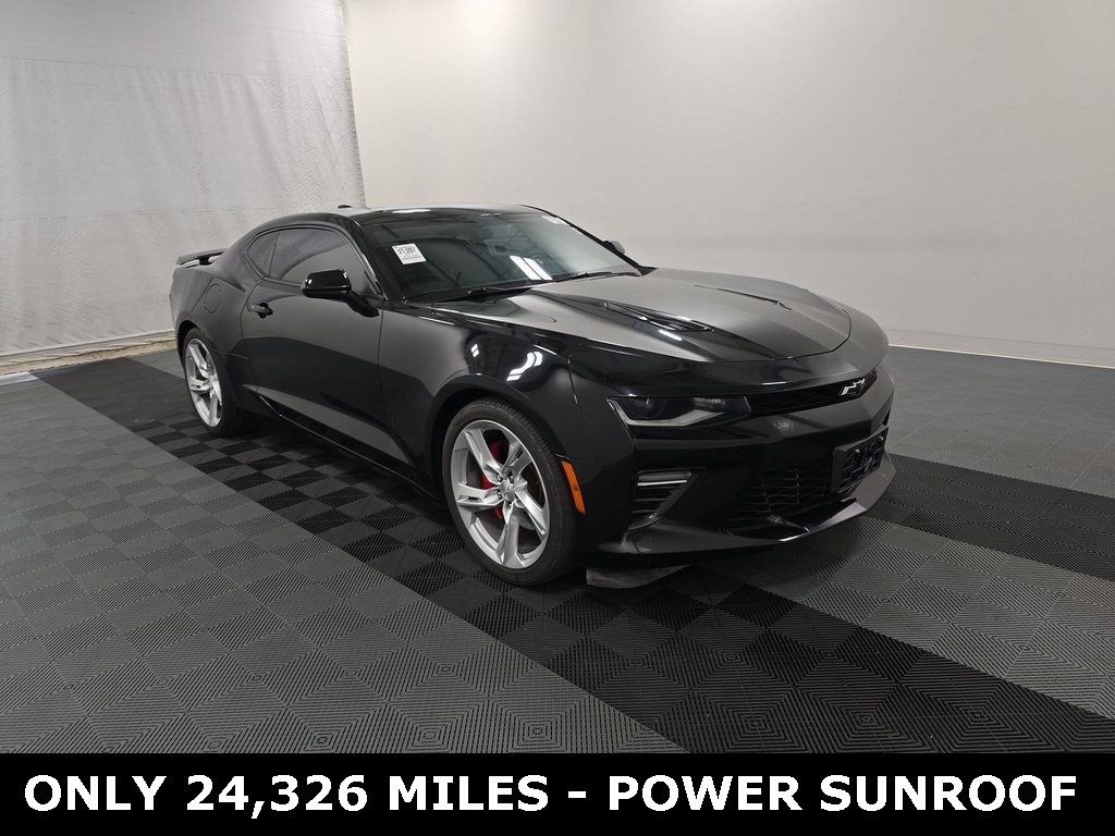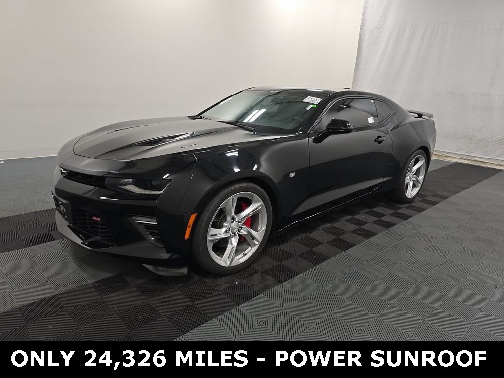 Clean CARFAX. ** Apple CarPlay/Android Auto, ** Blind Spot Monitor, ** Cross Traffic Alert, ** Alloy Wheels / Premium Wheels, ** Bluetooth, Hands Free, ** Brake Assist, ** Camera Backup, ** Chrome Wheels / Premium Wheels / Custome Whwels, ** Cruise Control, ** Keyless Entry, ** LED Headlights, ** Navigation System, ** Premium Sound System / Premium Audio, ** Stability Control, ** Steering Wheel Controls, ** Sunroof/Moonroof, ** USB Port, ** Clean Carfax Accident Free History, ** Power Drivers Seat, Key Specifications Engine: 6.2 L V8 (LT1) producing 455 hp and 455 lb-ft of torque. CarsDirect +3 gmauthority.com +3 Kbb.com +3 Transmission: 8-speed automatic for the SS (as an option alongside the 6-speed manual). gmauthority.com +2 Kbb.com +2 Drivetrain: Rear-wheel drive. 4automax.com +1 Fuel economy (EPA estimate for the 6.2L V8 + automatic): ~17 MPG city / ~27 MPG highway. Kbb.com +1 Dimensions: Length about 188.3 in, width about 74.7 in, height about 53.1 in (coupe), 6.2L V8, Highlights & Features High performance: With 455 hp and 455 lb-ft torque, itâs the most powerful Camaro SS up to that year. Velocity Journal +1 Modern automatic: The 8-speed automatic offers paddle shifters and is a strong option if you prefer not shifting manually. gmauthority.com +1 Good combo of power + usability: Despite being a performance car, the highway fuel economy is fairly decent for its class. Strong visual and driver-experience appeal: Big wheels, performance tires, aggressive stance, sporty interior., Camaro SS 1SS, 2D Coupe, 6.2L V8, RWD, Mosaic Black Metallic, Jet Black w/Cloth Seat Trim, Preferred Equipment Group 1SS.