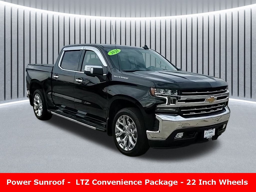 Priced below KBB Fair Purchase Price! Every Pre-driven vehicle has or is in the process of having all mechanical repairs and all required maintenance performed and completed prior to delivery. To provide you the peace of mind purchasing a pre-driven vehicle. Thatâs the St. Charles Guarantee. So relax and enjoy! Please call for availability. Mosaic Black Metallic 2022 Chevrolet Silverado 1500 LTD 4D Crew Cab LTZ Power Sunroof EcoTec3 5.3L V8 15/20 City/Highway MPG 8-Speed Automatic 4WD
