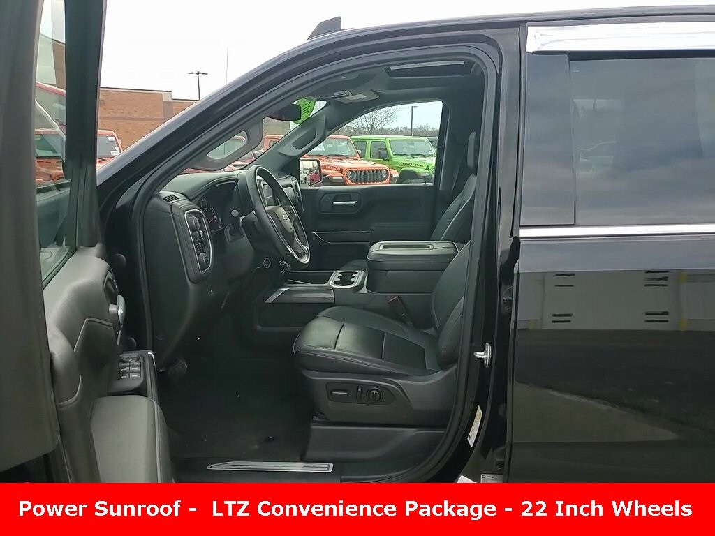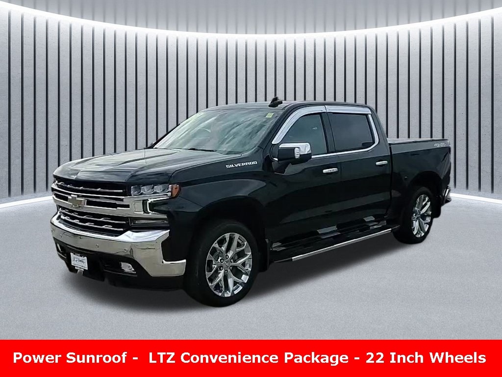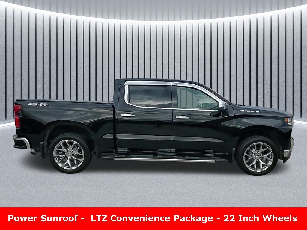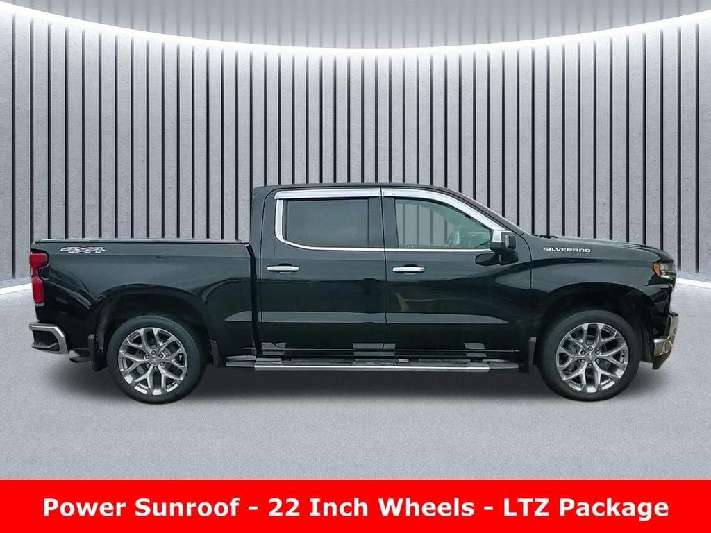 Clean CARFAX. ** Apple CarPlay/Android Auto, ** Adaptive Cruise Control, ** Blind Spot Monitor, ** Cross Traffic Alert, ** Alloy Wheels / Premium Wheels, ** Heated Seats, ** Bluetooth, Hands Free, ** Brake Assist, ** Camera Backup, ** Chrome Wheels / Premium Wheels / Custome Whwels, ** Cruise Control, ** Heated Steering Wheel, ** Keyless Entry, ** Lane Departure Warning, ** Leather Seats, ** LED Headlights, ** Navigation System, ** Premium Sound System / Premium Audio, ** Stability Control, ** Steering Wheel Controls, ** Sunroof/Moonroof, ** USB Port, ** Clean Carfax Accident Free History, ** Power Drivers Seat, 4wd, 4x4, Engine & Performance Engine: 5.3L EcoTec3 V8 gas engine Horsepower: ~355 hp Torque: ~383 lb-ft Drivetrain: Four-Wheel Drive (4WD) Transmission: Typically an 8-speed automatic (some configurations may be 10-speed, depending on exact build) ð" Fuel Economy (Approximate) EPA: ~14â"18 mpg city / up to ~20 mpg highway for 4WD with 5.3L V8 (varies by exact config and driving), Interior / Comfort Leather-appointed front seats Heated/Ventilated front seats Heated rear outboard seats Power-adjustable passenger seat Tech & Safety Chevrolet Infotainment system with touchscreen Blind-spot monitoring Rear cross-traffic alert Front and rear park assist Trailer-hitch guidance & Advanced Trailer System Exterior Chrome accents and bumpers 20â²â² polished aluminum wheels Power-up/-down tailgate, EcoTec3 5.3L V8, Silverado 1500 LTD LTZ Power Sunroof, 4D Crew Cab, EcoTec3 5.3L V8, 8-Speed Automatic, 4WD, Mosaic Black Metallic, Jet Black w/Leather-Appointed Front Seat Trim, 2 USB Ports (First Row), Floor Mounted Center Console, Hitch Guidance, LTZ Convenience Package, LTZ Plus Package, Navigation System, Power Sliding Rear Window w/Rear Defogger, Safety Package, Trailering Package, Universal Home Remote, Up-Level Rear Seat w/Storage Package.