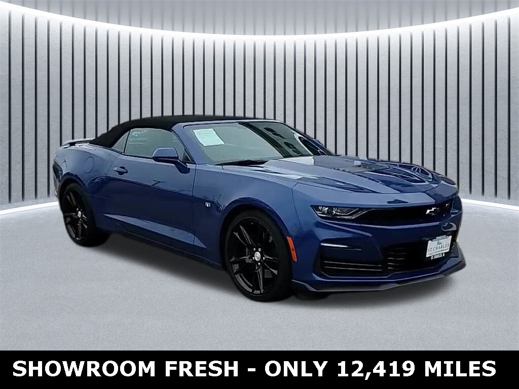 Every Pre-driven vehicle has or is in the process of having all mechanical repairs and all required maintenance performed and completed prior to delivery. To provide you the peace of mind purchasing a pre-driven vehicle. Thatâs the St. Charles Guarantee. So relax and enjoy! Please call for availability. Riverside Blue Metallic 2023 Chevrolet Camaro 2D Convertible SS 2SS 6.2L V8 10-Speed Automatic RWD