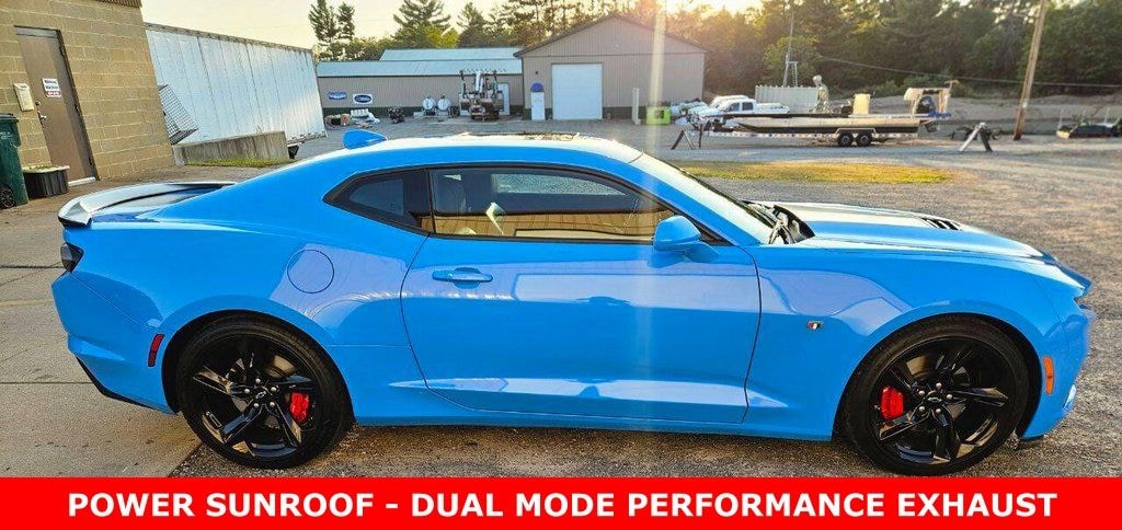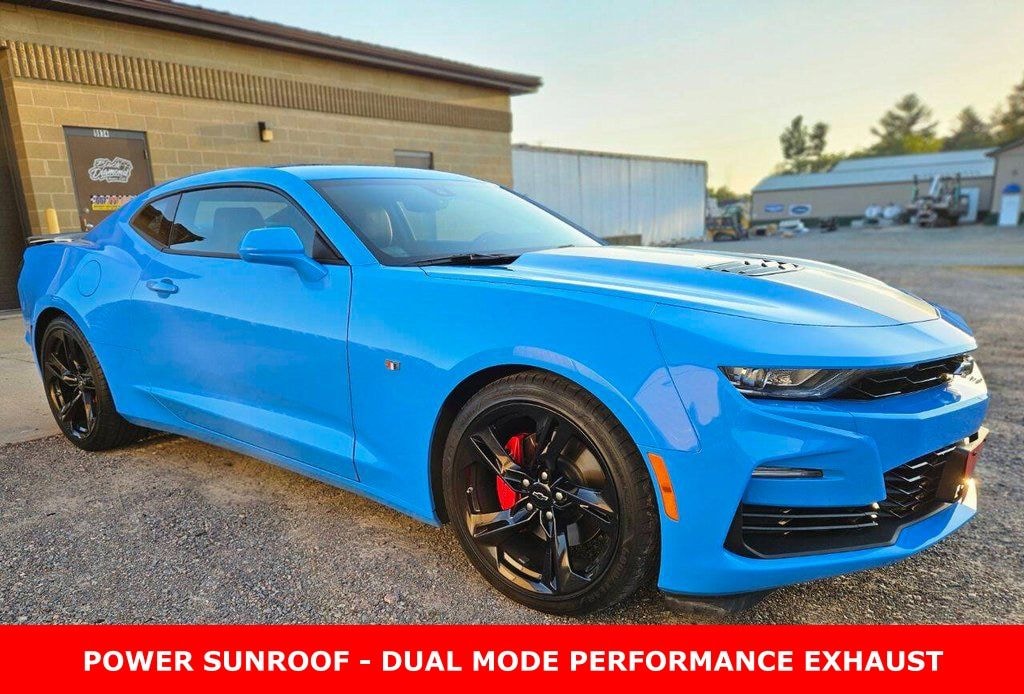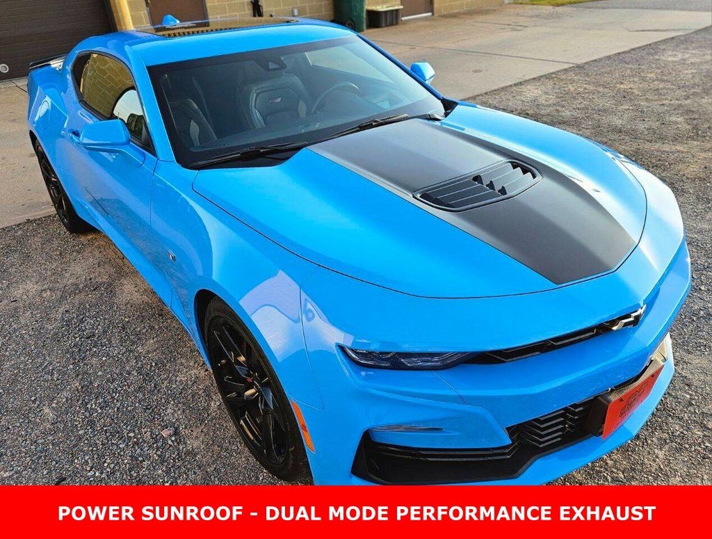CARFAX One-Owner. Clean CARFAX. Odometer is 5828 miles below market average! ** Clean Carfax 1-Owner Accident Free History, ** Apple CarPlay/Android Auto, ** Adaptive Cruise Control, ** Blind Spot Monitor, ** Cross Traffic Alert, ** Alloy Wheels / Premium Wheels, ** Heated Seats, ** Cooled Seats, ** Bluetooth, Hands Free, ** Brake Assist, ** Camera Backup, ** Chrome Wheels / Premium Wheels / Custome Whwels, ** Cruise Control, ** Heated Steering Wheel, ** Keyless Entry, ** Lane Departure Warning, ** Leather Seats, ** LED Headlights, ** Premium Sound System / Premium Audio, ** Stability Control, ** Steering Wheel Controls, ** Sunroof/Moonroof, ** USB Port, ** Clean Carfax Accident Free History, ** One Owner, ** Power Drivers Seat, DUAL MODE PERFORMANCE EXHAUST, 2023 Camaro 2SS is the high-end V8 performance trim of the Chevy Camaro, equipped with a 6.2 L V8 engine and performance-oriented features. Coupe simply refers to the fixed-roof two-door body style (vs. convertible). Automatic Trans(mission) means it has the 10-speed automatic transmission option rather than the manual gearbox. ð" Dual-Mode Performance Exhaust âDual-Mode Exhaustâ is a factory-installed performance exhaust system (also known as the NPP active exhaust option). It features valves in the exhaust system that open or close to change the sound and flow based on driving mode (e.g., quieter in touring/comfort mode, louder and more aggressive in sport/track mode). With this system, the Camaro typically has quad exhaust outlets (four tips) and a more aggressive sound compared with the standard exhaus, SATIN BLACK WING SPOILER, RED BRAKE CALIPERS, POWER SUNROOF, SATIN BLACK STINGER STRIPE, Camaro SS 2SS, 2D Coupe, 6.2L V8, 10-Speed Automatic, RWD, Rapid Blue, Jet Black w/Leather-Trimmed Seat Trim or Leather-Trimmed Seat Trim w/Sueded Inserts, Black Accent Exterior Package (LPO), Navigation System, Preferred Equipment Group 2SS, Rear Park Assist, Satin Black Front Splitter/Side Rockers Pkg (LPO), Wheels: SS 20" x 8.5" Fr/20" x 9.5" Rr Satin Blk (LPO).