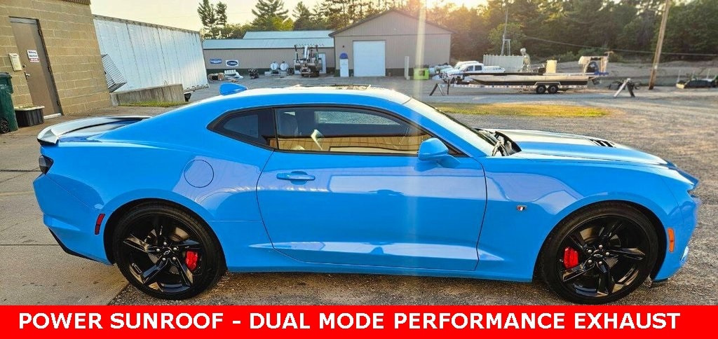 CARFAX One-Owner. Clean CARFAX. ** Clean Carfax 1-Owner Accident Free History, ** Apple CarPlay/Android Auto, ** Adaptive Cruise Control, ** Blind Spot Monitor, ** Cross Traffic Alert, ** Alloy Wheels / Premium Wheels, ** Heated Seats, ** Cooled Seats, ** Bluetooth, Hands Free, ** Brake Assist, ** Camera Backup, ** Chrome Wheels / Premium Wheels / Custome Whwels, ** Cruise Control, ** Heated Steering Wheel, ** Keyless Entry, ** Lane Departure Warning, ** Leather Seats, ** LED Headlights, ** Premium Sound System / Premium Audio, ** Stability Control, ** Steering Wheel Controls, ** Sunroof/Moonroof, ** USB Port, ** Clean Carfax Accident Free History, ** One Owner, ** Power Drivers Seat, DUAL MODE PERFORMANCE EXHAUST, 2023 Camaro 2SS is the high-end V8 performance trim of the Chevy Camaro, equipped with a 6.2 L V8 engine and performance-oriented features. Coupe simply refers to the fixed-roof two-door body style (vs. convertible). Automatic Trans(mission) means it has the 10-speed automatic transmission option rather than the manual gearbox. ð" Dual-Mode Performance Exhaust âDual-Mode Exhaustâ is a factory-installed performance exhaust system (also known as the NPP active exhaust option). It features valves in the exhaust system that open or close to change the sound and flow based on driving mode (e.g., quieter in touring/comfort mode, louder and more aggressive in sport/track mode). With this system, the Camaro typically has quad exhaust outlets (four tips) and a more aggressive sound compared with the standard exhaus, SATIN BLACK WING SPOILER, RED BRAKE CALIPERS, POWER SUNROOF, SATIN BLACK STINGER STRIPE, Camaro SS 2SS, 2D Coupe, 6.2L V8, 10-Speed Automatic, RWD, Rapid Blue, Jet Black w/Leather-Trimmed Seat Trim or Leather-Trimmed Seat Trim w/Sueded Inserts, Black Accent Exterior Package (LPO), Navigation System, Preferred Equipment Group 2SS, Rear Park Assist, Satin Black Front Splitter/Side Rockers Pkg (LPO), Wheels: SS 20" x 8.5" Fr/20" x 9.5" Rr Satin Blk (LPO).