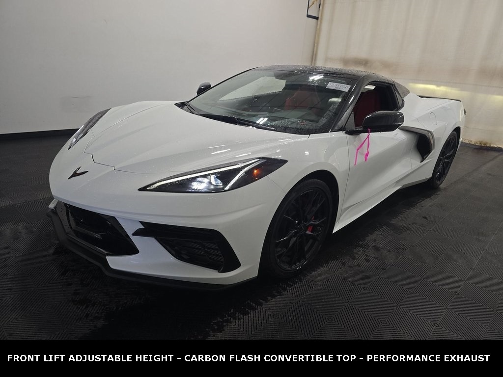 Clean CARFAX. ** Apple CarPlay/Android Auto, ** Adaptive Cruise Control, ** Blind Spot Monitor, ** Cross Traffic Alert, ** Alloy Wheels / Premium Wheels, ** Heated Seats, ** Cooled Seats, ** Bluetooth, Hands Free, ** Brake Assist, ** Camera Backup, ** Chrome Wheels / Premium Wheels / Custome Whwels, ** Cruise Control, ** Heated Steering Wheel, ** Keyless Entry, ** Lane Departure Warning, ** Leather Seats, ** LED Headlights, ** Navigation System, ** Premium Sound System / Premium Audio, ** Stability Control, ** Steering Wheel Controls, ** USB Port, ** Clean Carfax Accident Free History, ** Power Drivers Seat, What the Performance Exhaust Is Itâs an optional upgrade that can be ordered separately, or is included as part of the Z51 Performance Package. West Herr Chevrolet of Orchard Park +3 stingraychevroletcorvette.com +3 Only Manuals +3 It features stainless-steel exhaust tips. stingraychevrolet.com +1 It offers an aggressive exhaust sound (louder and richer) that varies with driver mode selected. stingraychevrolet.com +2 West Herr Chevrolet of Orchard Park +2, Horsepower increases from 490 hp to about 495 hp. stingraychevroletcorvette.com +2 stingraychevrolet.com +2 Torque increases from 465 lb-ft to about 470 lb-ft., FRONT LIFT ADJUSTABLE HEIGHT, CONVERTIBLE TOP, CARBON FLASH, PERFORMANCE EXHAUST, 19" FRONT & 20" REAR 20-SPOKE, BRIGHT RED PAINTED BRAKE CALIPERS, LOW REAR SPOILER AND FRONT SPLITTER, SEATS, HEATED AND VENTED, 12" DIAG COLOUR DISPLAY, Corvette Stingray 2LT, 2D Convertible, 6.2L V8, 8-Speed Dual Clutch, RWD, Arctic White, Adrenaline Red w/Napa Lthr Seating Surfaces w/Perforated Inserts, 2 Cargo Nets, Carbon Flash Metallic Painted Outside Mirrors, Carbon Flash Metallic-Painted Outside Mirrors, Convertible HardTop, Driver Power Bolster Seat Adjuster, Electrical Theft Deterrent System, HD Front & Rear Vision Cameras, Head-Up Display, Heated & Vented Driver & Passenger Seats, Heated Steering Wheel, Memory Driver & Passenger Convenience Package, Navigation System, Passenger Power Bolster Seat Adjuster, Performance Data & Video Recorder, Power Driver Lumbar Control Seat Adjuster, Power Passenger Lumbar Control Seat Adjuster, Power-Adjustable Outside Heated Mirrors, Preferred Equipment Group 2LT, Rear Cross Traffic Alert, Side Blind Zone Alert, Universal Home Remote, Vehicle Inclination Theft Deterrent Sensor, Vehicle Interior Movement Theft Deterrent Sensor, Wireless Charging for Devices.