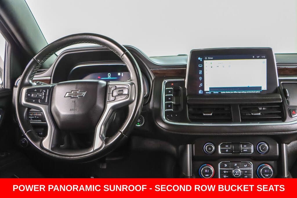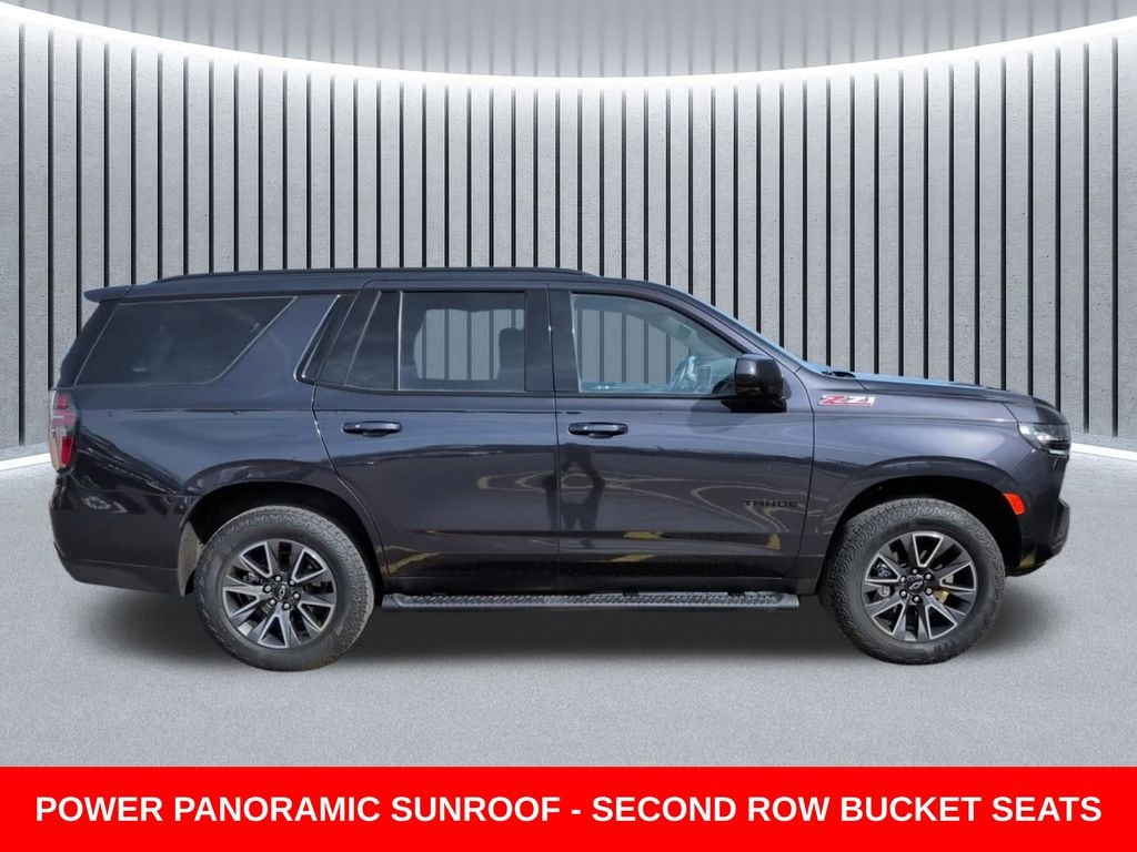 CARFAX One-Owner. Clean CARFAX. ** Clean Carfax 1-Owner Accident Free History, ** Apple CarPlay/Android Auto, ** Adaptive Cruise Control, ** Blind Spot Monitor, ** Cross Traffic Alert, ** Alloy Wheels / Premium Wheels, ** Heated Seats, ** Bluetooth, Hands Free, ** Brake Assist, ** Camera Backup, ** Chrome Wheels / Premium Wheels / Custome Whwels, ** Cruise Control, ** Heated Steering Wheel, ** Keyless Entry, ** Lane Departure Warning, ** Leather Seats, ** LED Headlights, ** Navigation System, ** Power Panoramic (Pano) Sunroof / Moonroof, ** Premium Sound System / Premium Audio, ** Roof Rack, ** Steering Wheel Controls, ** Sunroof/Moonroof, ** Third Row Seating / 3rd Row Seating, ** Tow Hitch / Trailer Hitch, ** USB Port, ** Clean Carfax Accident Free History, ** One Owner, ** Power Drivers Seat, ** Power Passenger Seat, 4WD, SECOND ROW BUCKET, SUNROOF, POWER PANORAMIC, Model: 2023 Tahoe Z71 Drivetrain: 4WD (4x4) Engine: 5.3L EcoTec3 V8 Horsepower: ~355 hp Torque: ~383 lb-ft Transmission: 10-speed automatic Panoramic Roof Dual-pane panoramic power sunroof Tilt/slide with express open/close Includes power sunshade Z71 Off-Road Features Front skid plate Red recovery hooks Hill Descent Control 2-speed AutoTrac transfer case 20" all-terrain wheels and tires Interior / Tech (typical) Bose premium audio system Apple CarPlay & Android Auto Heated front seats Available heated 2nd-row seats Power liftgate, Tahoe Z71 Panoramic Roof, 4D Sport Utility, EcoTec3 5.3L V8, 10-Speed Automatic with Overdrive, 4WD, Dark Ash Metallic, Black Leather, 1st & 2nd Row Color-Keyed Carpeted Floor Mats, 2-Speed Active Electronic AutoTrac Transfer Case, Auto-Dimming Inside Rear-View Mirror, Black Tubular Assist Steps, Bose 9-Speaker Stereo Audio System Feature, Bright Front & Rear Door Sill Plates, Color-Keyed Carpeting Floor Covering, Driver & Front Outboard Passenger Airbags, Enhanced Driver Information Center, Floor Console w/Storage Area, Front High-Approach Angle Fascia, Hands-Free Rear Power Programmable Liftgate, Hill Descent Control, Infotainment Display, LED Daytime Running Lamps, License Plate Front Mounting Package, Luxury Package, Max Trailering Package, Memory Settings for Driver, Navigation System, Off-Road Capability Package, Preferred Equipment Group 2Z7, Red Horizontal-Mounted Recovery Hooks, Remote Start, SiriusXM Radio w/360L, Universal Home Remote, Wireless Charging, Wrapped Steering Wheel, Z71 Off-Road Package.