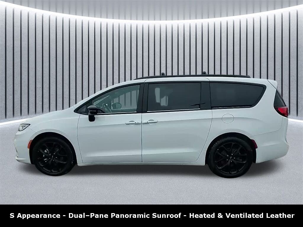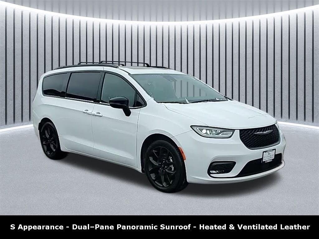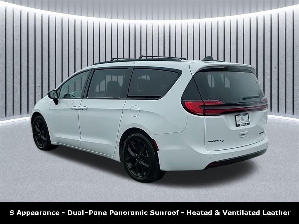 CARFAX One-Owner. Clean CARFAX. ** Clean Carfax 1-Owner Accident Free History, ** Apple CarPlay/Android Auto, ** Adaptive Cruise Control, ** Blind Spot Monitor, ** Cross Traffic Alert, ** Alloy Wheels / Premium Wheels, ** Heated Seats, ** Cooled Seats, ** Bluetooth, Hands Free, ** Brake Assist, ** Camera Backup, ** Chrome Wheels / Premium Wheels / Custome Whwels, ** Cruise Control, ** Heated Steering Wheel, ** Keyless Entry, ** Lane Departure Warning, ** Leather Seats, ** LED Headlights, ** Memory Seat, ** Navigation System, ** Power Panoramic (Pano) Sunroof / Moonroof, ** Premium Sound System / Premium Audio, ** Roof Rack, ** Stability Control, ** Steering Wheel Controls, ** Sunroof/Moonroof, ** Third Row Seating / 3rd Row Seating, ** USB Port, ** Clean Carfax Accident Free History, ** One Owner, ** Power Drivers Seat, ** Power Passenger Seat, ** Heated Rear Seats, S Appearance Package, Uconnect® 5 Nav with 10.1â"Inch Touch Screen Display, 13 Alpine® Speakers, Dualâ"Pane Panoramic Sunroof, 20" x 7.5" Foreshadow Painted Aluminum Wheels, What S Appearance Package Means (Standard on Limited) For the 2025 Pacifica Limited model year, the S Appearance Package is now standard equipment, not an extra option, on Limited trims. ð Exterior Enhancements The S Appearance Package is a styling theme that gives the Pacifica a sportier, darker look compared with the regular trim: Dark-finish 20â²â² wheels (âForeshadowâ finish) for a bold look. Anodized ink badging and darker trim elements on the grille and exterior. Black accents and trim pieces (black Stow ân Place roof rack, gloss black mirrors, black grille surround). Dark-themed exterior overall, favoring black on many trim elements. ðª' Interior Touches Inside the cabin, the S Appearance features subtle stylistic upgrades to enhance its sporty appearance: Black upholstery with contrasting stitches (light grey or similar tones). Darker interior accents â" often piano black or similar., Pacifica Limited S Appearance Package, 4D Passenger Van, 3.6L V6 24V VVT, 9-Speed 948TE Automatic, FWD, Bright White Clearcoat, Black w/Nappa Leather Bucket Seats with S Logo, Navigation System, Quick Order Package 27P.