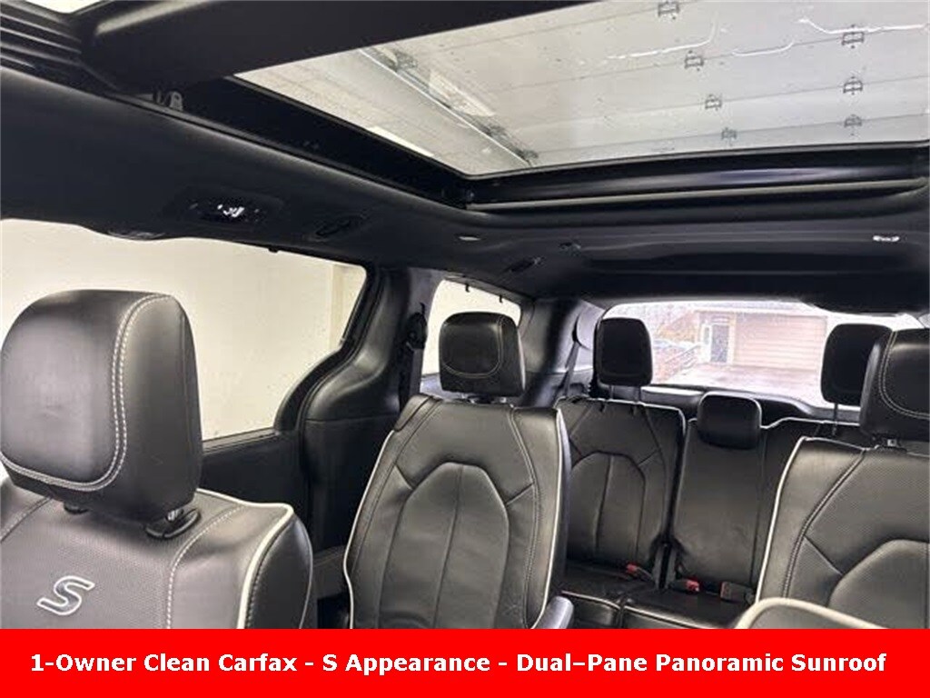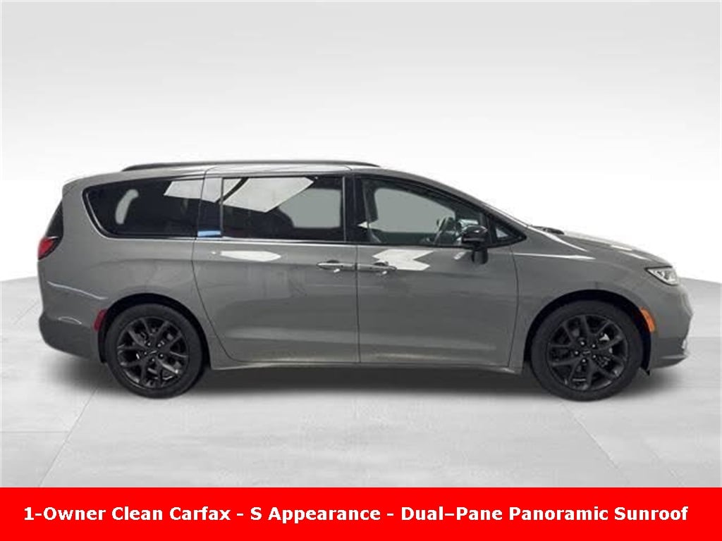 CARFAX One-Owner. Clean CARFAX. ** Clean Carfax 1-Owner Accident Free History, ** Apple CarPlay/Android Auto, ** Adaptive Cruise Control, ** Blind Spot Monitor, ** Cross Traffic Alert, ** Alloy Wheels / Premium Wheels, ** Heated Seats, ** Cooled Seats, ** Bluetooth, Hands Free, ** Brake Assist, ** Camera Backup, ** Chrome Wheels / Premium Wheels / Custome Whwels, ** Cruise Control, ** Heated Steering Wheel, ** Keyless Entry, ** Lane Departure Warning, ** Leather Seats, ** LED Headlights, ** Navigation System, ** Power Panoramic (Pano) Sunroof / Moonroof, ** Premium Sound System / Premium Audio, ** Roof Rack, ** Stability Control, ** Steering Wheel Controls, ** Sunroof/Moonroof, ** Third Row Seating / 3rd Row Seating, ** USB Port, ** Clean Carfax Accident Free History, ** One Owner, ** Power Drivers Seat, ** Power Passenger Seat, ** Heated Rear Seats, Dualâ"Pane Panoramic Sunroof, Ventilated Front Seats, Uconnect® 5 Nav with 10.1â"Inch Touch Screen Display, 20" x 7.5" Foreshadow Painted Aluminum Wheels, S Appearance Package, 13 Alpine® Speakers, For the 2025 model year, the popular S Appearance Package is now standard equipment on the Chrysler Pacifica Limited (including the FWD version). Itâs chiefly a styling and aesthetic package that gives the Pacifica a sportier, more aggressive look compared with a standard-trim vehicle. ð¨ Exterior Enhancements The S Appearance Package focuses on dark-themed exterior styling cues, such as: Anodized Ink finishes on badging and exterior accents (dark low-shine look) Foreshadow-finished wheels (20-inch typically on Limited) for a more aggressive wheel design Black Stow ân Place roof rack (black-out roof rack bars) Gloss black exterior mirrors and daylight opening moldings, The S Appearance Package does not change the engine, drivetrain, or fundamental performance characteristics of the Pacifica. On the Limited FWD itâs still powered by Chryslerâs standard 3.6 L V6 with a 9-speed automatic (no performance upgrade is tied to the S package). ð" Summary â" What You Get with Limited FWD + S Appearance Standard Features Attributable to S Appearance (2025) Dark-themed exterior badging and accents 20â²â² Foreshadow-finish wheels Gloss black exterior mirrors Black Stow ân Place roof rack Subtle interior trim and seating accents, Pacifica Limited S Appearance Package, 4D Passenger Van, 3.6L V6 24V VVT, 9-Speed 948TE Automatic, FWD, Ceramic Gray Clearcoat, Black Leather, Navigation System, Quick Order Package 27P.