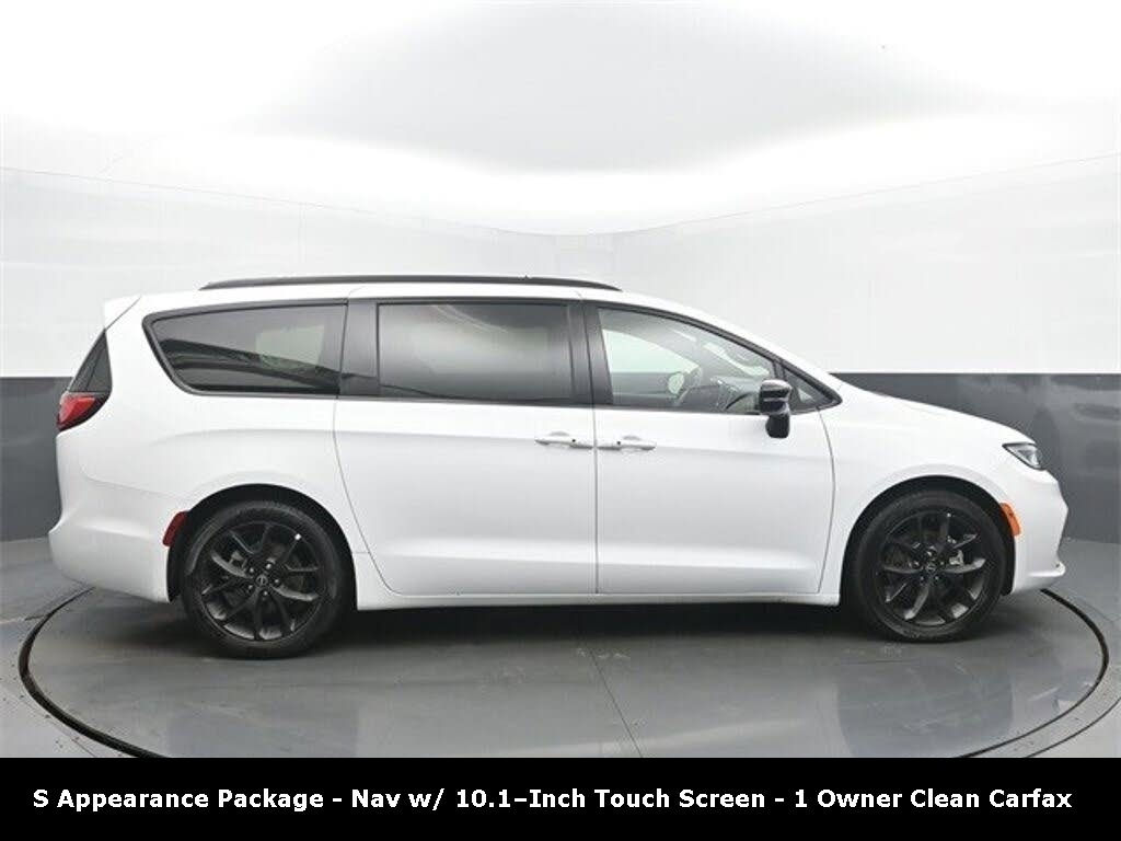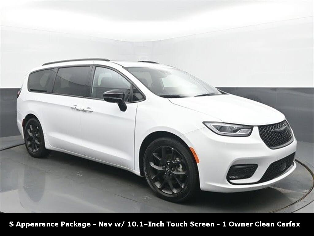 CARFAX One-Owner. Clean CARFAX. ** Clean Carfax 1-Owner Accident Free History, ** Apple CarPlay/Android Auto, ** Adaptive Cruise Control, ** Blind Spot Monitor, ** Cross Traffic Alert, ** Alloy Wheels / Premium Wheels, ** Heated Seats, ** Cooled Seats, ** Bluetooth, Hands Free, ** Brake Assist, ** Camera Backup, ** Chrome Wheels / Premium Wheels / Custome Whwels, ** Cruise Control, ** Heated Steering Wheel, ** Keyless Entry, ** Lane Departure Warning, ** Leather Seats, ** LED Headlights, ** Navigation System, ** Power Panoramic (Pano) Sunroof / Moonroof, ** Premium Sound System / Premium Audio, ** Roof Rack, ** Stability Control, ** Steering Wheel Controls, ** Sunroof/Moonroof, ** Third Row Seating / 3rd Row Seating, ** USB Port, ** Clean Carfax Accident Free History, ** One Owner, ** Power Drivers Seat, ** Power Passenger Seat, ** Heated Rear Seats, S Appearance Package, 2nd and 3rdâ"Row Stow 'n Go® Seats with Easyâ"Tilt, Ventilated Front Seats, Uconnect® 5 Nav with 10.1â"Inch Touch Screen Display, 20" x 7.5" Foreshadow Painted Aluminum Wheel, Dualâ"Pane Panoramic Sunroof, Included styling elements: 20-inch Foreshadow wheels (larger, black-finished wheels) Stellantis North America Product Media Anodized Ink badging â" darker badges vs. chrome Stellantis North America Product Media Black Day Light Opening (DLO) moldings (black window trim) chrysler Black Stow âN Place® roof rack system (blacked-out roof rails) chrysler Gloss black exterior mirrors (on newer builds) Chrysler Dodge Jeep Ram of Tampa Bay Premium upper/lower grille with black surround Chrysler Dodge Jeep Ram of Tampa Bay Premium rear fascia with black accents Chrysler Dodge Jeep Ram of Tampa Bay âSâ badging denoting the appearance package Stellantis North America Product Media â¡ï¸ The overall effect is a darker, sportier exterior theme versus traditional chrome-trimmed Pacifica versions. Car and Driver, While mostly exterior-focused, the package also includes some interior touches: Nappa leather (or leatherette) seats with embroidered âSâ logo â" darker upholstery theme Chrysler Dodge Jeep Ram of Tampa Bay Matching black/contrast stitching and subtle accents for a sportier interior palette J.D. Power (The exact materials can vary slightly based on dealer configurations and options, but the emphasis is on black styling.), Pacifica Limited S Appearance Package, 4D Passenger Van, 3.6L V6 24V VVT, 9-Speed 948TE Automatic, FWD, Bright White Clearcoat, Black w/Nappa Leather Bucket Seats with S Logo, Navigation System, Quick Order Package 27P.