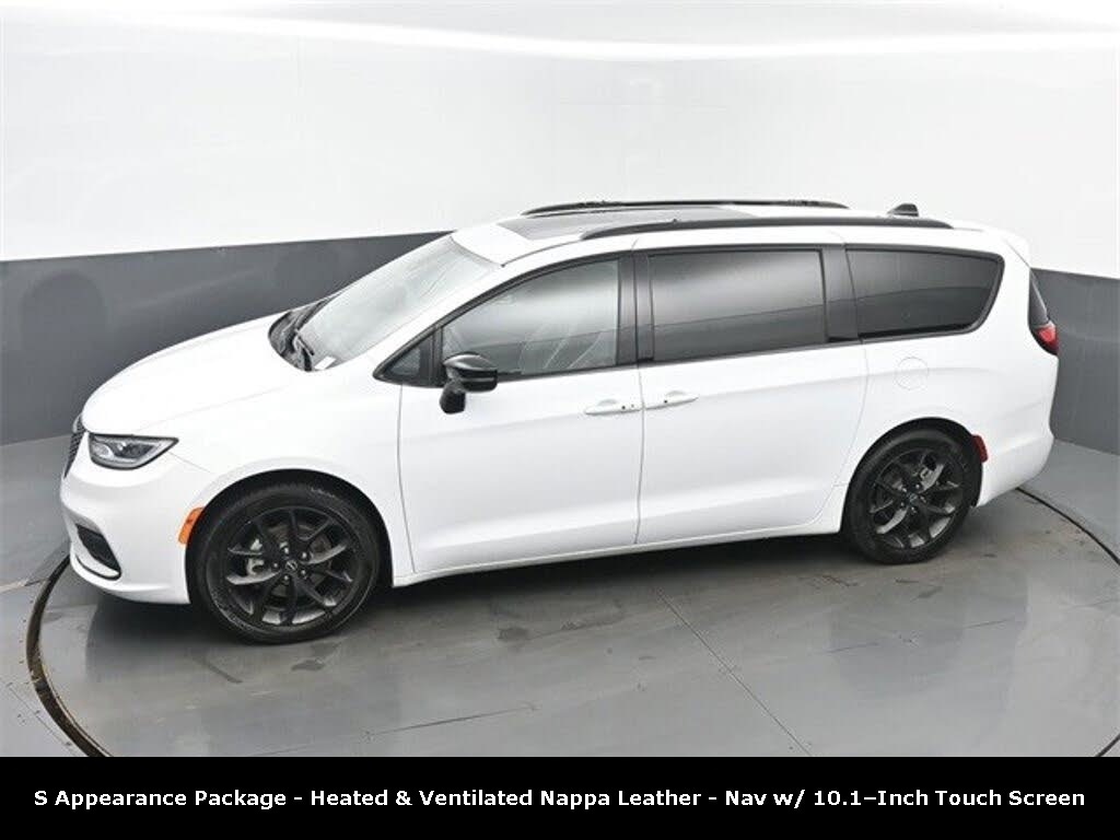 CARFAX One-Owner. Clean CARFAX. ** Clean Carfax 1-Owner Accident Free History, ** Apple CarPlay/Android Auto, ** Adaptive Cruise Control, ** Blind Spot Monitor, ** Cross Traffic Alert, ** Alloy Wheels / Premium Wheels, ** Heated Seats, ** Cooled Seats, ** Bluetooth, Hands Free, ** Brake Assist, ** Camera Backup, ** Chrome Wheels / Premium Wheels / Custome Whwels, ** Cruise Control, ** Heated Steering Wheel, ** Keyless Entry, ** Lane Departure Warning, ** Leather Seats, ** LED Headlights, ** Navigation System, ** Power Panoramic (Pano) Sunroof / Moonroof, ** Premium Sound System / Premium Audio, ** Stability Control, ** Steering Wheel Controls, ** Sunroof/Moonroof, ** Third Row Seating / 3rd Row Seating, ** USB Port, ** Clean Carfax Accident Free History, ** One Owner, ** Power Drivers Seat, 20" x 7.5" Foreshadow Painted Aluminum Wheels, S Appearance Package, Dualâ"Pane Panoramic Sunroof, 13 Alpine® Speakers, Ventilated Front Seats, Uconnect® 5 Nav with 10.1â"Inch Touch Screen Display, The S Appearance Package is mostly styling and cosmetic enhancements that give the Pacifica a sportier, more aggressive look. On 2025 Pacifica Limited models (and when offered on other trims), it includes: Exterior Styling: 20-inch Foreshadow dark finish wheels Blacked-out exterior accents (badging, grille surrounds, moldings) Black Stow ân Place® roof rack Black exterior mirror caps âSâ badging Dark rear fascia and grille surround Interior Styling Enhancements: Black interior theme (seats and trim with subtle Diesel Gray stitching or accents) (Exact interior detailing varies by trim but generally emphasizes a darker, sportier theme.) Important Note: This package is largely appearance-focused. It doesnât typically add performance hardware like upgraded brakes or suspension â" itâs about aesthetics. Many reviewers and owners describe it as a âchrome deleteâ and mostly cosmetic, not performance enhancing., Pacifica Limited S Appearance Package, 4D Passenger Van, 3.6L V6 24V VVT, 9-Speed 948TE Automatic, FWD, Bright White Clearcoat, Black w/Nappa Leather Bucket Seats with S Logo, Navigation System, Quick Order Package 27P.