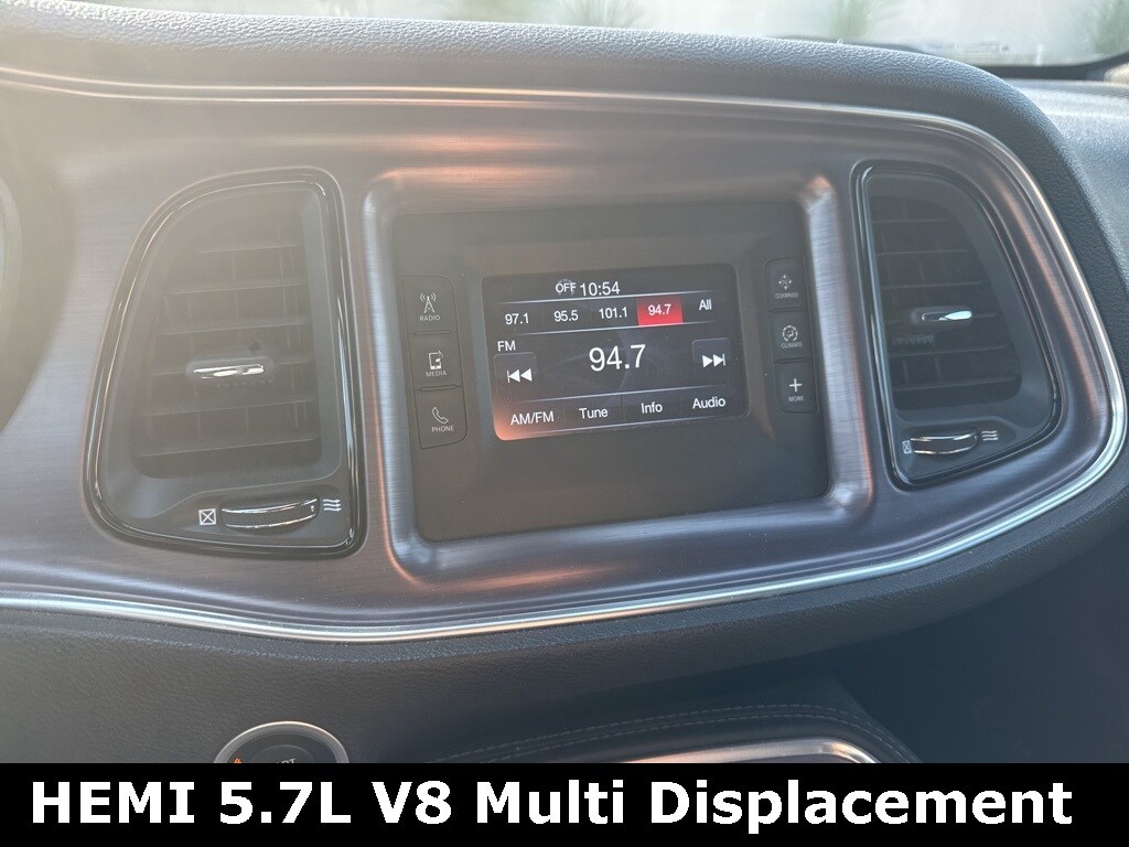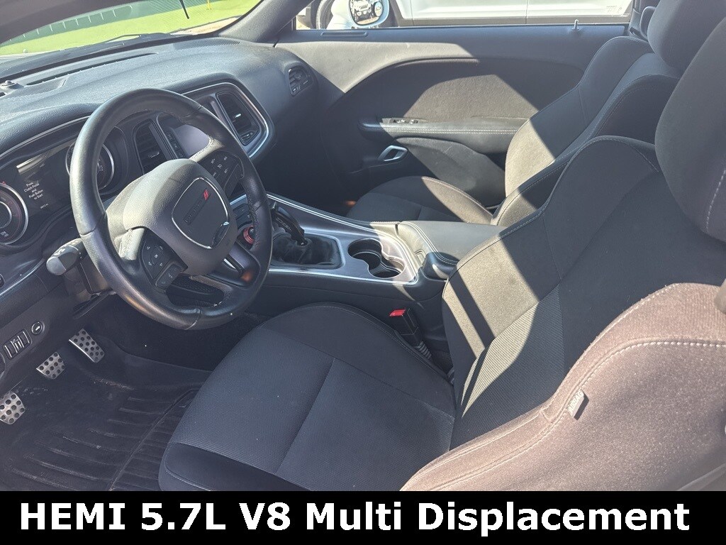 ** Alloy Wheels / Premium Wheels, ** Bluetooth, Hands Free, ** Brake Assist, ** Camera Backup, ** Chrome Wheels / Premium Wheels / Custome Whwels, ** Cruise Control, ** Keyless Entry, ** Premium Sound System / Premium Audio, ** USB Port, ** Power Drivers Seat, HEMI 5.7L V8 Multi Displacement VVT+, The âShakerâ package is a performance/appearance option available on the R/T (and R/T Plus) trims. It includes a functional hood scoop (âShaker hoodâ), coldâair induction, unique styling, upgraded suspension (if the Super Track Pak is included), special wheels/graphics, etc. Kbb.com +2 Caricos +2 With the 6âspeed manual transmission, this is the more âdriverâengagedâ version. Edmunds +1, Specification Detail Engine 5.7 L HEMI V8 (OHV) auto123.com +2 Car and Driver +2 Power ~ 375 horsepower Edmunds +2 auto123.com +2 Torque ~ 410 lbâft Edmunds +2 auto123.com +2 Transmission 6âspeed manual Tremec TR6060 Automobile Catalog +2 Car and Driver +2 Rear axle ratio 3.90 (for many manual R/Ts) Car and Driver +2 Automobile Catalog +2 0â60 mph ~ 5.1 seconds for the 5.7 L manual R/T (nonâScat Pack) version. Car and Driver +1 1â4 mile ~ 13.7 sec at ~103 mph for that same version. Car and Driver Top speed Manufacturer claim roughly 155 mph (electronically limited) for the 5.7 L manual R/T Shaker in many specs. Car and Driver +2 Automobile Catalog +2 Fuel economy (EPA) ~ 15 mpg city / 23 mpg highway for the manual transmission R/T w/ 5.7L. Combined ~18 mpg., Features & Equipment Highlights Functional âShakerâ hood scoop that shakes with engine motion and feeds cold air. Caricos +1 Super Track Pak (if equipped): lowered suspension, Bilstein shocks, upgraded performance tires, etc. Kbb.com +1 Unique styling cues: âShakerâ badges, special stripes/graphics, special wheels, optional forged aluminum wheels, etc. Kbb.com +2 Caricos +2 Interior touches: performance seats (cloth in basic, leather/Nappa optional/higher trims), âShakerâ graphics/splash screens, leather steering wheel, premium audio options, etc., Challenger R/T Shaker 5.7 V8 HEMI, 2D Coupe, HEMI 5.7L V8 Multi Displacement VVT, 6-Speed Manual, RWD, Bright White Clearcoat, Black Cloth, 20" x 8.0" Aluminum Wheels, Anti-Lock Brakes, Black Fuel Filler Door, Black Grille w/Bezel, Bright Pedals, Cloth Performance Seats, Dash Plaque, Dual Rear Exhaust w/Bright Tips, Fog Lamps, Graphite Pattern Instrument Panel Bezel, Grille Challenger Script Badge, Hemi Fender/Hood Badge, Leather Wrapped Steering Wheel, MOPAR Shaker Hood, MOPAR Shaker Intake, Quick Order Package 22U R/T Shaker, R/T Badge, Rear Black Spoiler, Shaker Graphics, Shaker Package, Super Track Pak, Underhood Shaker Decal.