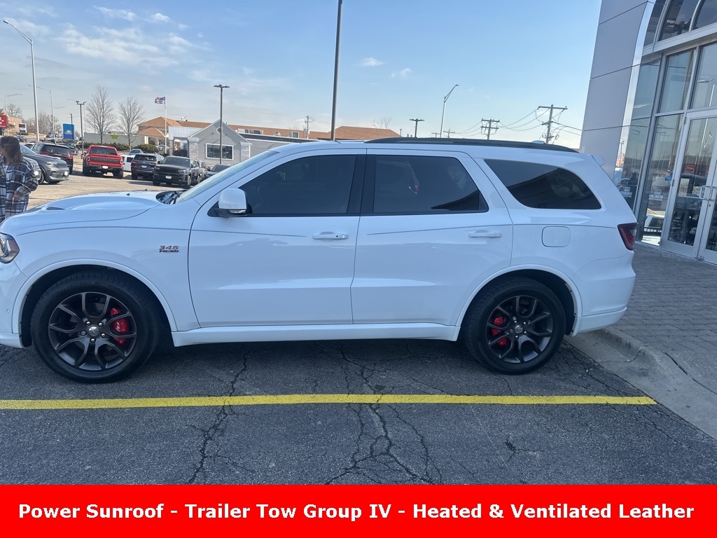 Heavy-duty engine cooling (on some listings) ð" All of these help with hooking up and pulling trailers safely. ð' With this package installed from the factory, youâll have the physical hitch and wiring in place to tow properly (wiring for brake lights, turn signals, etc.) and better suspension support for towing. âï¸ Power Sunroof This option adds a factory power-operated sunroof/moonroof, typically with comfort-stop opening and full one-touch up/down features., Class IV Receiver Hitch, Secondâ"Row Fold / Tumble Captain Chairs, Ventilated Front Seats, Handâ"Wrapped Dashboard with Live Stitch, Power Sunroof, Durango R/T Power Sunroof, 4D Sport Utility, HEMI 5.7L V8 Multi Displacement VVT, 8-Speed Automatic, AWD, White Knuckle Clearcoat, Black Leather, 7 & 4 Pin Wiring Harness, Black Roof Rails, Cargo Compartment Cover, Cargo Plus Group, Class IV Receiver Hitch, Heavy-Duty Engine Cooling, Navigation System, Navigation system: Garmin, Quick Order Package 25S (DISC), Rear Load Leveling Suspension, Trailer Tow Group IV.