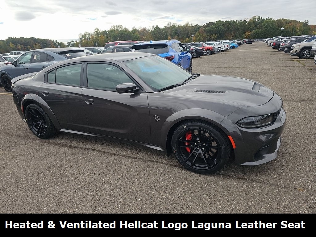 CARFAX One-Owner. Clean CARFAX. Odometer is 1755 miles below market average! ** Clean Carfax 1-Owner Accident Free History, ** Apple CarPlay/Android Auto, ** Adaptive Cruise Control, ** Blind Spot Monitor, ** Cross Traffic Alert, ** Alloy Wheels / Premium Wheels, ** Heated Seats, ** Bluetooth, Hands Free, ** Brake Assist, ** Camera Backup, ** Chrome Wheels / Premium Wheels / Custome Whwels, ** Cruise Control, ** Heated Steering Wheel, ** Keyless Entry, ** Lane Departure Warning, ** Leather Seats, ** LED Headlights, ** Premium Sound System / Premium Audio, ** Stability Control, ** Steering Wheel Controls, ** USB Port, ** Clean Carfax Accident Free History, ** One Owner, ** Power Drivers Seat, Uconnect® 4C with 8.4 Inch Touch Screen Display, Ventilated Front Seats, Widebody Package, Hereâs a detailed overview of the 2022 Charger SRT Hellcat Widebody â" what it is, what makes it special, and key specs plus things to watch. If youâd like market value, maintenance costs or how it compares to rivals, I can pull that too., Engine & Drivetrain Supercharged 6.2 L HEMI V8 for the Hellcat version (Widebody). Dodge Garage +1 Output: About 717 hp and 650 lb-ft of torque in the standard Hellcat Widebody spec. Car and Driver +1 Engine paired with an 8-speed automatic transmission (TorqueFlite 8HP90) in most cases. Car and Driver +1 Dimensions & Structure Wheelbase: 120 inches. Car and Driver Overall width (without mirrors) for the Widebody: about 78.3 inches at the widest point (including rear flares) in this variant. Amazon Web Services, Inc. +1 Curb weight: ~4,594 lbs for the Hellcat Widebody version, Performance Figures 0-60 mph: around 3.6 seconds for the Hellcat Widebody. Dezo's Garage +1 Quarter-mile: approx 10.9 seconds (for 717 hp version) according to the brochure. Dezo's Garage Fuel economy (EPA): ~12 mpg city / 21 mpg highway for the RWD Hellcat Widebody. Edmunds +1 Features & Package Highlights The Widebody package includes 20 à 11-inch wheels, 305/35ZR20 tires, and an SRT-tuned Bilstein three-mode adaptive damping suspension. Dodge Garage +1 Visual upgrades: wider fenders, aggressive front fascia, âmail-slotâ grille for improved cooling., Charger SRT Hellcat Widebody, 4D Sedan, 6.2L 8-Cylinder SMPI Supercharged OHV, 8-Speed Automatic, RWD, Granite Crystal Metallic Clearcoat, Black Leather.