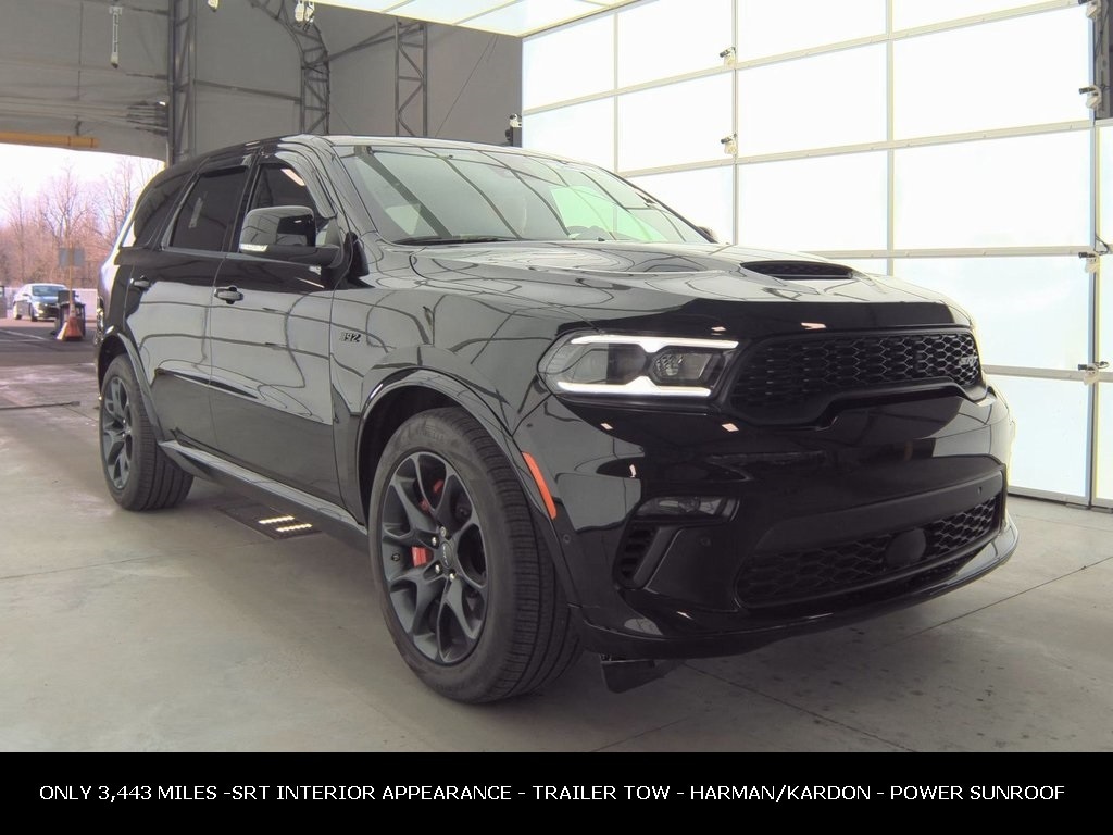 CARFAX One-Owner. Clean CARFAX. Odometer is 24141 miles below market average! ** Clean Carfax 1-Owner Accident Free History, ** Apple CarPlay/Android Auto, ** Adaptive Cruise Control, ** Blind Spot Monitor, ** Cross Traffic Alert, ** Alloy Wheels / Premium Wheels, ** Heated Seats, ** Cooled Seats, ** Bluetooth, Hands Free, ** Brake Assist, ** Camera Backup, ** Chrome Wheels / Premium Wheels / Custome Whwels, ** Cruise Control, ** Heated Steering Wheel, ** Keyless Entry, ** Lane Departure Warning, ** Leather Seats, ** LED Headlights, ** Memory Seat, ** Navigation System, ** Premium Sound System / Premium Audio, ** Roof Rack, ** Stability Control, ** Steering Wheel Controls, ** Sunroof/Moonroof, ** Third Row Seating / 3rd Row Seating, ** Tow Hitch / Trailer Hitch, ** USB Port, ** Clean Carfax Accident Free History, ** One Owner, ** Power Drivers Seat, AWD, ALL WHEEL DRIVE, Key Performance & Powertrain Engine: 6.4 L HEMI® V8 (392 cubic inches) Horsepower: ~475 hp Torque: ~470 lb-ft Transmission: 8-speed automatic with SRT calibrations Drivetrain: Full-time AWD (all-wheel drive) 0â"60 mph: About 4.4 seconds Towing Capacity: Up to around 8,700 lbs These figures reflect the SRT 392âs high-performance design and are typical for the 2022 model., Performance & Handling Performance-tuned Quadra-Trac active on-demand AWD Selec-Trac system Bilstein adaptive-damping high-performance suspension Brembo high-performance brakes with large slotted rotors Electronic limited-slip rear differential Exterior 20â²â² x 10â²â² Hyper Black aluminum wheels (performance wheel) Wide performance tires Auto-leveling headlamps SRT badging and 392 fender badge Power sunroof (tilt/slide glass roof with express open/close) â" often an option on SRT 392 but included on some builds/packages, Durango SRT 392 Power Sunroof, 4D Sport Utility, SRT HEMI 6.4L V8 MDS, 8-Speed Automatic, AWD, DB Black Clearcoat, Black w/Leather Trimmed Bucket Seats, 7 & 4 Pin Wiring Harness, Black Package, Class IV Receiver Hitch, Eclipse Black Exhaust Tip, Forged Carbon Fiber Interior Accents, Gloss Black Exterior Mirrors, Gray Metallic Badges, Navigation System, Navigation system: TomTom, Premium Instrument Panel, Premium Interior Group, Quick Order Package 29L, Satin Black Dodge Tail Lamp Badge, Suede Headliner, Suede Wrapped Interior Accents, Trailer Brake Control, Trailer Tow Group IV, Wheels: 20" x 10" Lights Out Aluminum.