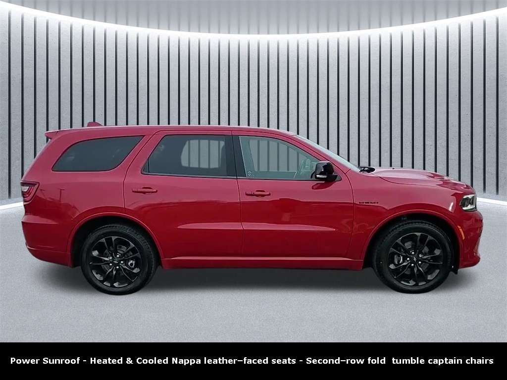 Clean CARFAX. ** Apple CarPlay/Android Auto, ** Adaptive Cruise Control, ** Alloy Wheels / Premium Wheels, ** Heated Seats, ** Cooled Seats, ** Bluetooth, Hands Free, ** Brake Assist, ** Camera Backup, ** Chrome Wheels / Premium Wheels / Custome Whwels, ** Cruise Control, ** Heated Steering Wheel, ** Keyless Entry, ** Lane Departure Warning, ** Leather Seats, ** LED Headlights, ** Navigation System, ** Premium Sound System / Premium Audio, ** Roof Rack, ** Stability Control, ** Steering Wheel Controls, ** Sunroof/Moonroof, ** Third Row Seating / 3rd Row Seating, ** Tow Hitch / Trailer Hitch, ** USB Port, ** Clean Carfax Accident Free History, ** Power Drivers Seat, ** Power Passenger Seat, HEMI 5.7L V8 Multi Displacement VVT, AWD, ALL WHEEL DRIVE, Uconnect 5 NAV with 10.1â"inch display, Nappa leatherâ"faced bucket seats, Secondâ"row fold and tumble captain chairs, Power sunroof, 20x8 â"inch Black Noise aluminum wheels, Durango R/T Plus Power Sunroof, 4D Sport Utility, HEMI 5.7L V8 Multi Displacement VVT, 8-Speed Automatic, AWD, Redline 2 Coat Pearl, Black w/Leather Trimmed Bucket Seats, 1 USB Charging Port in Console, 12V Auxiliary Power Outlet In Console, 2nd Row Console w/Armrest & Storage, 7 & 4 Pin Wiring Harness, Blacktop Package, Class IV Receiver Hitch, Full Console 3rd Row Floor Mat, Gloss Black Badges, Gloss Black Exterior Mirrors, Heavy-Duty Engine Cooling, Illuminated Rear Cupholders, Navigation System, Navigation system: TomTom, Quick Order Package 22S R/T, Rear Load Leveling Suspension, Satin Black Dodge Tail Lamp Badge, Trailer Brake Control, Trailer Tow Group IV.