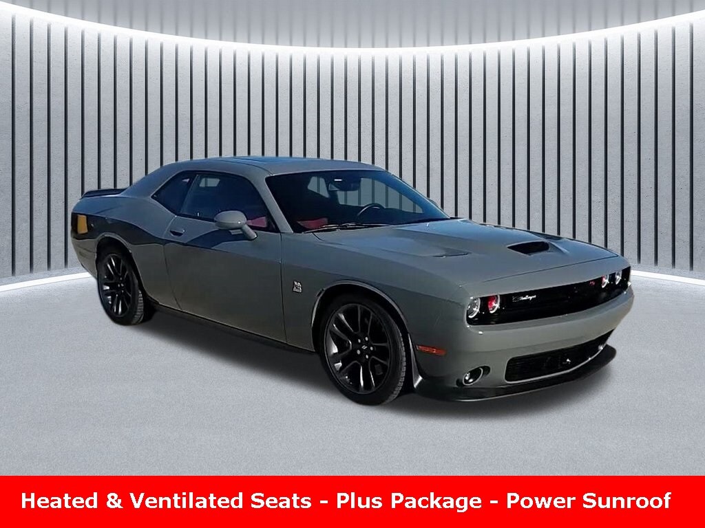 Clean CARFAX. ** Apple CarPlay/Android Auto, ** Adaptive Cruise Control, ** Blind Spot Monitor, ** Cross Traffic Alert, ** Alloy Wheels / Premium Wheels, ** Heated Seats, ** Cooled Seats, ** Bluetooth, Hands Free, ** Brake Assist, ** Camera Backup, ** Chrome Wheels / Premium Wheels / Custome Whwels, ** Cruise Control, ** Heated Steering Wheel, ** Keyless Entry, ** Leather Seats, ** LED Headlights, ** Navigation System, ** Premium Sound System / Premium Audio, ** Stability Control, ** Steering Wheel Controls, ** Sunroof/Moonroof, ** USB Port, ** Clean Carfax Accident Free History, ** Power Drivers Seat, SRT HEMI 6.4L V8 MDS, Alcantara® / Nappa Seats with Scat Pack Logo, Ventilated Front Seats, Alpine® Audio Group with Subwoofe, Uconnect® 4C NAV with 8.4â"Inch Touch Screen Display, Power Sunroof, Engine & Performance Engine: 6.4 L SRT HEMI® V8 Horsepower: ~485 hp Torque: ~475 lb-ft Drivetrain: Rear-wheel drive (RWD) The Scat Pack uses the same 392 cubic-inch V8 engine as the previous SRT 392 models, delivering serious straight-line performance typical of a modern muscle car. âï¸ Transmission Transmission: 8-Speed TorqueFlite Automatic (ZF 8HP70) Includes AutoStick® manual shift mode for driver-controlled gear selection Paddle shifters on the steering wheel when so equipped This automatic gearbox is well-regarded for quick, smooth shifts and helps optimize both performance and highway cruising. ð"¦ Plus Package Features, Challenger R/T Scat Pack Plus Package, 2D Coupe, SRT HEMI 6.4L V8 MDS, 8-Speed Automatic, RWD, Destroyer Gray Clearcoat, Ruby Red/Black Artificial Leather, 506 Watt Amplifier, 9 Amplified Speakers w/Subwoofer, Alpine Audio Group w/Subwoofer, Auto High Beam Headlamp Control, Black-Edged Premium Floormats, Exterior Mirrors w/Heating Element, GPS Navigation, High-Intensity Discharge Headlamps, Navigation System, Plus Package, Power Multi-Function Foldaway Mirrors, Premium-Stitched Dash Panel, Quick Order Package 23G R/T Scat Pack, Quick Order Package 24G R/T Scat Pack, Rain Sensitive Windshield Wipers, Scat Pack Logo Nappa/Alcantara Seat, Surround Sound, Technology Group (DISC).