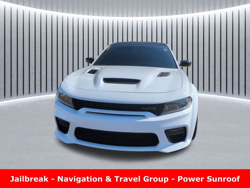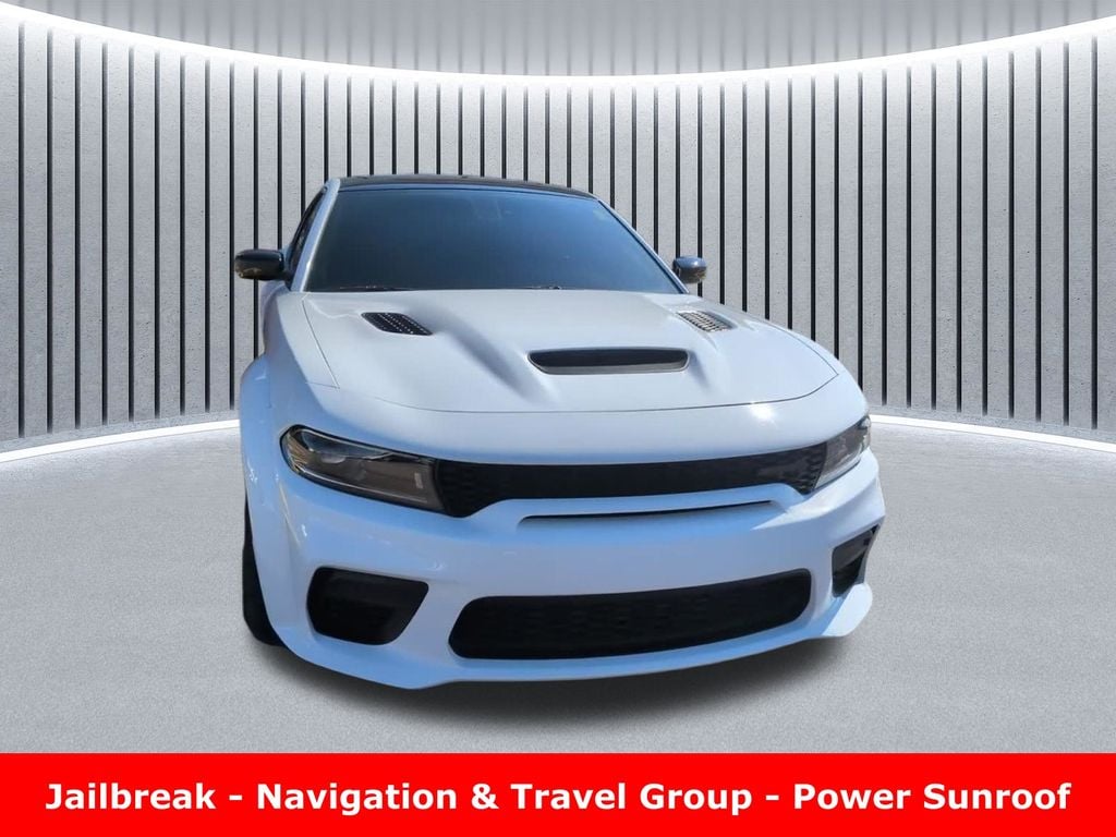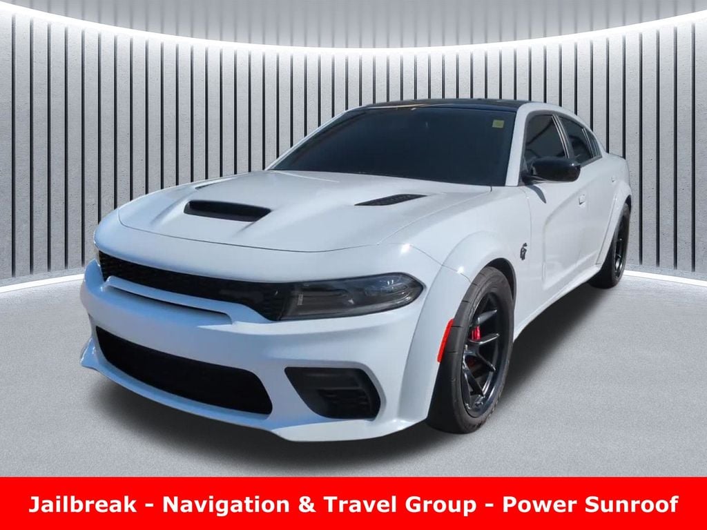 Clean CARFAX. Odometer is 2407 miles below market average! ** Apple CarPlay/Android Auto, ** Adaptive Cruise Control, ** Blind Spot Monitor, ** Cross Traffic Alert, ** Alloy Wheels / Premium Wheels, ** Heated Seats, ** Cooled Seats, ** Bluetooth, Hands Free, ** Brake Assist, ** Camera Backup, ** Chrome Wheels / Premium Wheels / Custome Whwels, ** Cruise Control, ** Heated Steering Wheel, ** Keyless Entry, ** Lane Departure Warning, ** Leather Seats, ** LED Headlights, ** Navigation System, ** Premium Sound System / Premium Audio, ** Stability Control, ** Steering Wheel Controls, ** Sunroof/Moonroof, ** USB Port, ** Clean Carfax Accident Free History, ** Power Drivers Seat, ** Power Passenger Seat, 6.2L V8 Supercharged, Jailbreak, Harman Kardon® Audio Group, 19 Harman Kardon® GreenEdge® Speakers, Surround Sound, Black / Demonic Red Seats, Demonic Red Seat Belts, Suede Headliner, Power Sunroof, Gloss Black Painted Roof, 20" x 11" Lightweight Lowâ"Gloss Black Wheels, Hellcat Widebody Jailbreak (base Hellcat) Engine: 6.2 L supercharged V8 Horsepower: ~717 hp @ 6,100 rpm Torque: ~650 lb-ft @ 4,800 rpm Transmission: 8-speed automatic Drivetrain: Rear-wheel drive 0â"60 mph: ~3.6 s (estimate) Weight: ~4,586 lbs MPG: ~12 city / ~21 highway (Exact numbers vary by source.) ð"¥ Hellcat Redeye Widebody Jailbreak (highest-output) Horsepower: ~797â"807 hp Torque: ~707 lb-ft 0â"60 mph: ~3.5 s or quicker Quarter-mile: ~11.8 s @ ~126 mph Top speed: ~181 mph+ (This version is essentially the most potent Charger ever made.), Charger SRT Hellcat Widebody Jailbreak, 4D Sedan, 6.2L 8-Cylinder SMPI Supercharged OHV, 8-Speed Automatic, RWD, White Knuckle Clearcoat, Demonic Red/Black w/Hellcat Logo Laguna Leather Seat, 1-Yr SiriusXM Guardian Trial, 19 harman/kardon GreenEdge Speakers, 2-Piece Shark Fin Antenna, 4G LTE Wi-Fi Hot Spot, 5-Year SiriusXM Traffic Service, 5-Year SiriusXM Travel Link Service, 8.4" Touchscreen Display, Apple CarPlay, Black Exterior Badging, Black Seat Belts, Bright Charger Badge, Compass Gauge, Dual Bright Exhaust Tips, For Details, Visit DriveUconnect.com, For More Info, Call 800-643-2112, Google Android Auto, GPS Antenna Input, GPS Navigation, harman/kardon Audio Group, harman/kardon GreenEdge Amp, HD Radio, Integrated Center Stack Radio, Integrated Voice Command w/Bluetooth, Jailbreak IP Badge, Media Hub (2 USB, AUX), Navigation & Travel Group, Navigation System, Quick Order Package 23B SRT Hellcat Widebody Jailbreak, Radio: Uconnect 4C Nav w/8.4" Display, SiriusXM Radio Service, SiriusXM Satellite Radio, SiriusXM Traffic Plus, SiriusXM Travel Link, Surround Sound, USB Host Flip.