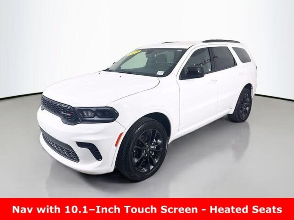 CARFAX One-Owner. Odometer is 1122 miles below market average! ** Apple CarPlay/Android Auto, ** Adaptive Cruise Control, ** Blind Spot Monitor, ** Cross Traffic Alert, ** Alloy Wheels / Premium Wheels, ** Heated Seats, ** Bluetooth, Hands Free, ** Brake Assist, ** Camera Backup, ** Chrome Wheels / Premium Wheels / Custome Whwels, ** Cruise Control, ** Heated Steering Wheel, ** Keyless Entry, ** LED Headlights, ** Navigation System, ** Premium Sound System / Premium Audio, ** Roof Rack, ** Stability Control, ** Steering Wheel Controls, ** Third Row Seating / 3rd Row Seating, ** USB Port, ** One Owner, ** Power Drivers Seat, AWD, ALL WHEEL DRIVE, Nav with 10.1â"Inch Touch Screen, Hereâs a clear overview of the 2025 Dodge Durango GT AWD â" what it is, whatâs standard, and key features you can expect: ð 2025 Dodge Durango GT AWD â" Overview The GT AWD is one of the core trims in the 2025 Dodge Durango lineup, combining sporty styling, family-friendly capability, and standard all-wheel drive (AWD) for enhanced traction and stability. ð"¥ Performance & Drivetrain Engine: 3.6 L Pentastar V6 Horsepower: ~295 hp Torque: ~260 lb-ft Transmission: 8-speed automatic Drivetrain: All-Wheel Drive (AWD) Towing: AWD versions typically include a trailer tow package capability Fuel Economy: About 17 city / 24 highway / 20 combined mpg (AWD) ðï¸ Interior Features Standard cabin features for the GT AWD include: Seating for 7 passengers Uconnect® infotainment with Apple CarPlay & Android Auto 10.1â²â² touchscreen (varies by equipment) Heated front seats Optional upgrades available with higher packages (e.g., Plus or Premium) Steering wheel with controls and paddle shifters in some configs, Durango GT AWD, 4D Sport Utility, 3.6L V6 24V VVT, 8-Speed Automatic, AWD, White Knuckle Clearcoat, Black Cloth, Navigation System, Quick Order Package 2BD GT.