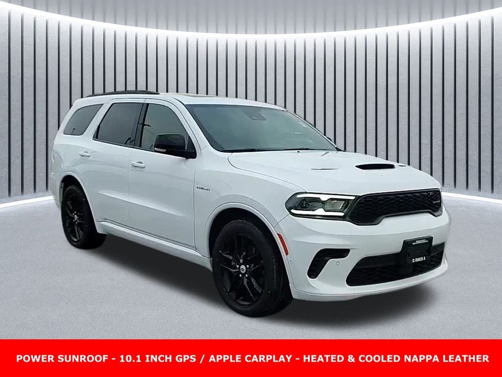 Priced below KBB Fair Purchase Price! Every Pre-driven vehicle has or is in the process of having all mechanical repairs and all required maintenance performed and completed prior to delivery. To provide you the peace of mind purchasing a pre-driven vehicle. Thatâs the St. Charles Guarantee. So relax and enjoy! Please call for availability. White Knuckle Clearcoat 2025 Dodge Durango 4D Sport Utility R/T Plus Power Sunroof HEMI 5.7L V8 Multi Displacement VVT 14/22 City/Highway MPG 8-Speed Automatic AWD