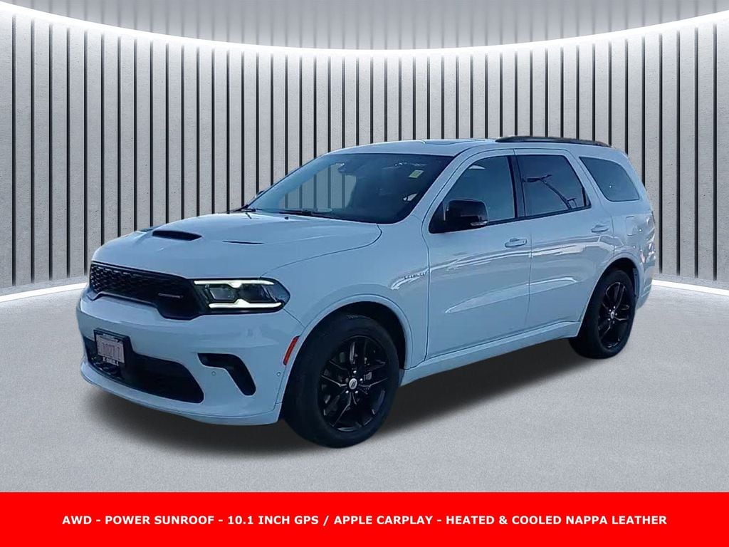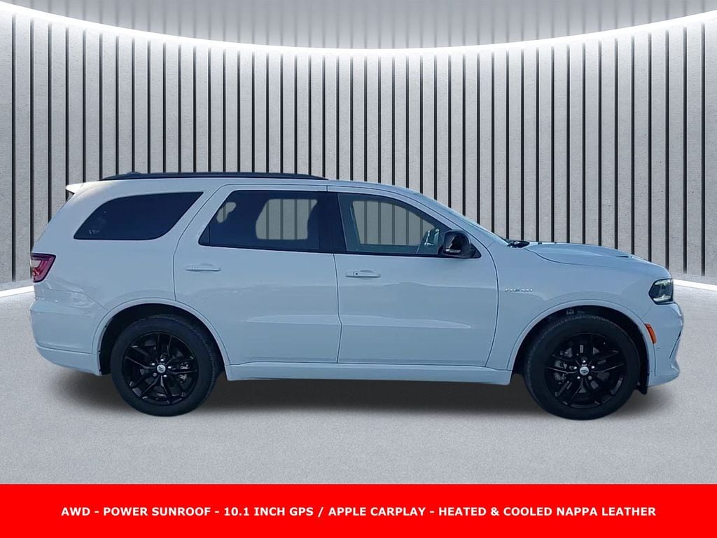 Clean CARFAX. ** Apple CarPlay/Android Auto, ** Adaptive Cruise Control, ** Blind Spot Monitor, ** Cross Traffic Alert, ** Alloy Wheels / Premium Wheels, ** Heated Seats, ** Cooled Seats, ** Bluetooth, Hands Free, ** Brake Assist, ** Camera Backup, ** Chrome Wheels / Premium Wheels / Custome Whwels, ** Cruise Control, ** Heated Steering Wheel, ** Keyless Entry, ** Lane Departure Warning, ** Leather Seats, ** LED Headlights, ** Navigation System, ** Premium Sound System / Premium Audio, ** Stability Control, ** Steering Wheel Controls, ** Sunroof/Moonroof, ** USB Port, ** Clean Carfax Accident Free History, ** Power Drivers Seat, ** Power Passenger Seat, AWD, ALL WHEEL DRIVE, Front ventilated seats, Power sunroof, Key Features & Specs (2025 Durango R/T Plus AWD) Engine: 5.7 L HEMI V8 (MDS) â" 360 hp, 390 lb-ft torque. J.D. Power +2 Elk Grove CDJR +2 Transmission: 8-speed automatic (8HP70) J.D. Power Drivetrain: All-Wheel Drive (AWD) J.D. Power Fuel Economy: ~14 mpg city / 22 mpg highway Sunnyside CDJR +1 Towing Capacity: ~7,200 lbs (per J.D. Power spec sheet for this trim) J.D. Power Seating: Up to 7 passengers, Interior / Comfort Features Power Sunroof: Yes â" R/T Plus package includes a power sunroof (tilt & slide glass) with express open/close. Stellantis Asset Library +1 Seating: Leather (Nappa)-trimmed seats. Elk Grove CDJR +1 Ventilated front seats. Towbin Dodge +1 Heated second-row (outboard) seats. Sunnyside CDJR Memory Features: Driverâs seat, mirror, and radio memory. Sunnyside CDJR Steering Column: Power tilt & telescoping steering column. Towbin Dodge Other Conveniences: 115V power outlet. Sunnyside CDJR Adaptive Cruise Control with full stop. Towbin Dodge +1 Blind Spot Monitoring (with trailer detection)., Durango R/T Plus Power Sunroof, 4D Sport Utility, HEMI 5.7L V8 Multi Displacement VVT, 8-Speed Automatic, AWD, White Knuckle Clearcoat, Black w/Leather Trimmed Bucket Seats, 115V Auxiliary Power Outlet, 7 & 4 Pin Wiring Harness, Adaptive Cruise Control w/Stop, Auto High Beam Headlamp Control, Auto-Dimming Exterior Driver Mirror, Black Roof Rails, Blind Spot w/Trailer Detection, Class IV Receiver Hitch, Dual Remote USB Port - Charge Only, Exterior Mirrors w/Heating Element, Exterior Mirrors w/Memory, Exterior Mirrors w/Supplemental Signals, Floor Console w/Leather Armrest, Full Speed Forward Collision Warning Plus, Gloss Black Exterior Mirrors, Heated Second Row Seats, Integrated Roof Rail Crossbars, Leather Trimmed Bucket Seats, Leather Wrapped Door Panels, LED Auxiliary Low Beam & Turn Signal, Navigation System, Power 6x9 Multi-Function Foldaway Mirrors, Power 8-Way Driver Memory 8-Way Passenger Seats, Power Driver/Passenger 4-Way Lumbar Adjust, Power Sunroof, Power Tilt & Telescopic Steering Column, Quick Order Package 22T R/T Plus, Radio/Driver Seat/Mirrors Memory, Red Accent Stitching, Trailer Brake Control, Ventilated Front Seats.