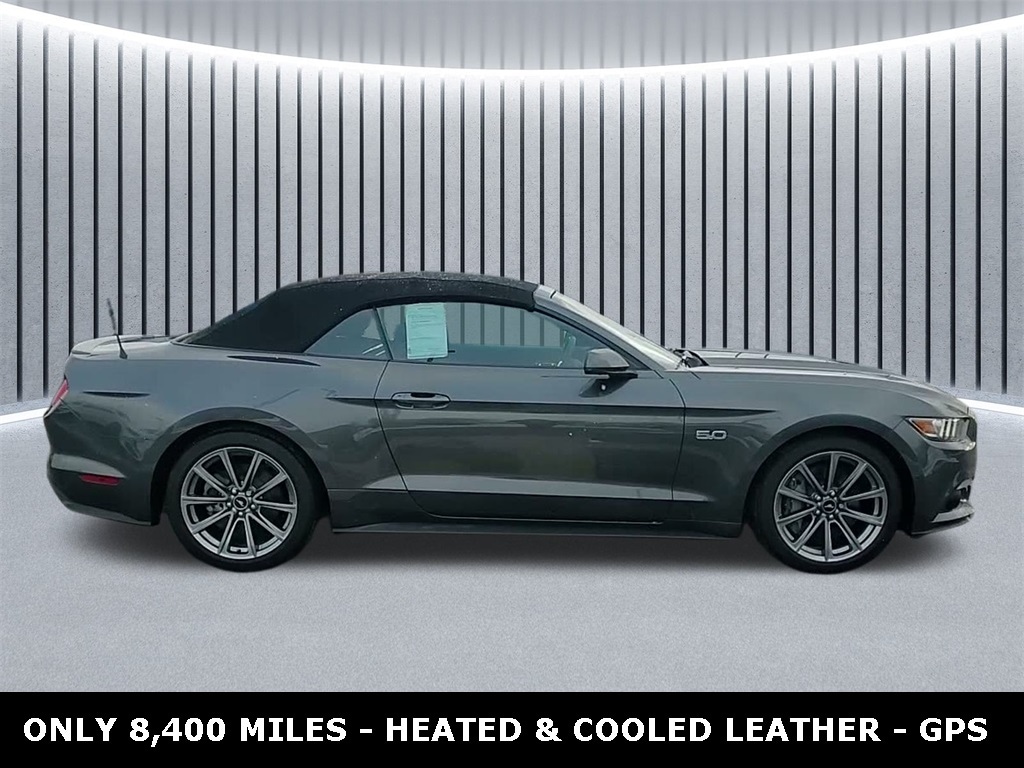 ** Adaptive Cruise Control, ** Blind Spot Monitor, ** Cross Traffic Alert, ** Alloy Wheels / Premium Wheels, ** Heated Seats, ** Cooled Seats, ** Bluetooth, Hands Free, ** Brake Assist, ** Camera Backup, ** Chrome Wheels / Premium Wheels / Custome Whwels, ** Cruise Control, ** Heated Steering Wheel, ** Keyless Entry, ** Lane Departure Warning, ** Leather Seats, ** Navigation System, ** Premium Sound System / Premium Audio, ** Stability Control, ** Steering Wheel Controls, ** USB Port, ** Clean Carfax Accident Free History, ** Power Drivers Seat, ** Power Passenger Seat, 19 INCH WHEELS, 5.0L V8 Ti-VCT, What it offers (Spec / Features / Performance) Engine & performance: The GT Premium Convertible comes with a 5.0-liter V8 engine producing 435 hp and 400 lb-ft of torque (at ~6500 / 4250 rpm). Zero Sixty Times +2 Car and Driver +2 0â"60 / acceleration / speed: With the automatic 6-speed transmission, it does 0â"60 mph in about 5.2 seconds, and the quarter-mile in ~13.5 seconds. Zero Sixty Times +1 Drivetrain / drive type: Rear-wheel drive. Car and Driver +1 Interior & convenience features (on âPremiumâ trim): Leather seats, power locks/windows, power adjustable seats, heated (and sometimes cooled) front seats, cruise control, alloy wheels, soft-top convertible roof, basic infotainment, rear-view camera, and more comfort/convenience add-ons depending on options, Mustang GT Premium, 2D Convertible, 5.0L V8 Ti-VCT, 6-Speed, RWD, Magnetic Metallic, Red Line w/Leather Bucket Seats w/Color Accents, Black Accent Package, Black GT, 5.0 and Pony Badges, Black Spoiler, Blind Spot Info System w/Cross-Traffic Alert, Ebony Interior Environment, Equipment Group 401A, HD Radio, Memory Driver Seat, Mirrors & Ambient Lighting, Navigation System, Premier Trim w/Color Accent Group, Satin Brush Aluminum Instrument Panel, Shaker Pro Audio System, Unique Color-Accented Door Trim, Wheels: 19" Painted Black Aluminum.