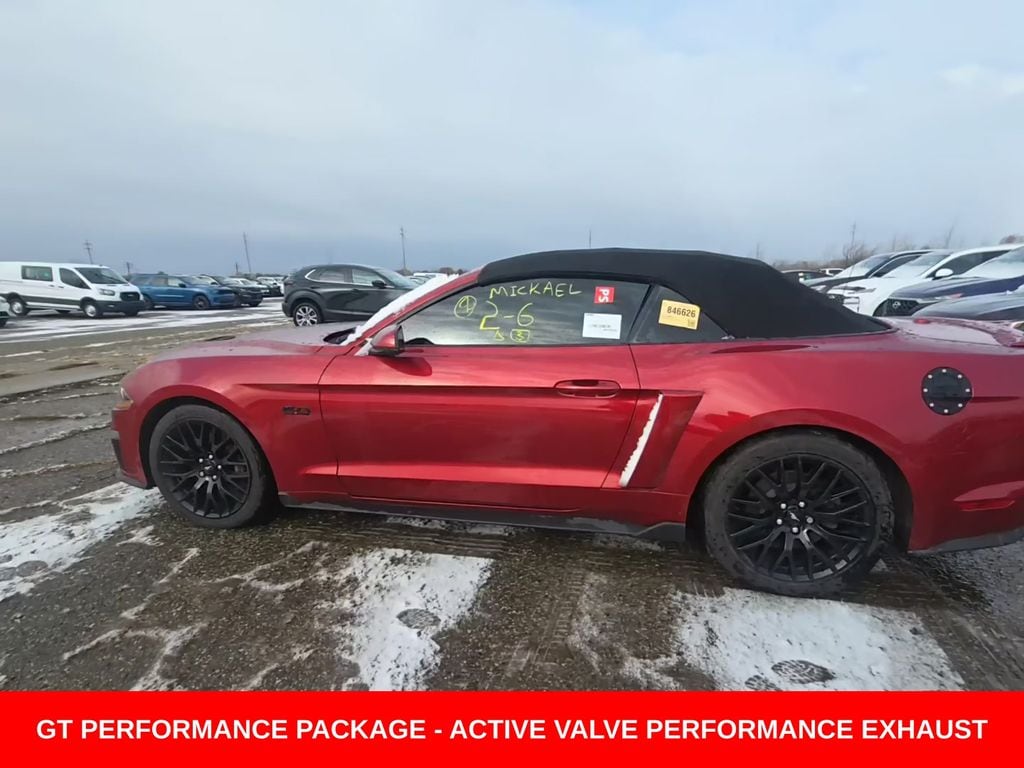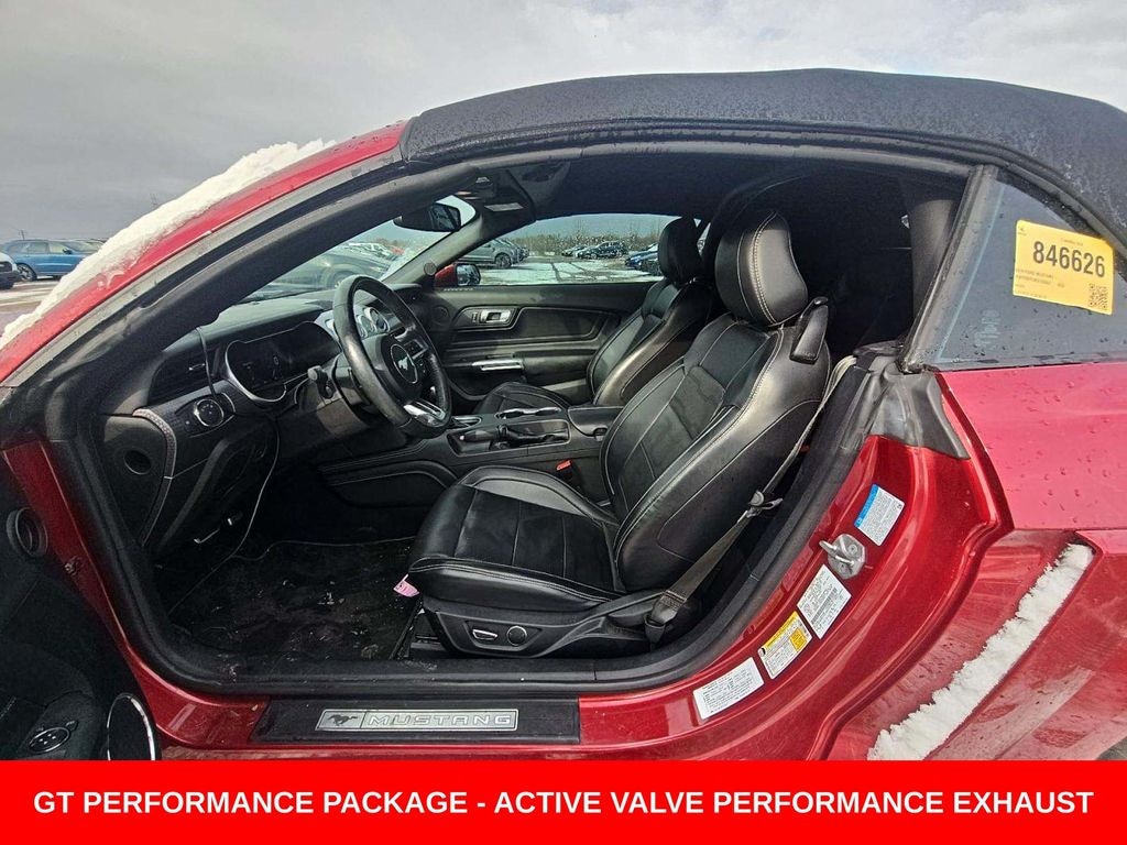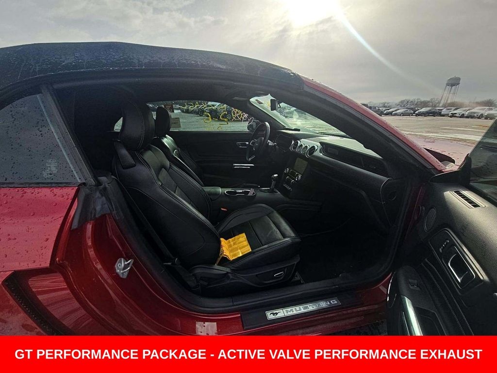 Clean CARFAX. ** Apple CarPlay/Android Auto, ** Adaptive Cruise Control, ** Blind Spot Monitor, ** Cross Traffic Alert, ** Alloy Wheels / Premium Wheels, ** Heated Seats, ** Cooled Seats, ** Bluetooth, Hands Free, ** Brake Assist, ** Camera Backup, ** Chrome Wheels / Premium Wheels / Custome Whwels, ** Cruise Control, ** Heated Steering Wheel, ** Keyless Entry, ** Lane Departure Warning, ** Leather Seats, ** LED Headlights, ** Navigation System, ** Premium Sound System / Premium Audio, ** Stability Control, ** Steering Wheel Controls, ** USB Port, ** Clean Carfax Accident Free History, ** Power Drivers Seat, 5.0L V8 Ti-VCT, ACTIVE VALVE PERFORMANCE EXHAUST, GT PERFORMANCE PACKAGE, VOICE-ACT TOUCH-SCR NAV SYS, This package adds track-focused hardware and handling improvements. Performance upgrades include: Brembo performance brakes TORSEN limited-slip differential Heavy-duty front springs & larger sway bars Unique chassis and stability control tuning 19" performance wheels with summer tires Strut-tower brace and K-brace for rigidity Upgraded suspension tuning These changes make the car handle significantly better on track or aggressive driving. ðï¸ âGT Premiumâ Interior Features Premium trim adds luxury compared to the base GT. Typical equipment includes: Leather seats Heated & cooled front seats SYNC 3 with 8-inch touchscreen Apple CarPlay & Android Auto Ambient interior lighting, Mustang GT Premium Performance Package, 2D Convertible, 5.0L V8 Ti-VCT, 10-Speed Automatic, RWD, Ruby Red Metallic Tinted Clearcoat, Ebony w/Leather Bucket Seats, 3.73 TORSEN Limited-Slip Rear Axle Ratio, Black Accent Package, Black GT, 5.0 & Pony Badges, Black Rear Spoiler, Engine Spun Aluminum Instrument Panel, Equipment Group 401A, Gauge Pack (Oil Pressure & Vacuum), GT Performance Package, HD Front Springs, Larger Brake Rotors, Larger Radiator, Leather Bucket Seats w/Color Accents, Navigation System, Unique Stability Control, Wheels: 19" x 8.5" Ebony Black-Painted Aluminum, Wheels: 19" x 9" Fr & 19" x 9.5" Rr Ebony Black.