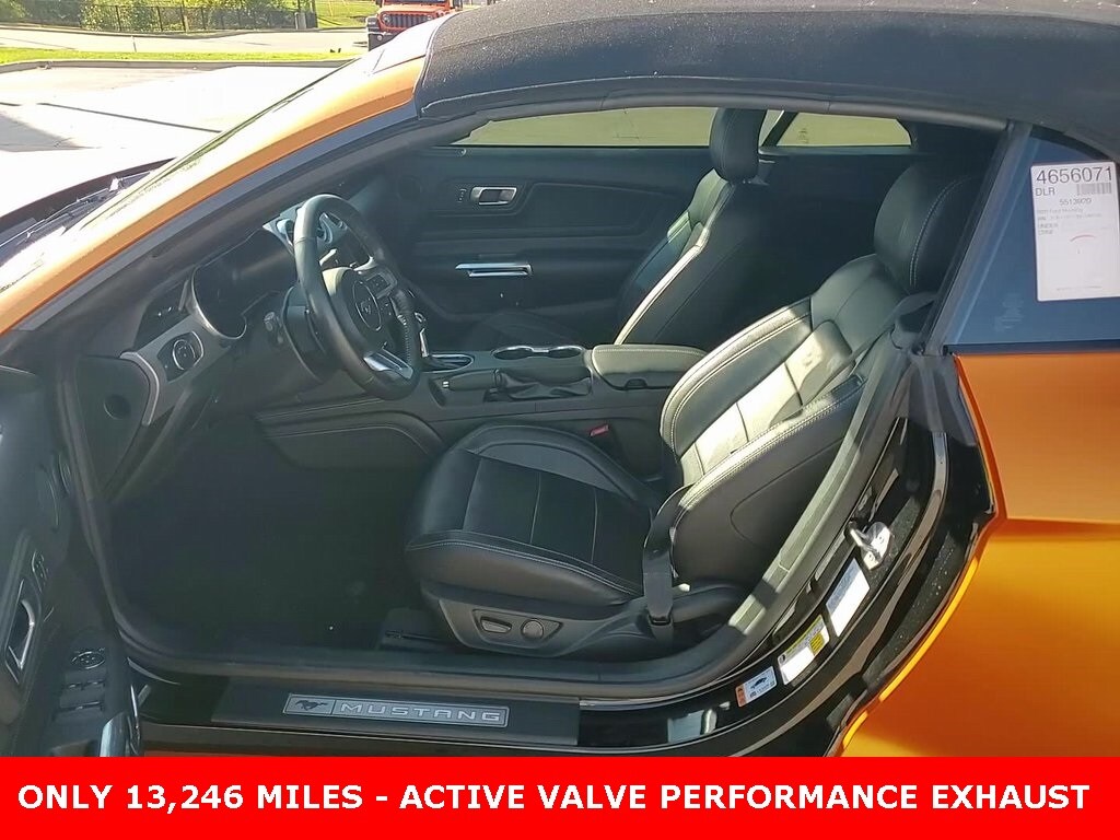 Clean CARFAX. ** Apple CarPlay/Android Auto, ** Adaptive Cruise Control, ** Blind Spot Monitor, ** Cross Traffic Alert, ** Alloy Wheels / Premium Wheels, ** Heated Seats, ** Cooled Seats, ** Bluetooth, Hands Free, ** Brake Assist, ** Camera Backup, ** Chrome Wheels / Premium Wheels / Custome Whwels, ** Cruise Control, ** Heated Steering Wheel, ** Keyless Entry, ** Lane Departure Warning, ** Leather Seats, ** LED Headlights, ** Navigation System, ** Premium Sound System / Premium Audio, ** Stability Control, ** Steering Wheel Controls, ** USB Port, ** Clean Carfax Accident Free History, ** Power Drivers Seat, ** Power Passenger Seat, ACTIVE VALVE PERFORMANCE EXHAUST, 5.0L V8 Ti-VCT, 10-SPEED AUTOMATIC TRANS, VOICE-ACT TOUCHSCREEN NAV SYS, Performance Exhaust (Active Valve Performance Exhaust) Performance Exhaust on this Mustang typically refers to Fordâs Active Valve Performance Exhaust system. Thatâs an option that changes how the exhaust sounds and behaves: It includes exhaust valves that open and close to vary the tone â" from quieter modes (for everyday driving) to louder, more aggressive modes on Sport and Track settings. This system gives the GT a more engaging and tunable exhaust note compared to the basic dual exhaust., Mustang GT Premium Convertible, 2D Convertible, 5.0L V8 Ti-VCT, 10-Speed Automatic, RWD, Cyber Orange Metallic Tricoat, Ebony Leather, 12" LCD Digital Instrument Cluster w/MyColor, Adaptive Cruise Control, Equipment Group 401A, Ford Safe & Smart Package, Heated Steering Wheel, Leather-Trimmed Bucket Seats w/Color Accents, Memory Driver Seat, Mirrors & Ambient Lighting, Navigation System, Voice-Activated Touch-Screen Navigation System.
