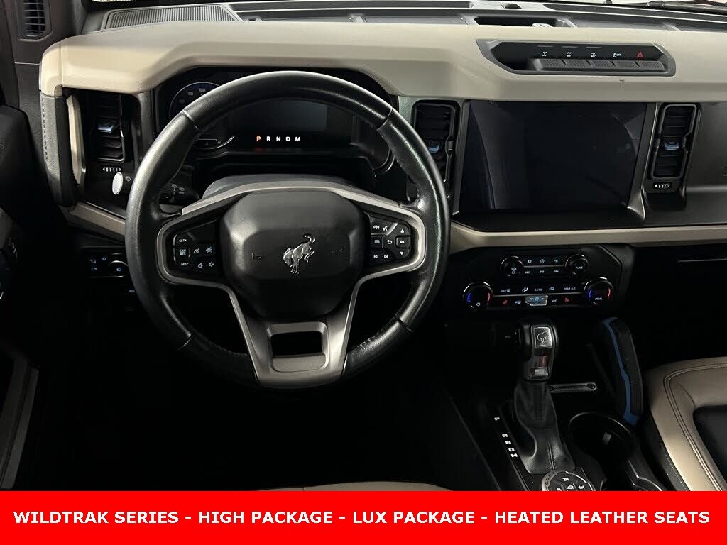 Clean CARFAX. ** Apple CarPlay/Android Auto, ** Adaptive Cruise Control, ** Blind Spot Monitor, ** Alloy Wheels / Premium Wheels, ** Heated Seats, ** Bluetooth, Hands Free, ** Brake Assist, ** Camera Backup, ** Chrome Wheels / Premium Wheels / Custome Whwels, ** Heated Steering Wheel, ** Keyless Entry, ** Leather Seats, ** LED Headlights, ** Navigation System, ** Premium Sound System / Premium Audio, ** Stability Control, ** Steering Wheel Controls, ** USB Port, ** Clean Carfax Accident Free History, 12" LCD CTR STACK TOUCHSCREEN, HIGH PACKAGE, WILDTRAK SERIES, LUX PACKAGE, LTHR-TRM/VINYL SSTONE/BLK STS, Model: 2023 Ford Bronco Wildtrak Body Style: 4-Door (5-Passenger) Drive: Advanced 4Ã4 (4-wheel drive) Exterior Color: Race Red (factory paint option) Engine: 2.7L EcoBoost® V6 Package: Lux Package (high-end equipment group), 360-DEGREE CAMERA, This configuration indicates: â