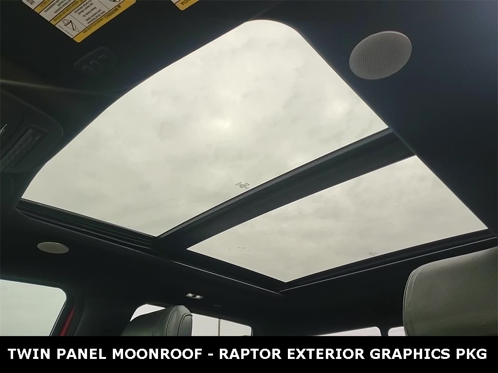 ** Apple CarPlay/Android Auto, ** Blind Spot Monitor, ** Cross Traffic Alert, ** Alloy Wheels / Premium Wheels, ** Heated Seats, ** Bluetooth, Hands Free, ** Brake Assist, ** Camera Backup, ** Chrome Wheels / Premium Wheels / Custome Whwels, ** Cruise Control, ** Heated Steering Wheel, ** Keyless Entry, ** Lane Departure Warning, ** Leather Seats, ** LED Headlights, ** Power Panoramic (Pano) Sunroof / Moonroof, ** Premium Sound System / Premium Audio, ** Stability Control, ** Steering Wheel Controls, ** Sunroof/Moonroof, ** Tow Hitch / Trailer Hitch, ** USB Port, ** Power Drivers Seat, ** Power Passenger Seat, TWIN PANEL MOONROOF, MOONROOF & TAILGAT, RAPTOR EXTERIOR GRAPHICS PKG, BEDLINER-TOUGHBED SPRAYIN*ACCY, Key Specs & Features Powertrain / Performance Standard Raptor Engine: 3.5-liter twin-turbo EcoBoost V6 Car and Driver +2 Karl Flammer Ford +2 Power: ~450 hp, 510 lb-ft torque Karl Flammer Ford +1 Transmission: 10-speed automatic Karl Flammer Ford +1 Drivetrain: 4Ã4 with two-speed transfer case and locking rear differential, Suspension & Off-Road Capability Uses Fox racing shocks, with âLive Valveâ tech (adjusts damping based on terrain) on the standard Raptor. F-150 Europe +1 Long-travel suspension for serious off-road capability. F-150 Europe Selectable drive modes: Normal, Sport, Tow/Haul, Slippery, Off-Road, Baja, Rock Crawl. Karl Flammer Ford Dimensions & Load Wheelbase: ~145.4 in Car and Driver Curb weight: ~5,757 lb for standard Raptor Car and Driver Payload: ~1,543 lb (max spec) for standard Raptor Car and Driver, Interior & Tech 12â²â² digital driver display + 12â²â² central touchscreen (SYNC 4) F-150 Europe Apple CarPlay & Android Auto (wireless) F-150 Europe Heated & ventilated power front seats (with memory) Karl Flammer Ford 360-degree camera package available Karl Flammer Ford Pro Trailer Backup Assist and Pro Trailer Hitch Assist Karl Flammer Ford Towing & Fuel Economy According to Edmunds, the 3.5L Raptor can tow up to ~8,200 lbs (depending on configuration) Edmunds Fuel economy (Edmunds): ~15 mpg city / 18 mpg highway for the 3.5L Raptor, F-150 Raptor TWIN PANEL MOONROOF, 4D SuperCrew, 3.5L V6 EcoBoost, 10-Speed Automatic, 4WD, Code Orange Metallic, Black Leather, Equipment Group 801A Standard, GVWR: 7,300 lbs Payload Package, Moonroof & Tailgate, Navigation System, Navigation system: Connected Navigation, Power Tailgate, Raptor Exterior Graphics Package, Twin Panel Moonroof.