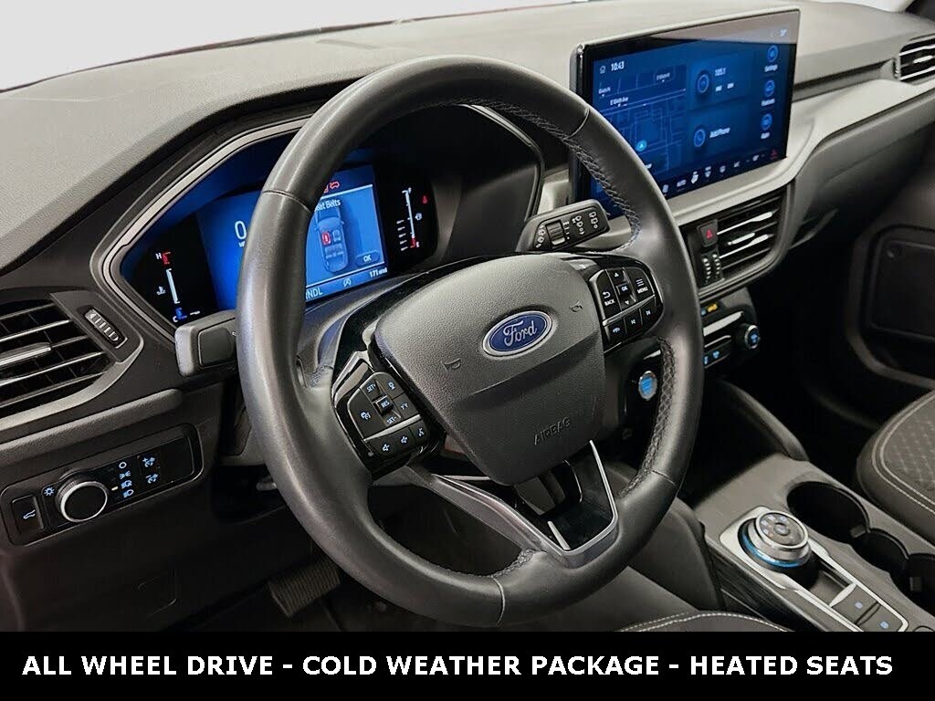 CARFAX One-Owner. Clean CARFAX. ** Apple CarPlay/Android Auto, ** Alloy Wheels / Premium Wheels, ** Heated Seats, ** Bluetooth, Hands Free, ** Brake Assist, ** Camera Backup, ** Chrome Wheels / Premium Wheels / Custome Whwels, ** Cruise Control, ** Heated Steering Wheel, ** Keyless Entry, ** Lane Departure Warning, ** LED Headlights, ** Premium Sound System / Premium Audio, ** Roof Rack, ** Stability Control, ** Steering Wheel Controls, ** USB Port, ** Clean Carfax Accident Free History, ** One Owner, ** Power Drivers Seat, AWD, COLD WEATHER PACKAGE, ALL WHEEL DRIVE, Standard Features (Typical for Active AWD) Performance & Mechanicals 1.5L EcoBoost engine with auto startâstop 8âspeed automatic AllâWheel Drive Speedâsensing electric power steering Hill hold control & ABS brakes Webb Ford Comfort & Convenience Dualâzone automatic climate control Power liftgate Selectable drive modes Wireless Apple CarPlay® & Android AutoTM SYNC® 4 infotainment (8âinch touchscreen) FordPass Connect® with 4G LTE WiâFi hotspot SiriusXM® with 360L Wireless charging, Safety & Driver Assistance Ford CoâPilot360® suite, typically including: Automatic emergency braking Blindâspot monitoring Rear crossâtraffic alert Laneâkeeping assist Auto highâbeams Rearview camera Webb Ford Cold Weather Package (often optional) May include: Heated front seats Heated steering wheel Heated mirrors Remote start, Escape Active AWD, 4D Sport Utility, 1.5L EcoBoost, 8-Speed Automatic, AWD, Race Red, Ebony Cloth, Cold Weather Package, Equipment Group 200A.