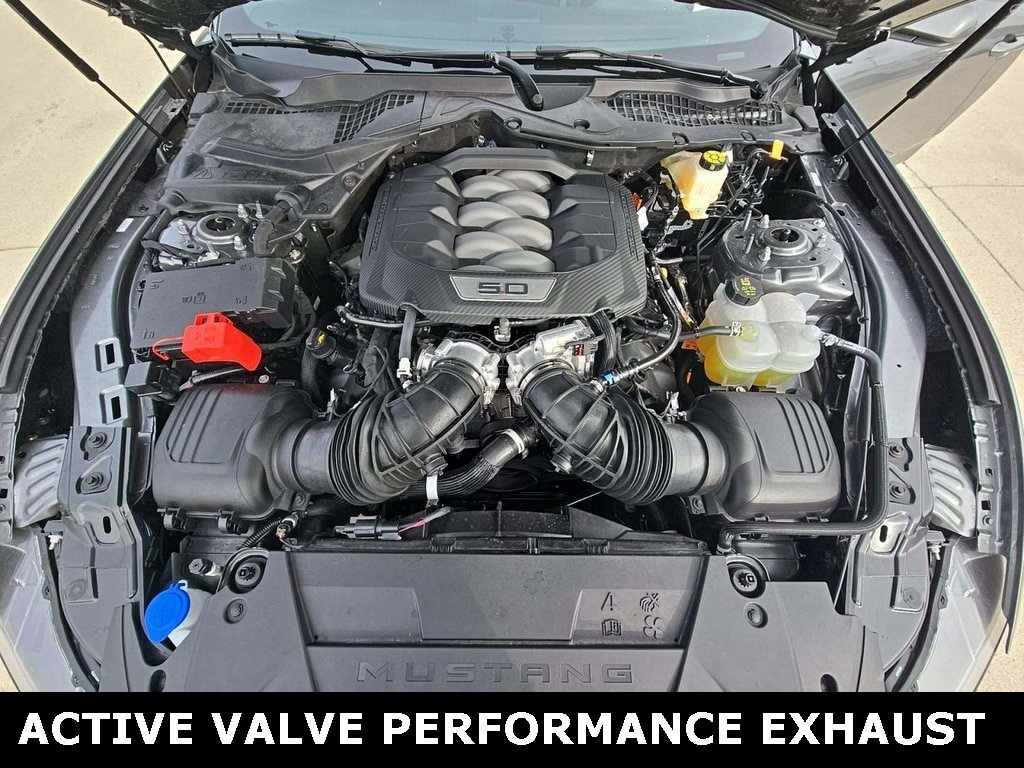 Clean CARFAX. Odometer is 3885 miles below market average! ** Apple CarPlay/Android Auto, ** Alloy Wheels / Premium Wheels, ** Bluetooth, Hands Free, ** Brake Assist, ** Camera Backup, ** Chrome Wheels / Premium Wheels / Custome Whwels, ** Cruise Control, ** Keyless Entry, ** LED Headlights, ** Premium Sound System / Premium Audio, ** Steering Wheel Controls, ** USB Port, ** Power Drivers Seat, ACTIVE VALVE EXHAUST, Engine & Powertrain Engine: 5.0 L Ti-VCT V8 naturally aspirated Coyote engine. https://www.ford.com/ Transmission: 6-speed manual transmission with rev matching. https://www.ford.com/ Rear Axle: 3.55 limited-slip rear axle (typical). https://www.ford.com/ Performance (with Active Valve Exhaust) Horsepower: ~486 hp @ ~7,250 rpm Torque: ~418 lb-ft @ ~4,900 rpm These figures reflect the output when the Active Valve Exhaust option is equipped and running on 93-octane fuel. https://www.ford.com/, The Active Valve Exhaust is an electronically controlled exhaust system that lets you change how the Mustang sounds and flows exhaust gases. Ford-Trucks.com +1 ð" How It Works The system uses motorized valves in the exhaust that open and close based on throttle input, drive modes, or settings you choose in the carâs infotainment menu. Ford-Trucks.com When closed or lightly opened, the exhaust runs quieter and more restricted. When opened fully (especially under heavy throttle or track settings), the exhaust is free-flowing, louder, and more aggressive. Ford-Trucks.com, Mustang GT 5.0L V8, 2D Coupe, 5.0L V8 Ti-VCT, RWD, Carbonized Gray Metallic, 9-Speaker Stereo System, Ambient Lighting w/MyColor, Cloth/Vinyl Heated Bucket Seats, Equipment Group 301A High Package, SiriusXM w/360L & HD Radio.