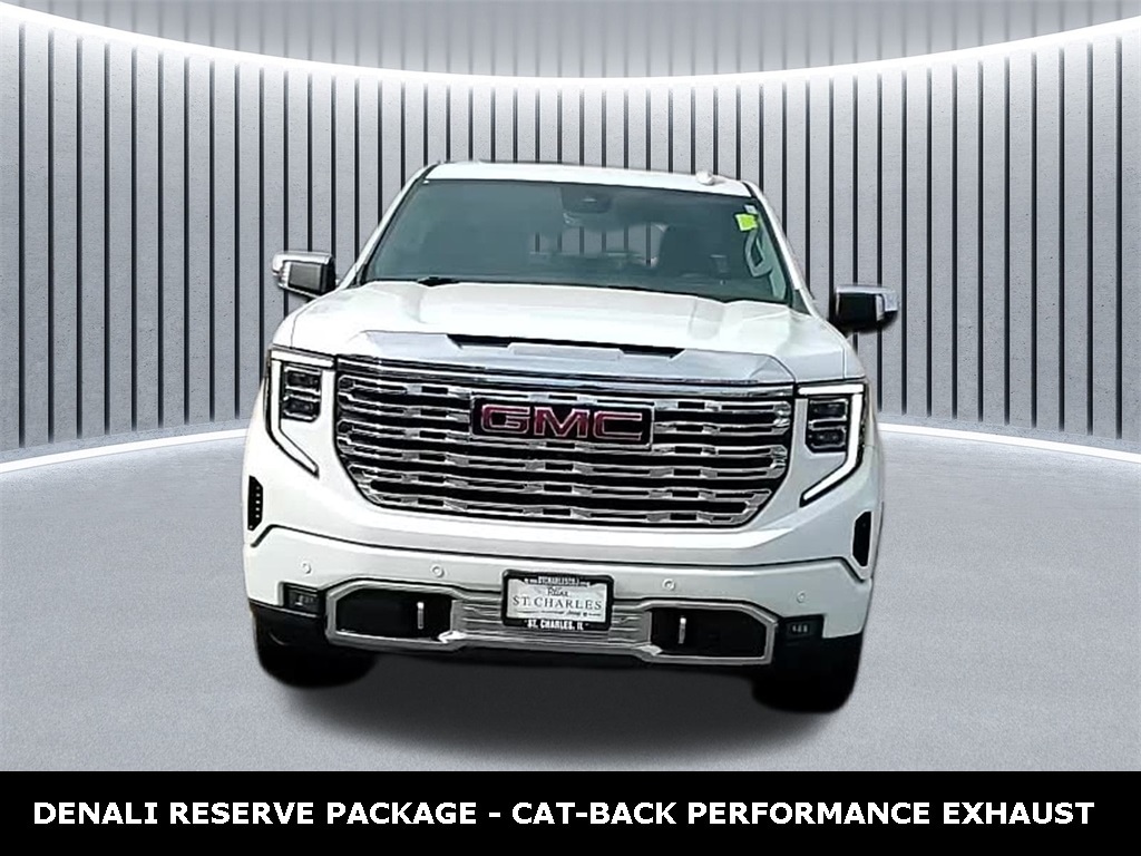 Clean CARFAX. Odometer is 4577 miles below market average! ** Clean Carfax 1-Owner Accident Free History, ** Apple CarPlay/Android Auto, ** Adaptive Cruise Control, ** Blind Spot Monitor, ** Cross Traffic Alert, ** Alloy Wheels / Premium Wheels, ** Heated Seats, ** Cooled Seats, ** Bluetooth, Hands Free, ** Brake Assist, ** Camera Backup, ** Chrome Wheels / Premium Wheels / Custome Whwels, ** Cruise Control, ** Head-Up Display, ** Heated Steering Wheel, ** Keyless Entry, ** Lane Departure Warning, ** Leather Seats, ** LED Headlights, ** Navigation System, ** Premium Sound System / Premium Audio, ** Stability Control, ** Steering Wheel Controls, ** Sunroof/Moonroof, ** Tow Hitch / Trailer Hitch, ** USB Port, ** Clean Carfax Accident Free History, ** Power Drivers Seat, CAT-BACK PERFORMANCE EXHAUST, MULTICOLOR 15" DIAGONAL, 22" PAINTED ALUMINUM WHEELS, Key Features Included in the Reserve Package Priced around $5,130â"$6,310 MSRP, the Denali Reserve Package bundles several upscale features Cars.com +1 Group 1 Auto : Technology Package: Adds advanced convenience features like a Rear Camera Mirror and 15âinch multicolor Head-Up Display Cars.com +1 . Driver Alert Package II: Includes Forward Collision Alert, Lane Keep Assist / Lane Departure Warning, Automatic Emergency Braking, Front Pedestrian Braking, IntelliBeam auto high-beams, Adaptive Cruise Control, and Following Distance Indicator Cars.com . Power Sunroof (CF5) Cars.com +1 . GMC MultiPro Power Steps for ease of entry/exit (BRS) Cars.com wilsoncountymotors.com . 22âinch Multi-Dimensional Polished Aluminum Wheels, Beyond the Reserve Package, the Denali trim includes a host of premium standard items: Denali Premium Suspension with Adaptive Ride Control. Wireless charging, ventilated front seats, heated rear outboard seats (depending on build date) GMC of Rochester . Authentic open-pore wood trim, forge perforated leather upholstery GMC of Rochester . HD Surround Vision, bed-view camera, Bose® premium audio GMC of Rochester . Trailering technologies, blind-zone alert, and safety alert seat, Sierra 1500 Denali RESERVE PACKAGE, 4D Crew Cab, EcoTec3 6.2L V8, 10-Speed Automatic, 4WD, White Frost Tricoat, Black Leather, 120-Volt Instrument Panel Power Outlet, 170 Amp Alternator, 2 Charge/Data USB Ports Inside Center Console, 2 Type-C Charge-Only Rear USB Ports, 2 USB Ports, Adaptive Cruise Control, Auto-Locking Rear Differential, Automatic Emergency Braking, Auxiliary External Transmission Oil Cooler, Bed View Camera, Chrome Header w/Signature Denali Chrome Grille, Chrome Recovery Hooks, Chrome Wheel To Wheel Assist Steps, Color-Keyed Carpeting Floor Covering, Compass, Deep-Tinted Glass, Denali Reserve Package, Electric Rear-Window Defogger, Electrical Steering Column Lock, Floor-Mounted Center Console, Front Rainsensing Wipers, GMC Connected Access Capable, GMC MultiPro Power Steps, HD Surround Vision, Heated 2nd Row Outboard Seats, Heated Driver & Front Outboard Passenger Seating, Heated Steering Wheel, Heavy-Duty Air Filter, Hill Descent Control, Hitch Guidance, Hitch Guidance w/Hitch View, In-Vehicle Trailering App, Integrated Trailer Brake Controller, Keyless Open & Start, LED Cargo Area Lighting, Multicolor 15" Diagonal Head-Up Display, Navigation System, OnStar & GMC Connected Services Capable, Perimeter Lighting, Power Door Locks, Power Front Passenger Windows w/Express Up/Down, Power Front Windows w/Driver Express Up/Down, Power Rake & Telescoping Steering Column, Power Rear Windows w/Express Down, Power Sliding Rear Window w/Rear Defogger, Power Sunroof, Preferred Equipment Group 5SA, Premium Bose 7-Speaker Sound System, Push Button Start, Rear Camera Mirror, Rear Cross Traffic Braking, Rear Pedestrian Detection, Rear Wheelhouse Liners, Remote Vehicle Starter System, SiriusXM w/360L, Spray-On Pickup Bed Liner w/Denali Logo, Steering Wheel Audio Controls, Technology Package, Theft Deterrent System (Unauthorized Entry), Trailer Camera Provisions, Trailer Side Blind Zo