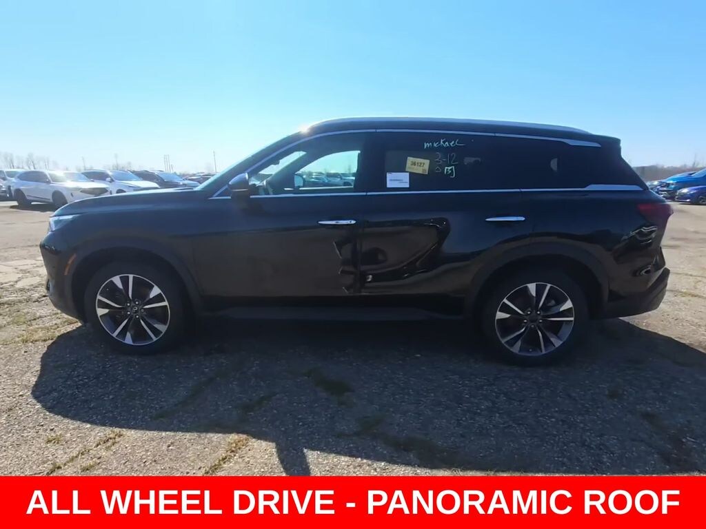 Clean CARFAX. Odometer is 7854 miles below market average! ** Apple CarPlay/Android Auto, ** Adaptive Cruise Control, ** Blind Spot Monitor, ** Cross Traffic Alert, ** Alloy Wheels / Premium Wheels, ** Heated Seats, ** Bluetooth, Hands Free, ** Brake Assist, ** Camera Backup, ** Chrome Wheels / Premium Wheels / Custome Whwels, ** Cruise Control, ** Heated Steering Wheel, ** Keyless Entry, ** Lane Departure Warning, ** Leather Seats, ** LED Headlights, ** Navigation System, ** Power Panoramic (Pano) Sunroof / Moonroof, ** Premium Sound System / Premium Audio, ** Roof Rack, ** Stability Control, ** Steering Wheel Controls, ** Sunroof/Moonroof, ** Third Row Seating / 3rd Row Seating, ** USB Port, ** Clean Carfax Accident Free History, ** Power Drivers Seat, ** Power Passenger Seat, AWD, ALL WHEEL DRIVE, PANORAMIC MOONROOF, NAVIGATION W/ DETAILED REAL-TIME PREMIUM TRAFFIC, Performance / drivetrain Engine: 3.5L V6 Power: 295 hp / 270 lb-ft Transmission: 9-speed automatic (big upgrade over old CVT) Drivetrain: Intelligent AWD 0â"60 mph: ~7.0â"7.3 sec MPG: ~20 city / 25 highway (AWD) ð' Translation: Smooth, solid powerâ"but not fast. Built for comfort, not speed. ð LUXE trim (sweet spot) The LUXE is where the QX60 really starts to feel premium: Leather-appointed seats Heated front seats + power adjustments 12.3" digital display + navigation Around View Monitor (360° camera) ProPILOT Assist (adaptive cruise + lane assist) Remote start + more driver tech ð' This trim is the best valueâ"big jump over base without crazy price., QX60 LUXE AWD, 4D Sport Utility, 3.5L V6, 9-Speed Automatic, AWD, Mineral Black, Graphite w/Leather-Appointed Seating Surfaces, Navigation System, Navigation system: INFINITI InTouch Navigation.