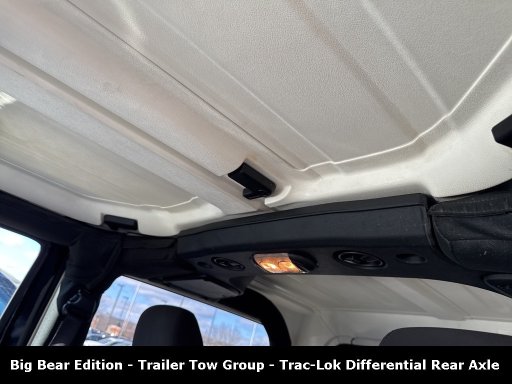 CARFAX One-Owner. Clean CARFAX. Odometer is 22455 miles below market average! ** Clean Carfax 1-Owner Accident Free History, ** Alloy Wheels / Premium Wheels, ** Bluetooth, Hands Free, ** Brake Assist, ** Chrome Wheels / Premium Wheels / Custome Whwels, ** Cruise Control, ** Keyless Entry, ** LED Headlights, ** Premium Sound System / Premium Audio, ** Stability Control, ** Steering Wheel Controls, ** USB Port, ** Clean Carfax Accident Free History, ** One Owner, 4WD, 4X4, 3.6-Liter V6 24-Valve VVT Engine, LED Lighting Group, Freedom Top® Black 3-Piece Hard Top, Power Windows with Front One-Touch-Down Feature, What 2017 Wrangler Big Bear offers Engine / performance: comes with a 3.6 L V6 (285 hp, 260 lb-ft torque). CarGurus +2 CarMax +2 Drivetrain / transmission: 4-wheel drive (4WD) and â" if configured as you specified â" a 5-speed automatic transmission (W5A580). Edmunds +2 Modern Ford of Boone +2 Exterior / wheels / off-road ready bits (on many Big Bear builds): 17" x 7.5" semi-gloss aluminum wheels, all-terrain tires, rock rails, possibly BF Goodrich all-terrain tires depending on the listing. Modern Ford of Boone +2 Courtesy Toyota +2 Convenience / comfort features (depending on build/options): power windows & locks, power/heated mirrors, remote keyless entry, alloy wheels, cloth sport-mesh seats (Sedoso), air conditioning, optional hardtop or soft top, and availability of upgraded audio or convenience packages. CarMax +2 Courtesy Toyota +2 Utility: 4-seat configuration (in standard 2-door variant), with reasonable off-road and 4WD capability, and towing/hauling capacity typical of a compact SUV. CarGurus +1 In short: the Big Bear trim can deliver a useful balance of everyday usability + off-r, Wrangler Big Bear 4WD, 2D Sport Utility, 3.6L V6 24V VVT, 5-Speed Automatic, 4WD, Black Clearcoat, Black Cloth, 115V Auxiliary Power Outlet, Air Conditioning, Auto-Dimming Mirror w/Reading Lamp, BF Goodrich Brand Tires, Big Bear Package, Black/Chrome Screws Fuel Filler Door, Class II Receiver Hitch, Cloth Sport Mesh Sedoso Seats (DISC), Connectivity Group, Deep Tint Sunscreen Windows, Front 1-Touch Down Power Windows, Granite Crystal Jeep Badge, Heavy Duty Suspension w/Gas Shocks (DISC), Iron Gray Interior Accents, Jeep Trail Rated Kit, LED Fog Lamps, LED Lighting Group, LED Reflector Headlamps, Low Gloss Black Grille, Low Gloss Black Wrangler Decal, Mid Gloss Granite Crystal Appliques, MOPAR Black Tail Lamp Guards, MOPAR Coat Hooks & Grab Handles, MOPAR Slush Mats, Power Convenience Group, Power Heated Mirrors, Power Locks, Premium Black Sunrider Soft Top, Quick Order Package 24Q Big Bear (DISC), R1234YF A/C Refrigerant, Remote Keyless Entry, Remote USB Port, Security Alarm, SIRIUS Satellite Radio, Tire Pressure Monitoring Display, Topographical Hood Decal, Trailer Tow Group, Trailer Tow w/4-Pin Connector Wiring, Uconnect Voice Command w/Bluetooth, Vehicle Information Center, Wheels: 17" x 7.5" Blk Semi-Gloss Aluminum (DISC), Wrangler Hood Decal Low Gloss Black.
