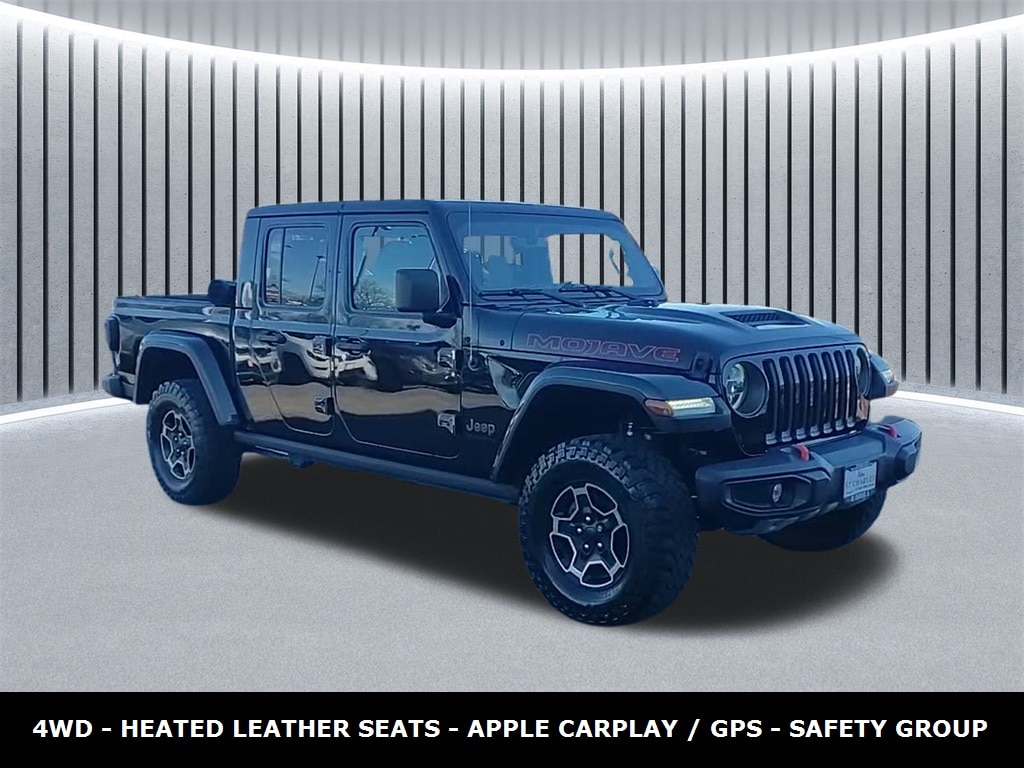 Clean CARFAX. Odometer is 4653 miles below market average! ** Apple CarPlay/Android Auto, ** Blind Spot Monitor, ** Cross Traffic Alert, ** Alloy Wheels / Premium Wheels, ** Heated Seats, ** Bluetooth, Hands Free, ** Brake Assist, ** Camera Backup, ** Chrome Wheels / Premium Wheels / Custome Whwels, ** Cruise Control, ** Heated Steering Wheel, ** Keyless Entry, ** Leather Seats, ** LED Headlights, ** Navigation System, ** Premium Sound System / Premium Audio, ** Stability Control, ** Steering Wheel Controls, ** Tow Hitch / Trailer Hitch, ** USB Port, ** Clean Carfax Accident Free History, 2021 Jeep Gladiator Mojave â" 3.6 V6 8-Speed Automatic ð"§ Powertrain & Performance Engine: 3.6 L Pentastar® V6 285 hp @ 6,400 rpm 260 lb-ft torque @ 4,400 rpm Standard engine across all Gladiator trims. Stellantis Fleet Transmission: 8-speed automatic (850RE) â" available option (instead of the base 6-speed manual) and common on Gladiator Mojave models listed for sale. Irvine Auto Center +1 Drivetrain: Four-wheel drive (Command-Trac part-time 4WD; some examples have the Selec-Trac full-time system), Gladiator Mojave 4WD, 4D Crew Cab, 3.6L V6 24V VVT, 8-Speed Automatic, 4WD, Black Clearcoat, Global Black/Steel Gray w/Leather-Trimmed Bucket Seats, 1-Year SiriusXM Guardian Trial, 5-Year SiriusXM Traffic Service, 5-Year SiriusXM Travel Link Service, 8.4" Radio & Premium Audio Group, 8.4" Touchscreen Display, Advanced Brake Assist, Advanced Safety Group, Alpine Premium Audio System, Auto High Beam Headlamp Control, Auto-Dimming Rear-View Mirror, Blind Spot & Cross Path Detection, Cold Weather Group, Emergency/Assistance Call, For Details, Visit DriveUconnect.com, Full Speed Forward Collision Warning Plus, GPS Navigation, HD Radio, Heated Front Seats, Heated Steering Wheel, Navigation System, ParkSense Rear Park Assist System, Quick Order Package 24D, Radio: Uconnect 4C Nav w/8.4" Display, Safety Group, SiriusXM Traffic Plus, SiriusXM Travel Link.