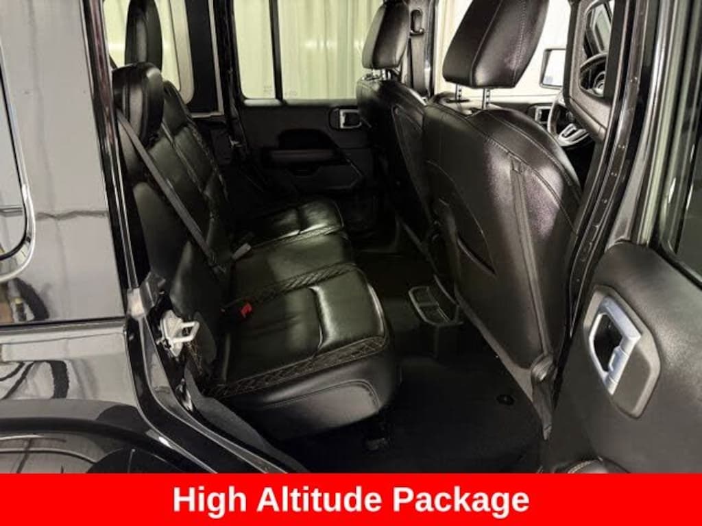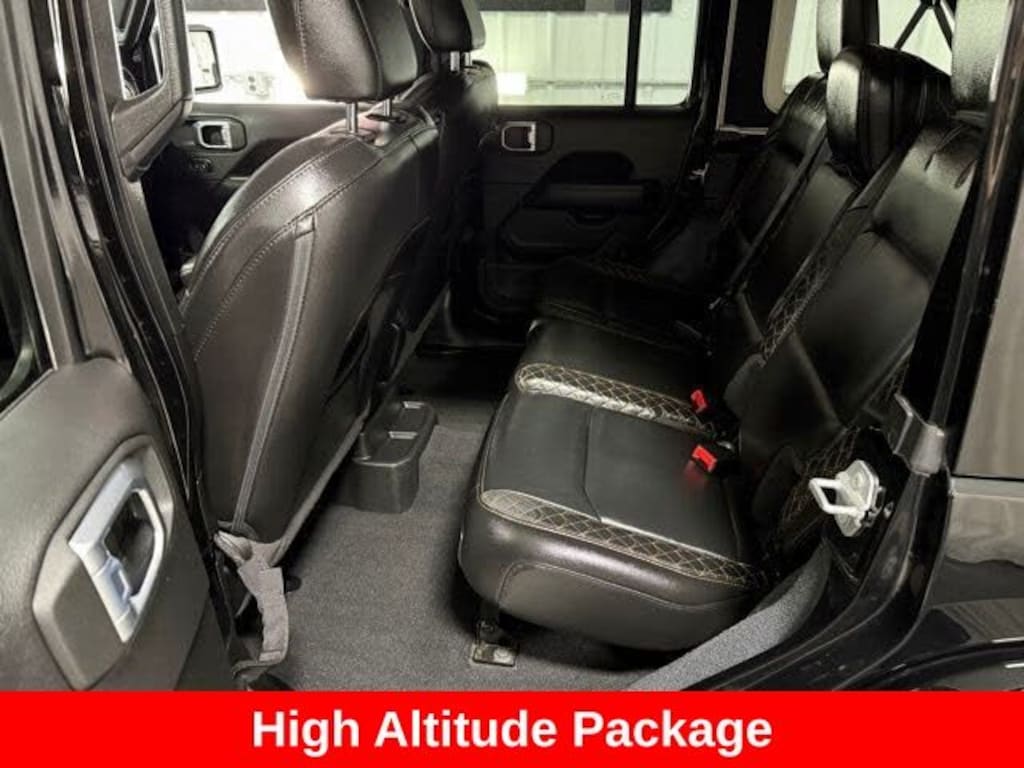 Clean CARFAX. ** Apple CarPlay/Android Auto, ** Adaptive Cruise Control, ** Blind Spot Monitor, ** Cross Traffic Alert, ** Alloy Wheels / Premium Wheels, ** Heated Seats, ** Bluetooth, Hands Free, ** Brake Assist, ** Camera Backup, ** Chrome Wheels / Premium Wheels / Custome Whwels, ** Cruise Control, ** Heated Steering Wheel, ** Keyless Entry, ** Lane Departure Warning, ** Leather Seats, ** LED Headlights, ** Navigation System, ** Premium Sound System / Premium Audio, ** Stability Control, ** Steering Wheel Controls, ** USB Port, ** Clean Carfax Accident Free History, High Altitude Package, 3.6L Pentastar VVT V6 engine with eTorque, Uconnect 4C NAV with 8.4â"inch display, Alpine premium audio system, Leatherâ"faced bucket seats, Engine: 3.6 L V6 Horsepower: ~285 hp Torque: ~260 lbâft Transmission: 8âspeed automatic Drivetrain: Partâtime 4WD EPA Combined Fuel Economy: ~21â"22 mpg (21/24 cityâhwy) Seating: 5 passengers Cargo: ~31.7 cu ft behind rear seats, up to ~72+ cu ft with seats folded ð' The High Altitude is essentially the âpremium appearance and convenienceâorientedâ trim within the Unlimited Wrangler lineup â" more upscale than the basic Sport but not as hardcore as a Rubicon. ð What the High Altitude Package Adds Compared with lower trims (Sport, Sport S, Willys, etc.), the High Altitude typically includes: Exterior Enhancements Distinctive bodyâcolored hardtop and body accents Gloss finish wheels (often 20â²â²) Altitude badging and upscale exterior trim, Wrangler Unlimited Sahara High Altitude 3.6L Pentastar, 4D Sport Utility, 3.6L V6 24V VVT, 8-Speed Automatic, 4WD, Black Clearcoat, Black Leather, ABS brakes, Alloy wheels, Compass, Electronic Stability Control, Front dual zone A/C, Heated door mirrors, Illuminated entry, Low tire pressure warning, Navigation System, ParkView Rear Back-Up Camera, Remote keyless entry, Traction control.