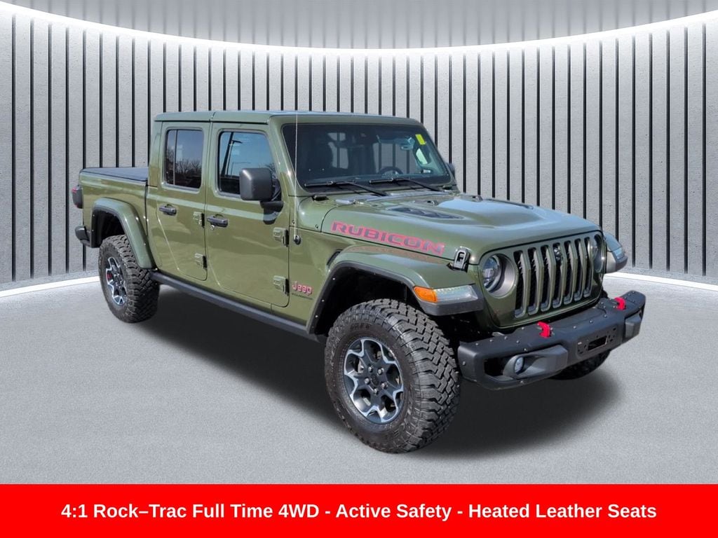 CARFAX One-Owner. Clean CARFAX. Odometer is 14011 miles below market average! ** Clean Carfax 1-Owner Accident Free History, ** Apple CarPlay/Android Auto, ** Adaptive Cruise Control, ** Blind Spot Monitor, ** Cross Traffic Alert, ** Alloy Wheels / Premium Wheels, ** Heated Seats, ** Bluetooth, Hands Free, ** Brake Assist, ** Camera Backup, ** Chrome Wheels / Premium Wheels / Custome Whwels, ** Cruise Control, ** Heated Steering Wheel, ** Keyless Entry, ** Leather Seats, ** Navigation System, ** Premium Sound System / Premium Audio, ** Stability Control, ** Steering Wheel Controls, ** USB Port, ** Clean Carfax Accident Free History, ** One Owner, 4WD, 4X4, Sprayâ"In Bedliner by Mopar®, ð» RubiconâSpecific OffâRoad Features The Rubicon trim is where the Gladiatorâs capability is dialed up significantly: ðï¸ 4Ã4 Hardware RockâTrac® 4WD system with a 4:1 lowârange gear ratio (excellent crawl ratio) Front and rear TruâLok® electronic locking differentials for maximum traction Electronic front swayâbar disconnect, improving wheel articulation over rough terrain ð"ï¸ Suspension & Tires Heavyâduty suspension tuned for offâroad challenges Typically equipped with 17âinch wheels and 33âinch allâterrain tires These upgrades make the Rubicon one of the most trailâcapable midsize pickups you can buy straight from the factory. ð§° Capability & Performance Ground Clearance: Up to approximately 11.1 inches, helping clear obstacles on the trail. Towing & Payload: Tow ratings vary by configuration, with the Gladiator line capable of towing up to ~7,700 lb when properly equipped (higher with certain packages). Fuel Economy: About 16 mpg city / 23 mpg highway with the 3.6 V6 and automatic transmission. These numbers are respectable for a bodyâonâframe, 4WD pickup with serious capability., Bodyâ"Color Freedom Top® 3â"Piece Hard Top, 17â"Inch x 7.5â"Inch Machined / Painted Black Wheels, 4:1 Rockâ"Trac® Full Time 4WD System, 240 Amp Alternator, Advanced Brake Assist, Advanced Safety Group, Auto High Beam Headlamp Control, Auxiliary Switch Group, Auxiliary Switches, Blind Spot & Cross Path Detection, Body Color 3-Piece Hard Top, Class IV Receiver Hitch, Daytime Running Lamps LED Accents, Exterior 115V AC Outlet, Freedom Panel Storage Bag, Front LED Fog Lamps, Full Speed Forward Collision Warning Plus, Heavy-Duty Engine Cooling, LED Lighting Group, LED Park Turn Lamps, LED Premium Reflector Headlamps, LED Taillamps, Lockable Rear Underseat Storage, Navigation System, No Soft Top, ParkSense Rear Park Assist System, Quick Order Package 24R Rubicon, Rear Sliding Window, Rear Window Defroster, Safety Group, Trail Rail Management System, Trailer Hitch Zoom, Trailer Tow Package.