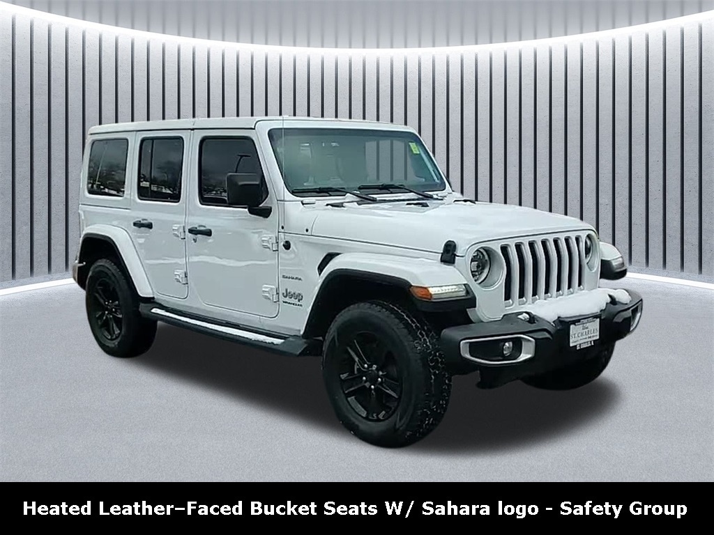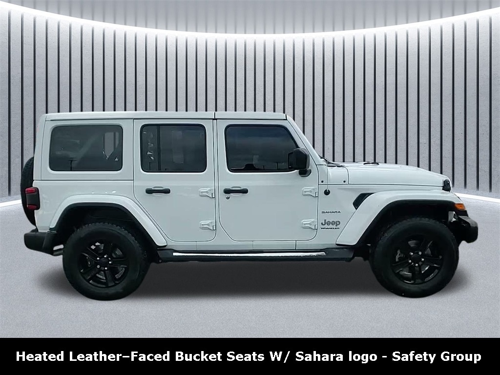 CARFAX One-Owner. Clean CARFAX. ** Apple CarPlay/Android Auto, ** Blind Spot Monitor, ** Cross Traffic Alert, ** Alloy Wheels / Premium Wheels, ** Heated Seats, ** Bluetooth, Hands Free, ** Brake Assist, ** Camera Backup, ** Chrome Wheels / Premium Wheels / Custome Whwels, ** Cruise Control, ** Heated Steering Wheel, ** Keyless Entry, ** Lane Departure Warning, ** Leather Seats, ** LED Headlights, ** Navigation System, ** Premium Sound System / Premium Audio, ** Stability Control, ** Steering Wheel Controls, ** USB Port, ** Clean Carfax Accident Free History, 4WD, 4X4, Bodyâ"colour Freedom Top 3â"piece modular hardtop, Leatherâ"faced bucket seats with Sahara logo, Uconnect 4C NAV with 8.4â"inch display, Alpine premium audio system, 2023 Jeep Wrangler Unlimited Sahara 4-Door 4Ã4 (2.0 L Turbo) ð"§ Engine & Performance Engine: 2.0 L I-4 DOHC direct-injection turbocharged with ESS (Engine Stop/Start) arrivendriveusa.com +1 Horsepower & Torque: Approximately 270 hp and 295 lb-ft (typical for this engine) Stellantis Fleet Transmission: 8-speed automatic (850RE) snethkampchryslerjeep.net Drivetrain: Part-time 4Ã4 with manual transfer case; Selec-Speed Control available arrivendriveusa.com Rear Axle Ratio: ~3.45 overall arrivendriveusa.com ð Capability 4Ã4 System: Traditional part-time 4WD with high/low range arrivendriveusa.com Suspension: Heavy duty with gas shocks arrivendriveusa.com Skid Plates: Includes underbody protection arrivendriveusa.com Trailer Tow Equipment: Tow sway control and hitch points arrivendriveusa.com GVWR: About 5,500 lbs arrivendriveusa.com Fuel Tank: ~21.5 gal (81.4 L), Wrangler Altitude 4WD, 4D Sport Utility, 2.0L I4 DOHC, 8-Speed Automatic, 4WD, Bright White Clearcoat, Black w/Leather Trimmed Bucket Seats, ABS brakes, Alloy wheels, Altitude Package, Cold Weather Group, Compass, Daytime Running Lamps LED Accents, Electronic Stability Control, Front dual zone A/C, Front LED Fog Lamps, Heated door mirrors, Heated Front Seats, Heated Steering Wheel, Illuminated entry, LED Lighting Group, LED Premium Reflector Headlamps, LED Taillamps, Low tire pressure warning, Navigation System, ParkView Rear Back-Up Camera, Quick Order Package 22G Sahara, Remote keyless entry, Remote Start System, Traction control.