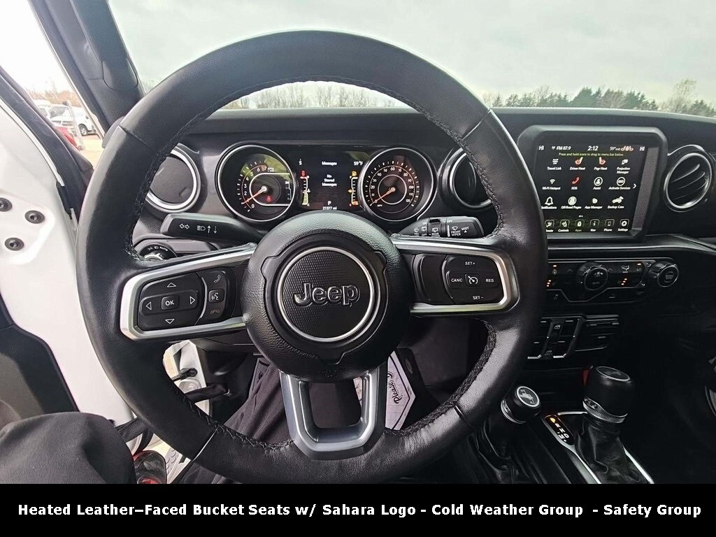CARFAX One-Owner. Clean CARFAX. Odometer is 3773 miles below market average! ** Apple CarPlay/Android Auto, ** Blind Spot Monitor, ** Cross Traffic Alert, ** Alloy Wheels / Premium Wheels, ** Heated Seats, ** Bluetooth, Hands Free, ** Brake Assist, ** Camera Backup, ** Chrome Wheels / Premium Wheels / Custome Whwels, ** Cruise Control, ** Heated Steering Wheel, ** Keyless Entry, ** Lane Departure Warning, ** Leather Seats, ** LED Headlights, ** Navigation System, ** Premium Sound System / Premium Audio, ** Stability Control, ** Steering Wheel Controls, ** USB Port, ** Clean Carfax Accident Free History, 4WD, 4X4, Bodyâ"colour Freedom Top 3â"piece modular hardtop, Leatherâ"faced bucket seats with Sahara logo, Uconnect 4C NAV with 8.4â"inch display, Alpine premium audio system, 2023 Jeep Wrangler Unlimited Sahara 4-Door 4Ã4 (2.0 L Turbo) ð"§ Engine & Performance Engine: 2.0 L I-4 DOHC direct-injection turbocharged with ESS (Engine Stop/Start) arrivendriveusa.com +1 Horsepower & Torque: Approximately 270 hp and 295 lb-ft (typical for this engine) Stellantis Fleet Transmission: 8-speed automatic (850RE) snethkampchryslerjeep.net Drivetrain: Part-time 4Ã4 with manual transfer case; Selec-Speed Control available arrivendriveusa.com Rear Axle Ratio: ~3.45 overall arrivendriveusa.com ð Capability 4Ã4 System: Traditional part-time 4WD with high/low range arrivendriveusa.com Suspension: Heavy duty with gas shocks arrivendriveusa.com Skid Plates: Includes underbody protection arrivendriveusa.com Trailer Tow Equipment: Tow sway control and hitch points arrivendriveusa.com GVWR: About 5,500 lbs arrivendriveusa.com Fuel Tank: ~21.5 gal (81.4 L), Wrangler Altitude 4WD, 4D Sport Utility, 2.0L I4 DOHC, 8-Speed Automatic, 4WD, Bright White Clearcoat, Black w/Leather Trimmed Bucket Seats, ABS brakes, Alloy wheels, Altitude Package, Cold Weather Group, Compass, Daytime Running Lamps LED Accents, Electronic Stability Control, Front dual zone A/C, Front LED Fog Lamps, Heated door mirrors, Heated Front Seats, Heated Steering Wheel, Illuminated entry, LED Lighting Group, LED Premium Reflector Headlamps, LED Taillamps, Low tire pressure warning, Navigation System, ParkView Rear Back-Up Camera, Quick Order Package 22G Sahara, Remote keyless entry, Remote Start System, Traction control.