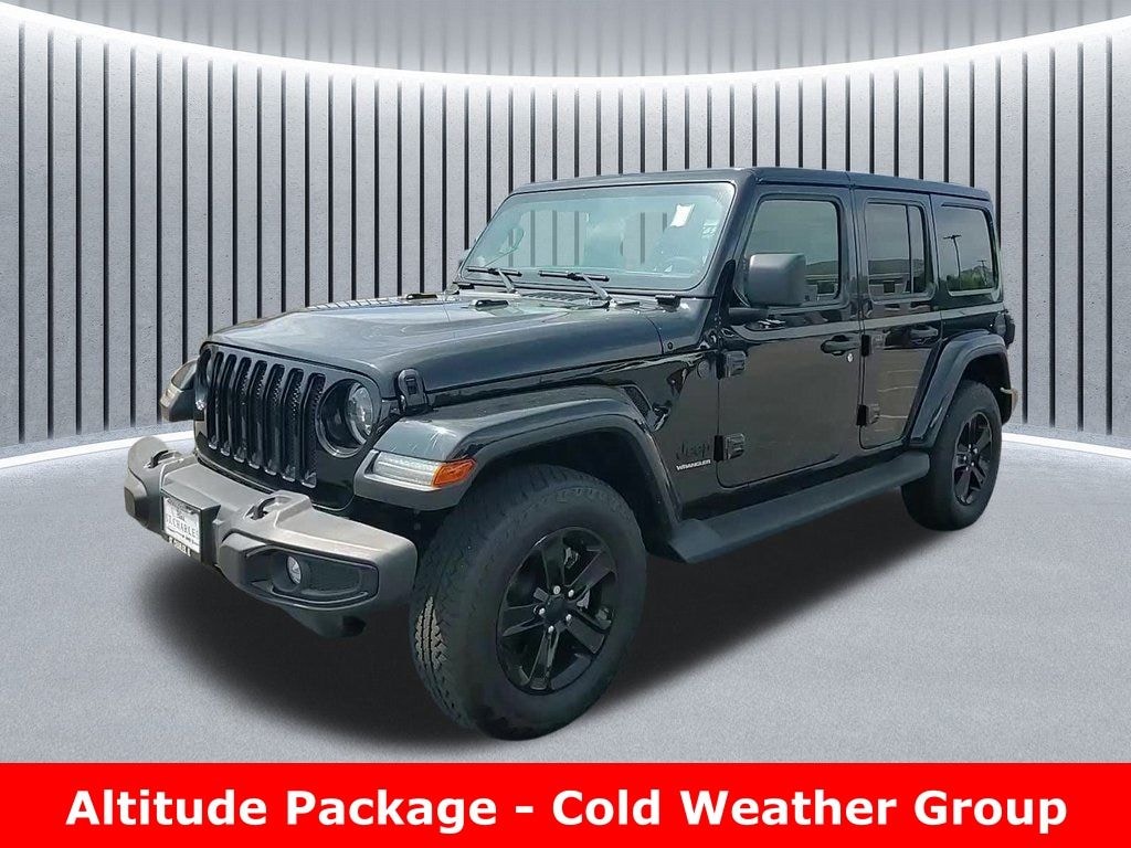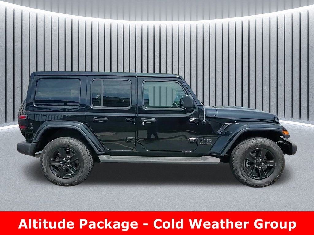 CARFAX One-Owner. Clean CARFAX. Odometer is 20623 miles below market average! ** Clean Carfax 1-Owner Accident Free History, ** Apple CarPlay/Android Auto, ** Blind Spot Monitor, ** Cross Traffic Alert, ** Alloy Wheels / Premium Wheels, ** Heated Seats, ** Bluetooth, Hands Free, ** Brake Assist, ** Camera Backup, ** Chrome Wheels / Premium Wheels / Custome Whwels, ** Cruise Control, ** Heated Steering Wheel, ** Keyless Entry, ** Leather Seats, ** LED Headlights, ** Premium Sound System / Premium Audio, ** Stability Control, ** Steering Wheel Controls, ** USB Port, ** Clean Carfax Accident Free History, ** One Owner, 4WD, 4X4, 3.6L Pentastar, 3.6L Pentastar VVT V6 engine with eTorque, Altitude Package, Leatherâ"faced bucket seats, Side steps with diamondâ"plate surface pattern, Engine & Performance Engine: 3.6 L Pentastar® V6 (gasoline) Horsepower: ~285 hp @ 6,400 rpm Torque: ~260 lb-ft @ 4,800 rpm Drive: Four-Wheel Drive (4WD) Transmission: Available 8-speed automatic or 6-speed manual (varies by build) Fuel Economy & Fuel Fuel Type: Regular unleaded EPA Estimated: Around 19 â" 22 MPG combined (depends on 4Ã4, tires, and weight) Design & Features (Altitude Package) The Altitude trim/package adds stylish and comfort-oriented upgrades over the base Sport trim, including: Gloss black exterior accents (wheels, grille, bumpers) 18â²â² gloss black aluminum wheels Body-color grille surround Deep-tint sunscreen windows Power windows and remote keyless entry Premium interior accents Often includes convenience features like power heated mirrors and heavy-duty suspension components, Wrangler Altitude 3.6L Pentastar, 4D Sport Utility, 3.6L V6 24V VVT, 8-Speed Automatic, 4WD, Black Clearcoat, Black w/Leather Trimmed Bucket Seats, #1 Seat Foam Cushion, 110 MPH Vehicle Max Speed Calibration, ABS brakes, Alloy wheels, Altitude Package, Black Interior Accents, Body Color 3-Piece Hard Top, Body Color Grille w/Gloss Black Rings, Bridgestone Brand Tires, Cold Weather Group, Compass, Daytime Running Lamps LED Accents, Electronic Stability Control, Front dual zone A/C, Front LED Fog Lamps, Gray/Black Trail Rated Badge, Heated door mirrors, Heated Front Seats, Heated Steering Wheel, Illuminated entry, Leather Trimmed Bucket Seats (GL), Leather Wrapped Park Brake Handle, Leather Wrapped Shift Knob, LED Lighting Group, LED Premium Reflector Headlamps, LED Taillamps, Low tire pressure warning, Matte Black Jeep Badge, Mold In Color Bumper w/Gloss Black, MOPAR Hardtop Headliner, Navigation System, ParkView Rear Back-Up Camera, Quick Order Package 25L Altitude, Remote keyless entry, Remote Start System, Traction control, Wheels: 18" x 7.5" Gloss Black Aluminum, Wizard Black Instrument Panel Bezels.