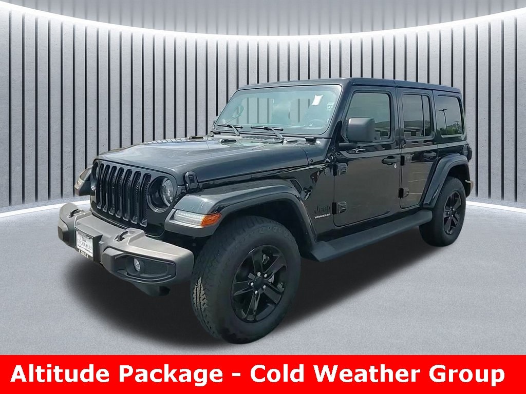 CARFAX One-Owner. Clean CARFAX. Odometer is 11364 miles below market average! ** Clean Carfax 1-Owner Accident Free History, ** Apple CarPlay/Android Auto, ** Blind Spot Monitor, ** Cross Traffic Alert, ** Alloy Wheels / Premium Wheels, ** Heated Seats, ** Bluetooth, Hands Free, ** Brake Assist, ** Camera Backup, ** Chrome Wheels / Premium Wheels / Custome Whwels, ** Cruise Control, ** Heated Steering Wheel, ** Keyless Entry, ** Leather Seats, ** LED Headlights, ** Premium Sound System / Premium Audio, ** Stability Control, ** Steering Wheel Controls, ** USB Port, ** Clean Carfax Accident Free History, ** One Owner, 4WD, 4X4, 3.6L Pentastar, 3.6L Pentastar VVT V6 engine with eTorque, Altitude Package, Leatherâ"faced bucket seats, Side steps with diamondâ"plate surface pattern, Engine & Performance Engine: 3.6 L Pentastar® V6 (gasoline) Horsepower: ~285 hp @ 6,400 rpm Torque: ~260 lb-ft @ 4,800 rpm Drive: Four-Wheel Drive (4WD) Transmission: Available 8-speed automatic or 6-speed manual (varies by build) Fuel Economy & Fuel Fuel Type: Regular unleaded EPA Estimated: Around 19 â" 22 MPG combined (depends on 4Ã4, tires, and weight) Design & Features (Altitude Package) The Altitude trim/package adds stylish and comfort-oriented upgrades over the base Sport trim, including: Gloss black exterior accents (wheels, grille, bumpers) 18â²â² gloss black aluminum wheels Body-color grille surround Deep-tint sunscreen windows Power windows and remote keyless entry Premium interior accents Often includes convenience features like power heated mirrors and heavy-duty suspension components, Wrangler Altitude 3.6L Pentastar, 4D Sport Utility, 3.6L V6 24V VVT, 8-Speed Automatic, 4WD, Black Clearcoat, Black w/Leather Trimmed Bucket Seats, #1 Seat Foam Cushion, 110 MPH Vehicle Max Speed Calibration, ABS brakes, Alloy wheels, Altitude Package, Black Interior Accents, Body Color 3-Piece Hard Top, Body Color Grille w/Gloss Black Rings, Bridgestone Brand Tires, Cold Weather Group, Compass, Daytime Running Lamps LED Accents, Electronic Stability Control, Front dual zone A/C, Front LED Fog Lamps, Gray/Black Trail Rated Badge, Heated door mirrors, Heated Front Seats, Heated Steering Wheel, Illuminated entry, Leather Trimmed Bucket Seats (GL), Leather Wrapped Park Brake Handle, Leather Wrapped Shift Knob, LED Lighting Group, LED Premium Reflector Headlamps, LED Taillamps, Low tire pressure warning, Matte Black Jeep Badge, Mold In Color Bumper w/Gloss Black, MOPAR Hardtop Headliner, Navigation System, ParkView Rear Back-Up Camera, Quick Order Package 25L Altitude, Remote keyless entry, Remote Start System, Traction control, Wheels: 18" x 7.5" Gloss Black Aluminum, Wizard Black Instrument Panel Bezels.