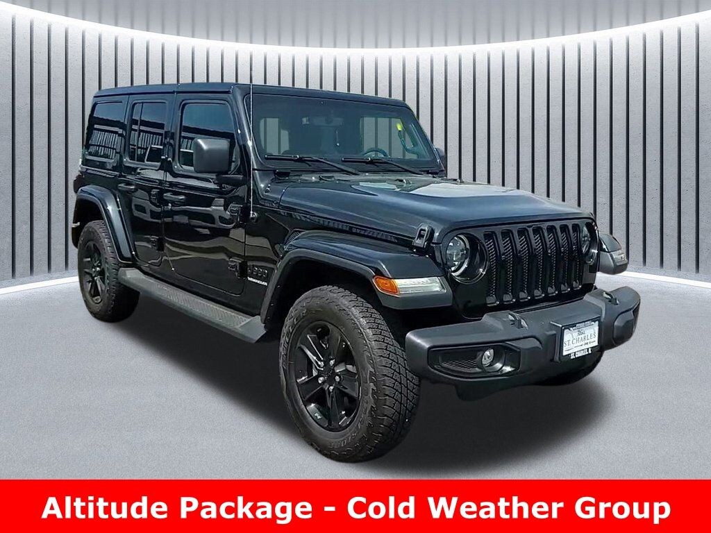Every Pre-driven vehicle has or is in the process of having all mechanical repairs and all required maintenance performed and completed prior to delivery. To provide you the peace of mind purchasing a pre-driven vehicle. Thatâs the St. Charles Guarantee. So relax and enjoy! Please call for availability. Black Clearcoat 2023 Jeep Wrangler 4D Sport Utility Altitude 3.6L Pentastar 3.6L V6 24V VVT 19/24 City/Highway MPG 8-Speed Automatic 4WD