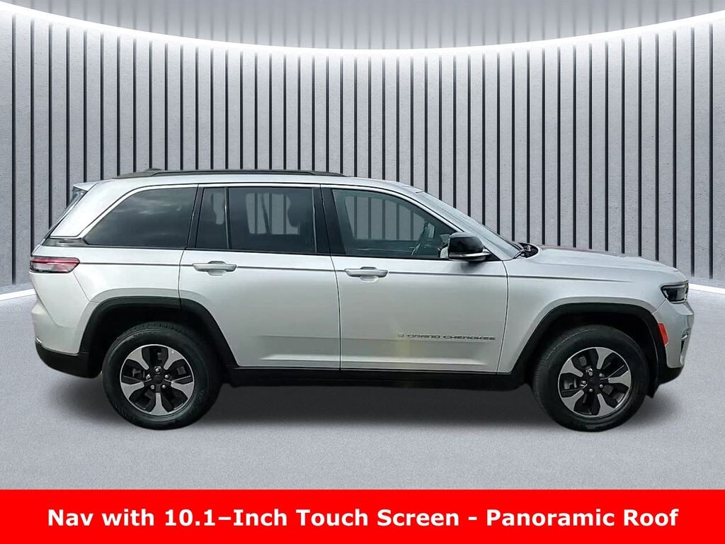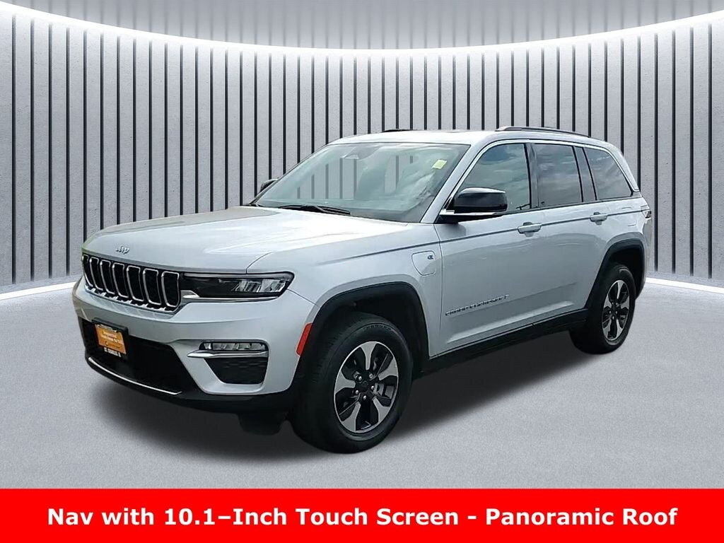 CARFAX One-Owner. Odometer is 2193 miles below market average! ** Apple CarPlay/Android Auto, ** Adaptive Cruise Control, ** Blind Spot Monitor, ** Cross Traffic Alert, ** Alloy Wheels / Premium Wheels, ** Heated Seats, ** Bluetooth, Hands Free, ** Brake Assist, ** Camera Backup, ** Chrome Wheels / Premium Wheels / Custome Whwels, ** Cruise Control, ** Heated Steering Wheel, ** Keyless Entry, ** Lane Departure Warning, ** Leather Seats, ** LED Headlights, ** Power Panoramic (Pano) Sunroof / Moonroof, ** Premium Sound System / Premium Audio, ** Roof Rack, ** Stability Control, ** Steering Wheel Controls, ** Sunroof/Moonroof, ** USB Port, ** Clean Carfax Accident Free History, ** Power Drivers Seat, Uconnect® 5 Nav with 10.1â"Inch Touch Screen Display, Heated Secondâ"Row Seats, Powertrain & Performance Engine: 2.0âL turbocharged 4âcylinder gas engine + two electric motors. Car and Driver +2 jeep +2 Battery pack: about 17.3 kWh gross (usable ~14 kWh) highâvoltage PHEV battery. Car and Driver +1 Total output: ~ 375 hp & 470 lbâft torque combined. U.S. News Cars +2 jeep +2 Electricâonly range (EPA): ~ 26 miles on a full charge. U.S. News Cars +2 Car and Driver +2 Combined total driving range (gas + electric): ~ 470 miles. jeep +2 Car and Driver +2 Fuel economy / MPGe: ~ 56 MPGe combined when combining electric + gas modes. U.S. News Cars +1 Gasâonly (after EV battery depleted) fuel economy: ~ 23 mpg combined. Edmunds +2 U.S. News Cars +2 0â60 mph time: about 5.3 seconds in strong trims., Capability & OffâRoad Drivetrain: 4WD (full time) system with transfer case, multiple terrain (Trail Rated credentials, etc.). New Cars +2 jeep +2 Towing capacity: up to 6,000 lbs when properly equipped. Car and Driver +1 Ground clearance etc depend on trim/options but Jeep retains good off-road hardware. Car and Driver +1 Features & Equipment Infotainment: Uconnect 5 system, 10.1âinch touchscreen standard. Wireless Apple CarPlay / Android Auto. Jack Powell +1 Comfort: heated front & secondârow seats on many trims. Leatherette / optional leather and upscale trims. Jack Powell +1 Safety & Driver Assist: blindâspot monitoring, adaptive cruise control with stop & go, forward collision warning, pedestrian detection, lane keeping, etc., Grand Cherokee 4xe Base Panoramic Roof, 4D Sport Utility, 2.0L I4 DOHC, 8-Speed Automatic, 4WD, Silver Zynith, Global Black w/Nappa Leather Seats or Palermo Leather Seats, Navigation System, Quick Order Package 27F.