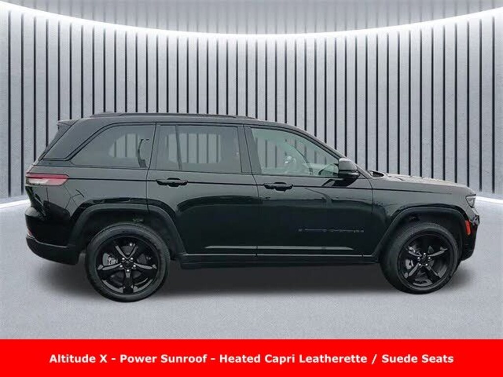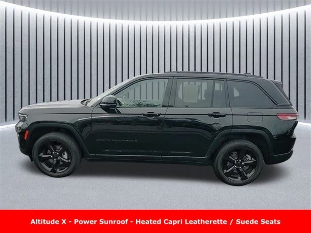 CARFAX One-Owner. Clean CARFAX. Odometer is 4822 miles below market average! ** Clean Carfax 1-Owner Accident Free History, ** Apple CarPlay/Android Auto, ** Adaptive Cruise Control, ** Blind Spot Monitor, ** Cross Traffic Alert, ** Alloy Wheels / Premium Wheels, ** Heated Seats, ** Bluetooth, Hands Free, ** Brake Assist, ** Camera Backup, ** Chrome Wheels / Premium Wheels / Custome Whwels, ** Cruise Control, ** Heated Steering Wheel, ** Keyless Entry, ** Lane Departure Warning, ** Leather Seats, ** LED Headlights, ** Premium Sound System / Premium Audio, ** Roof Rack, ** Stability Control, ** Steering Wheel Controls, ** Sunroof/Moonroof, ** USB Port, ** Clean Carfax Accident Free History, ** Power Drivers Seat, Altitude X, Altitude X, Uconnect® 5 with 8.4â"Inch Touch Screen Display, 18â"Inch x 8.0â"Inch Glossâ"Black Painted Alum Wheels, Capri Leatherette / Suede Seats, Model: 2024 Jeep Grand Cherokee Altitude X 4WD Body Style: 4-door midsize SUV Drive Type: Full-time Four-Wheel Drive (4WD) â" standard on this trim and meant for improved traction in various road conditions. Seating: 5 passengers (standard two-row) Engine: 3.6 L V6 gasoline engine Horsepower: ~293 hp Transmission: 8-speed automatic Fuel Economy (EPA est.): ~19 mpg city / 26 mpg highway Cargo Space: ~37.7 cu ft behind second row Towing Capacity: Up to ~6,200 lbs when properly equipped ð'¡ What âAltitude Xâ Means The Altitude X package is an enhanced version of the Altitude trim. Compared with the base Altitude trim, it mainly adds standard four-wheel drive and a sunroof, plus styling upgrades (like gloss-black exterior accents) â" making it slightly more rugged and better suited for varied weather and road conditions., Grand Cherokee Altitude X Power Sunroof, 4D Sport Utility, 3.6L V6 24V VVT, 8-Speed Automatic, 4WD, Diamond Black Crystal Pearlcoat, Global Black Artificial Leather, 115V Auxiliary Power Outlet, Altitude Appearance Package, Altitude Package, Altitude X, Black Headliner, Capri Leatherette/Suede Seats, Delete Laredo Badge, Gloss Black Exterior Accents, Heated Front Seats, Heated Steering Wheel, Power Liftgate, Power Sunroof, Quick Order Package 23M Altitude X, Rain Sensitive Windshield Wipers, Remote Start System, Selectable Tire Fill Alert, Wheels: 18" x 8" Fully Painted Aluminum 1, Wireless Charging Pad.