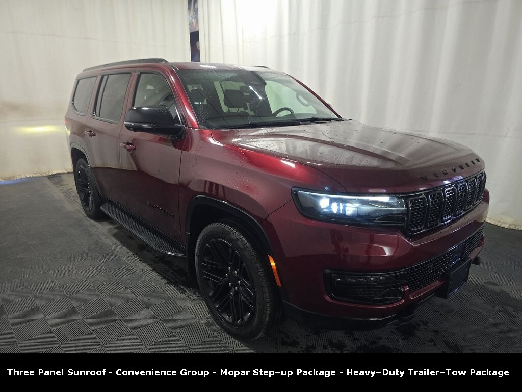 Clean CARFAX. Odometer is 5575 miles below market average! ** Clean Carfax 1-Owner Accident Free History, ** Apple CarPlay/Android Auto, ** Blind Spot Monitor, ** Cross Traffic Alert, ** Alloy Wheels / Premium Wheels, ** Heated Seats, ** Cooled Seats, ** Automatic Parking, ** Bluetooth, Hands Free, ** Brake Assist, ** Camera Backup, ** Chrome Wheels / Premium Wheels / Custome Whwels, ** Cruise Control, ** Head-Up Display, ** Heated Steering Wheel, ** Keyless Entry, ** Lane Departure Warning, ** Leather Seats, ** LED Headlights, ** WiFi Hotspot, ** Memory Seat, ** Navigation System, ** Power Panoramic (Pano) Sunroof / Moonroof, ** Premium Sound System / Premium Audio, ** Roof Rack, ** Stability Control, ** Steering Wheel Controls, ** Sunroof/Moonroof, ** Third Row Seating / 3rd Row Seating, ** Tow Hitch / Trailer Hitch, ** USB Port, ** Clean Carfax Accident Free History, ** Power Drivers Seat, ** Power Passenger Seat, ** Heated Rear Seats, 4wd, 4x4, Front ventilated seats, Carbide Appearance Package, Appearance & Style Upgrades Carbide includes black exterior accents (grille, badging, trim) and gloss-black/aluminum painted wheels (20â²â² standard; 22â²â² with optional upgrade). Stellantis Asset Library +2 Auto Catalog Archive +2 Piano-black exterior styling touches and black-interior accents help give the vehicle a more âstealthy / dark-themeâ look., Performance / Capability / Drivetrain Powered by a 3.0 L âHurricaneâ twin-turbo inline-6 engine (with Stop/Start) paired to an 8-speed automatic (8HP75). LHM Classic Jeep Albuquerque +2 Stellantis Fleet +2 Full-time 4WD (on 4x4 models). Edmunds +1 With optional suspension (air suspension / on some trims, if selected) â" you can get up to ~10 inches of ground clearance for increased off-road / rough-road capability. Stellantis Asset Library +1 For towing, the Wagoneer is often sold with a heavy-duty tow package, giving it respectable hauling capabilities (useful for trailers, boats, etc.). Scott Evans Chrysler Dodge Jeep Ram +2 Scott Evans Chrysler Dodge Jeep Ram +2 Interior / Comfort / Tech Interior has leather-trimmed seats, and âglobal blackâ interior is common for Carbide versions., Uconnect 5 NAV w/ 10.1â"inch display, Headâ"Up Displa, Headâ"Up Display, 3.92 rear axle ratio, Heavyâ"Duty Trailerâ"Tow Package, Mopar Stepâ"up Package, Three panel sunroof, Wagoneer Series II Carbide Appearance, 4D Sport Utility, 3.0L I6, 8-Speed Automatic, 4WD, Velvet Red Pearlcoat, Global Black w/Leather Trimmed Bucket Seats, 2 Speed On Demand Transfer Case, 2nd Row Manual Window Shades, 3 Panel Sunroof, 3.92 Rear Axle Ratio, Adjustable Roof Rail Crossbars, All-Season Floor Mats, Auto High Beam Headlamp Control, Black Interior Accents, Carbide Appearance Package, Cargo Cover, Cargo Tray, Convenience Group I, Drowsy Driver Detection, Electronic Rear Limited Slip Differential, HD Trailer Tow Package, Heads-Up Display, Heavy-Duty Engine Cooling, Intersection Collision Assist System, MOPAR Door Sill Guards, MOPAR Front Splash Guards, MOPAR Interior Protection Package, MOPAR Paint Protection Film, MOPAR Rear Splash Guards, MOPAR Step-Up Package, Navigation System, P&P Park & Unpark Assist w/Stop System, Piano Black Exterior Accents, Quick Order Package 25F Carbide, Removable Rear Tow Hook, Reversible Carpet/Vinyl Cargo Mat, Selec-Speed Control, Side Distance Warning, Surround View Camera System, Traffic Sign Recognition, Trailer Brake Control, Trailer Hitch Zoom, Wheels: 20" x 9" Gloss Black Painted Aluminum.