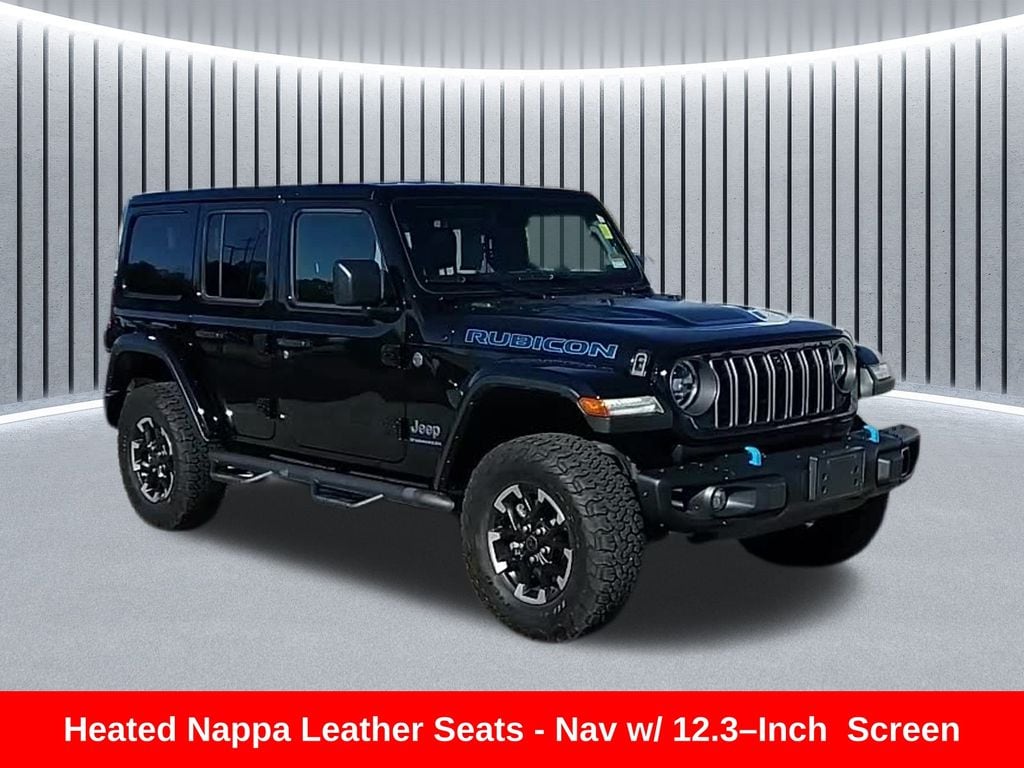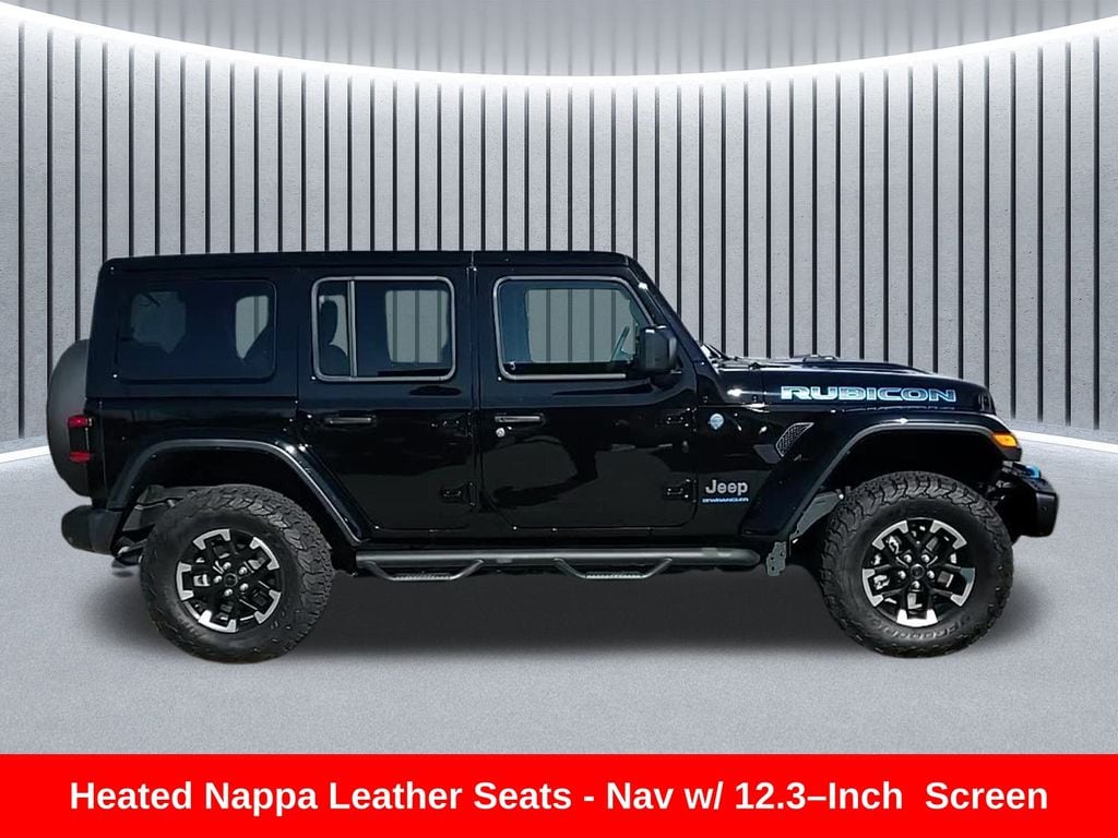CARFAX One-Owner. ** Apple CarPlay/Android Auto, ** Adaptive Cruise Control, ** Blind Spot Monitor, ** Cross Traffic Alert, ** Alloy Wheels / Premium Wheels, ** Heated Seats, ** Bluetooth, Hands Free, ** Brake Assist, ** Camera Backup, ** Chrome Wheels / Premium Wheels / Custome Whwels, ** Cruise Control, ** Heated Steering Wheel, ** Keyless Entry, ** Lane Departure Warning, ** Leather Seats, ** LED Headlights, ** Navigation System, ** Premium Sound System / Premium Audio, ** Stability Control, ** Steering Wheel Controls, ** USB Port, ** One Owner, ** Power Drivers Seat, 4X4, 4WD, Powertrain: 2.0L turbocharged 4-cyl + 2 electric motors (plug-in hybrid) Total power: 375 hp / 470 lb-ft torque Transmission: 8-speed automatic Drivetrain: Rock-Trac full-time 4Ã4 with locking diffs Electric range: about 21â"22 miles EV-only Efficiency: about 49 MPGe combined with battery, ~20 mpg on gas alone Charging time: ~2.4 hours with a Level-2 charger Towing capacity: ~3,500 lb ð» What Makes the Rubicon X Special The X package adds premium and off-road equipment on top of the standard Rubicon: Off-road features Rock-Trac 4:1 transfer case Front & rear locking differentials Electronic sway-bar disconnect Heavy-duty Dana 44 axles 33-inch all-terrain tires Luxury/tech upgrades Nappa leather seats 12-way power front seats 12.3-inch Uconnect touchscreen Alpine premium audio Integrated off-road camera Steel bumpers and body-color fender flares, Wrangler Rubicon X 4xe 4WD, 4D Sport Utility, 2.0L I4 DOHC, 8-Speed Automatic, 4WD, Black Clearcoat, Black Leather, 12.3" Touchscreen Display, 4G LTE Wi-Fi Hot Spot, Acoustic Front Seat Area Carpet, Acoustic Laminated Front Door Glass, Alpine Premium Audio System, Apple CarPlay, Auto High Beam Headlamp Control, Auto-Dimming Rear-View Mirror, Blind Spot & Cross Path Detection, Body Color 3-Piece Hard Top, Body Color Rubicon Highline Flare, Connected Travel & Traffic Services, Connectivity - US/Canada, Disassociated Touchscreen Display, Freedom Panel Storage Bag, Google Android Auto, GPS Navigation, HD Radio, Heated Front Seats, Heated Steering Wheel, Integrated Center Stack Radio, Integrated Off-Road Camera, Integrated Voice Command w/Bluetooth, MOPAR Hardtop Headliner, Nappa Leather Seats, Navigation System, No Soft Top, ParkSense Rear Park Assist System, Quick Order Package 29Y Rubicon X, Radio: Uconnect 5 Nav w/12.3" Display, Rear Window Defroster, Rear Window Wiper/Washer, Remote Start System, SiriusXM Radio Service, SiriusXM w/360L, Steel Front Bumper, Steel Rear Bumper, Trailer Tow Prep Package, Universal Garage Door Opener.