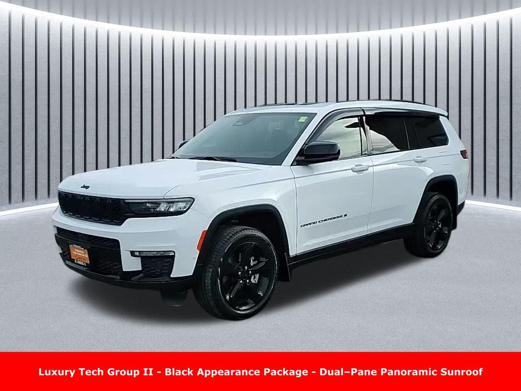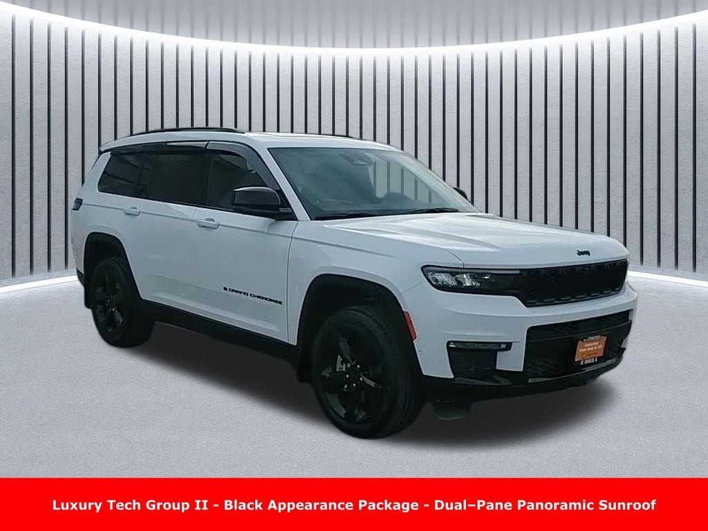 CARFAX One-Owner. Clean CARFAX. Odometer is 16609 miles below market average! ** Clean Carfax 1-Owner Accident Free History, ** Apple CarPlay/Android Auto, ** Adaptive Cruise Control, ** Blind Spot Monitor, ** Cross Traffic Alert, ** Alloy Wheels / Premium Wheels, ** Heated Seats, ** Cooled Seats, ** Bluetooth, Hands Free, ** Brake Assist, ** Camera Backup, ** Chrome Wheels / Premium Wheels / Custome Whwels, ** Cruise Control, ** Heated Steering Wheel, ** Keyless Entry, ** Lane Departure Warning, ** Leather Seats, ** LED Headlights, ** Navigation System, ** Power Panoramic (Pano) Sunroof / Moonroof, ** Premium Sound System / Premium Audio, ** Roof Rack, ** Stability Control, ** Steering Wheel Controls, ** Sunroof/Moonroof, ** Third Row Seating / 3rd Row Seating, ** USB Port, ** Clean Carfax Accident Free History, ** Power Drivers Seat, ** Power Passenger Seat, 4WD, 4X4, Black Appearance Package, 20â"inch x 8.5â"Inch Glossâ"Black Painted Alum Wheels, Capri Leatherette Axis II Seats, Ventilated Front Seats, Uconnect® 5 Nav with 10.1â"Inch Touch Screen Display, 2nd Row Buckets, Engine: 3.6-liter Pentastar V6, producing 293 hp and 260 lb-ft of torque stellantis-wn2025-assetlib.s3.amazonaws.com +1 Drivetrain & Transmission: Full-time 4-wheel drive (4WD) with an 8-speed automatic transmission. Edmunds +1 Fuel Economy: EPA rated around 18 mpg city / 25 mpg highway / 21 mpg combined. Stellantis Fleet +1 Towing Capacity: Up to 6,200 lbs â" solid for towing trailers, boats, or campers. stellantis-wn2025-assetlib.s3.amazonaws.com +1 Cargo & Seating: Itâs a three-row SUV (the âLâ package), with maximum seating capacity of 7 and up to ~84.6 cu ft cargo space when rear seats folded. Kbb.com +1, Grand Cherokee L Limited Dualâ"Pane Panoramic Sunroof, 4D Sport Utility, 3.6L V6 24V VVT, 8-Speed Automatic, 4WD, Bright White Clearcoat, Global Black Artificial Leather, 2nd Row Manual Window Shades, Auto-Dimming Exterior Driver Mirror, Black Appearance Package, Capri Leatherette with Axis II Seats, Gloss Black Exterior Accents, Integrated Off-Road Camera, Intersection Collision Assist System, Luxury Tech Group II, Memory Steering Column, Navigation System, ParkSense Front/Rear Park Assist with Stop, Passive Entry - Front/Rear Doors, Liftgate, Power Tilt/Telescope Steering Column, Quick Order Package 22E, Rain Sensitive Windshield Wipers, Rear Back Up Camera Washer, Rearview Autodim Digital Display Mirror, Surround View Camera System, Ventilated Front Seats, Wheels: 20" x 8.5" Gloss Black Painted Aluminum, Wireless Charging Pad.
